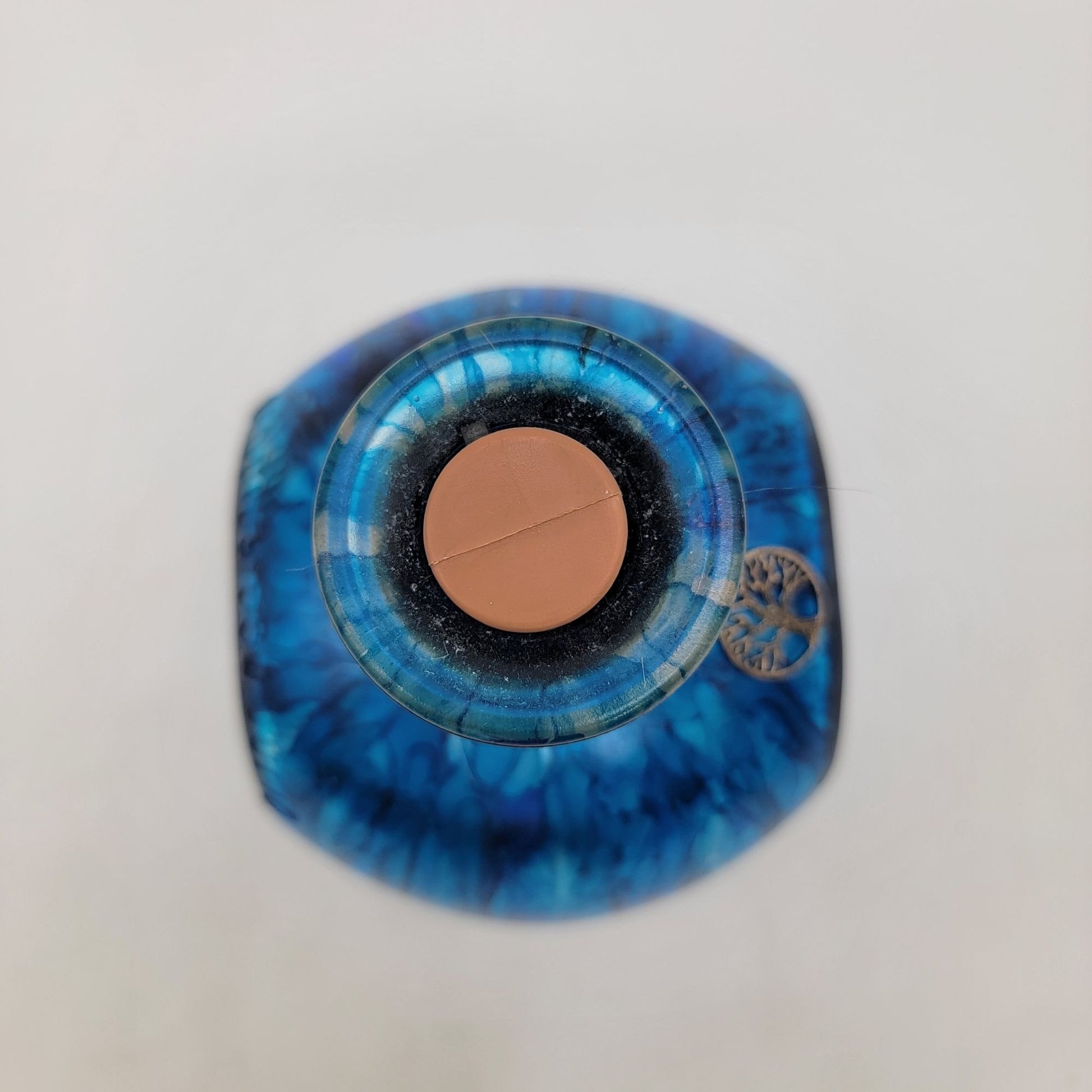 Hand Painted Blue Glass Bottle With Tree Of Life Charm & Cork Stopper Decorative Vase