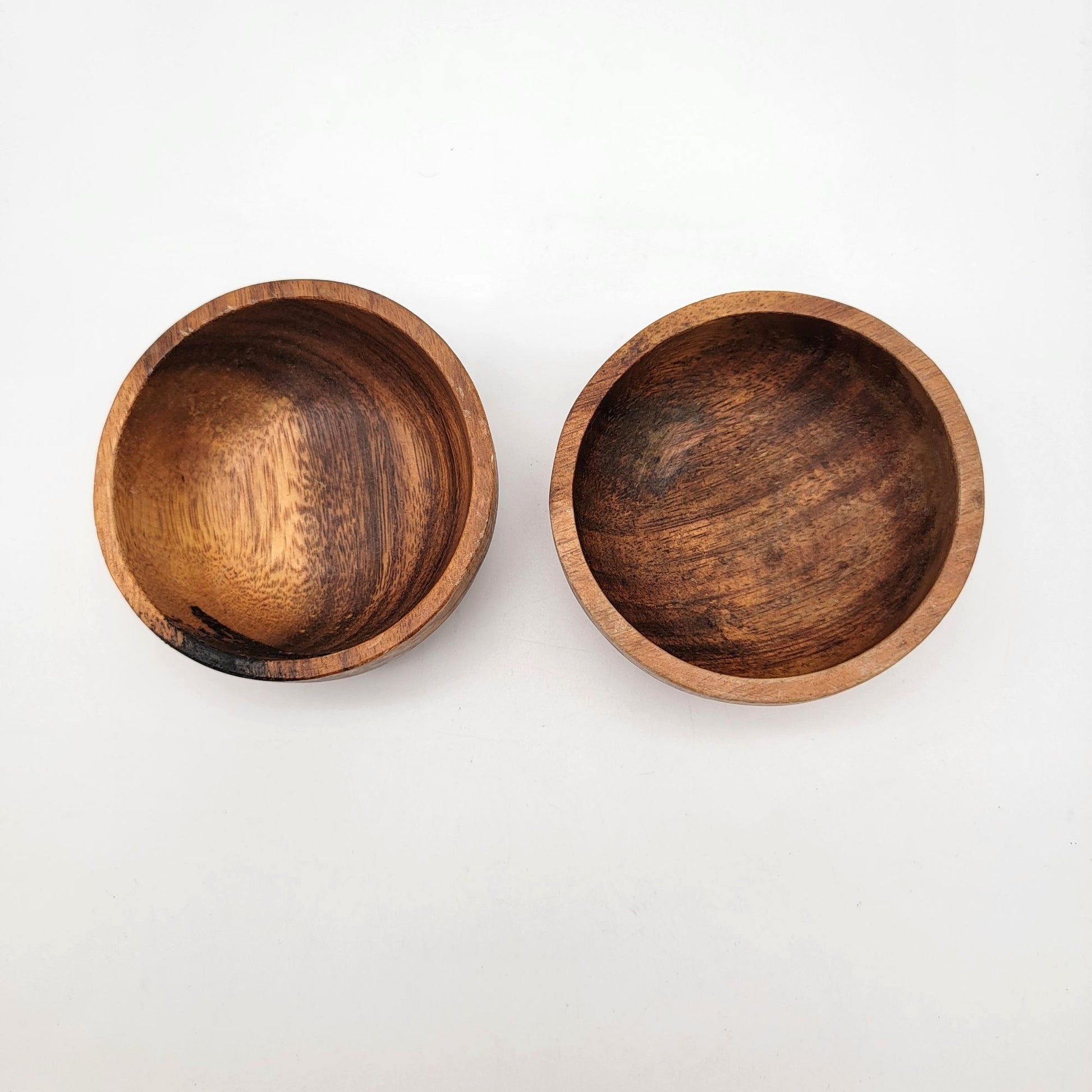 These acacia wood bowls exude rustic charm with their hand-carved craftsmanship and natural wood grain. Perfect as decor or for serving snacks or condiments.