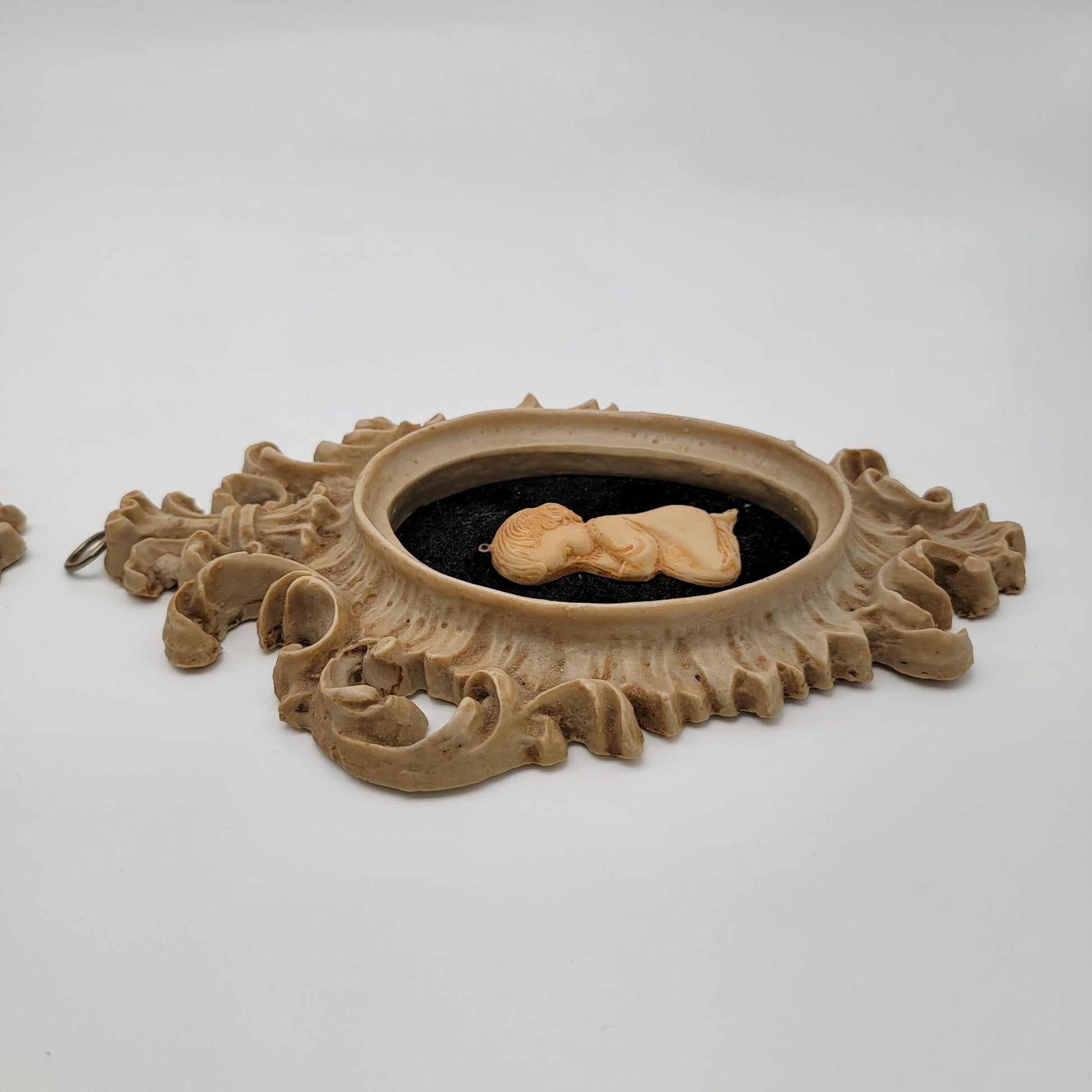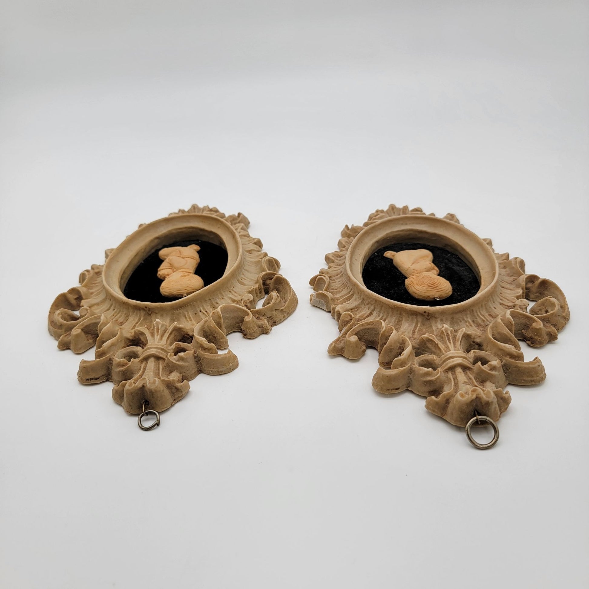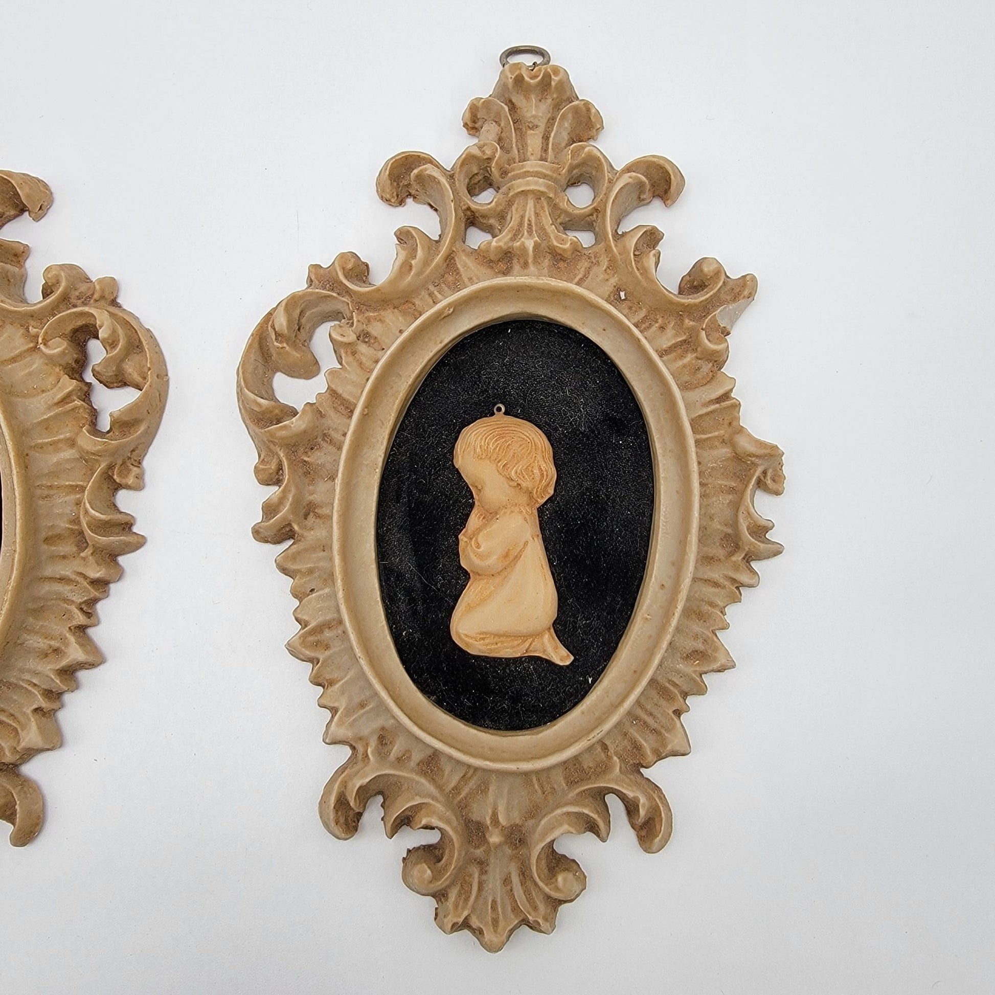 Pair Of Vintage Capodimonte Praying Children Wall Art Plaques With Ornate Frames