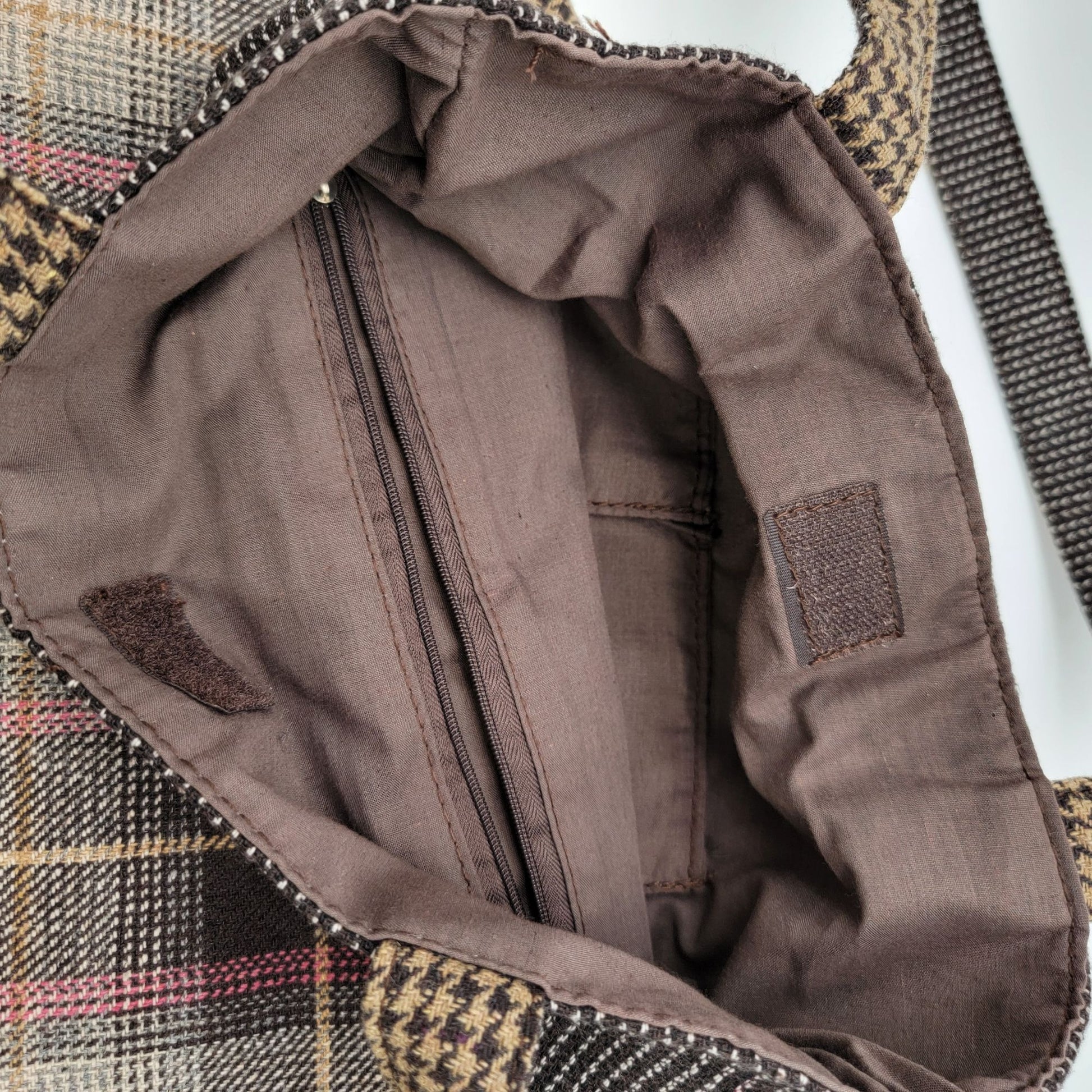This handbag offers a versatile design with practical compartments, a secure zipper closure, and stylish patchwork patterning. Suitable for daily use.