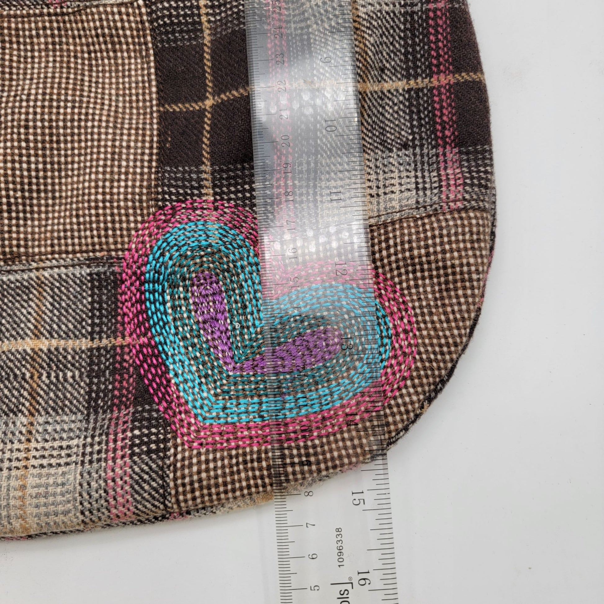 Patchwork Plaid Fabric Handbag With Heart Accent