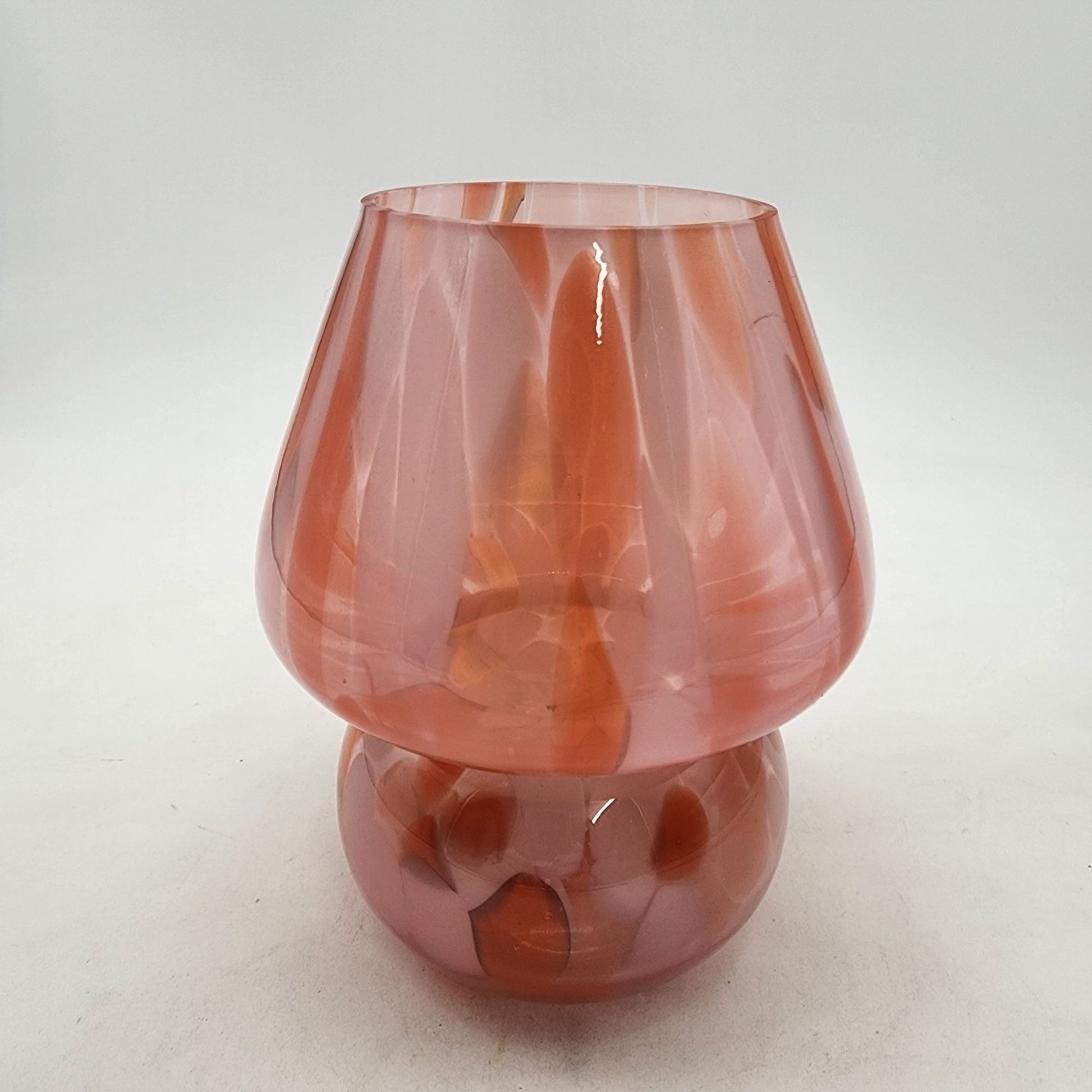 Peach Art Glass Vase Bulbous & Pinched Shape Floral Decor