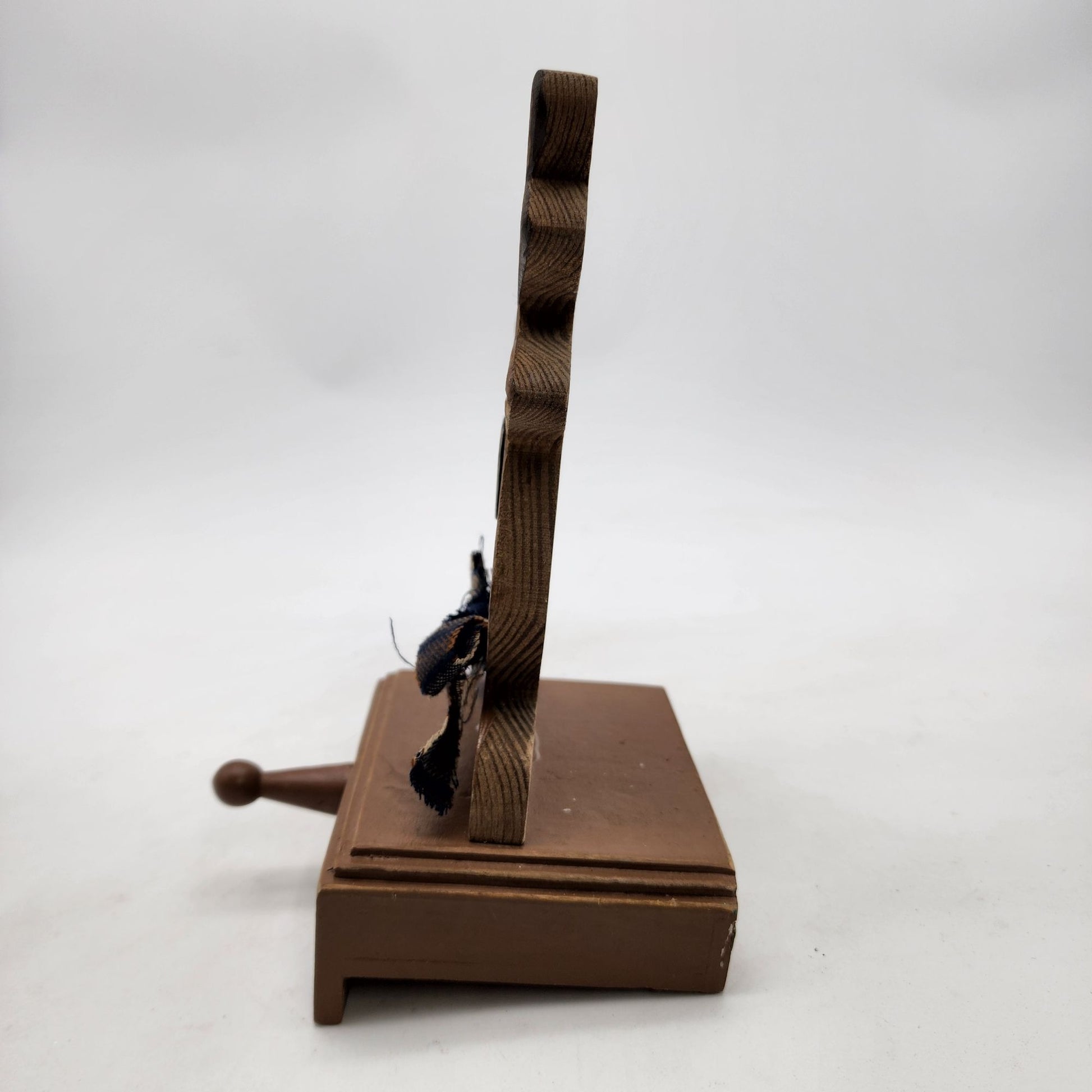 This wooden reindeer stocking holder features a charming design perfect for adding a festive touch to your holiday decor. The sturdy construction ensures it can hold stockings securely. Its compact design makes it suitable for various spaces, providing both functionality and style to your Christmas decoration setup.