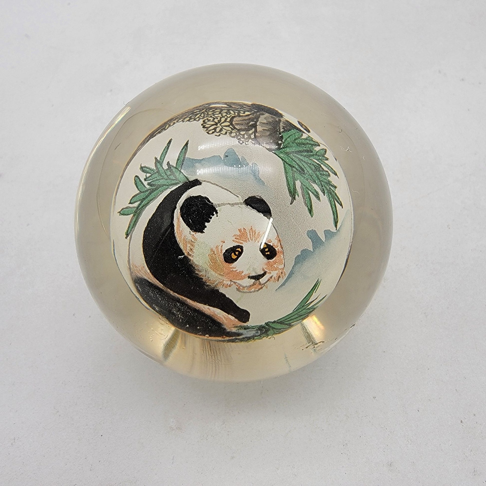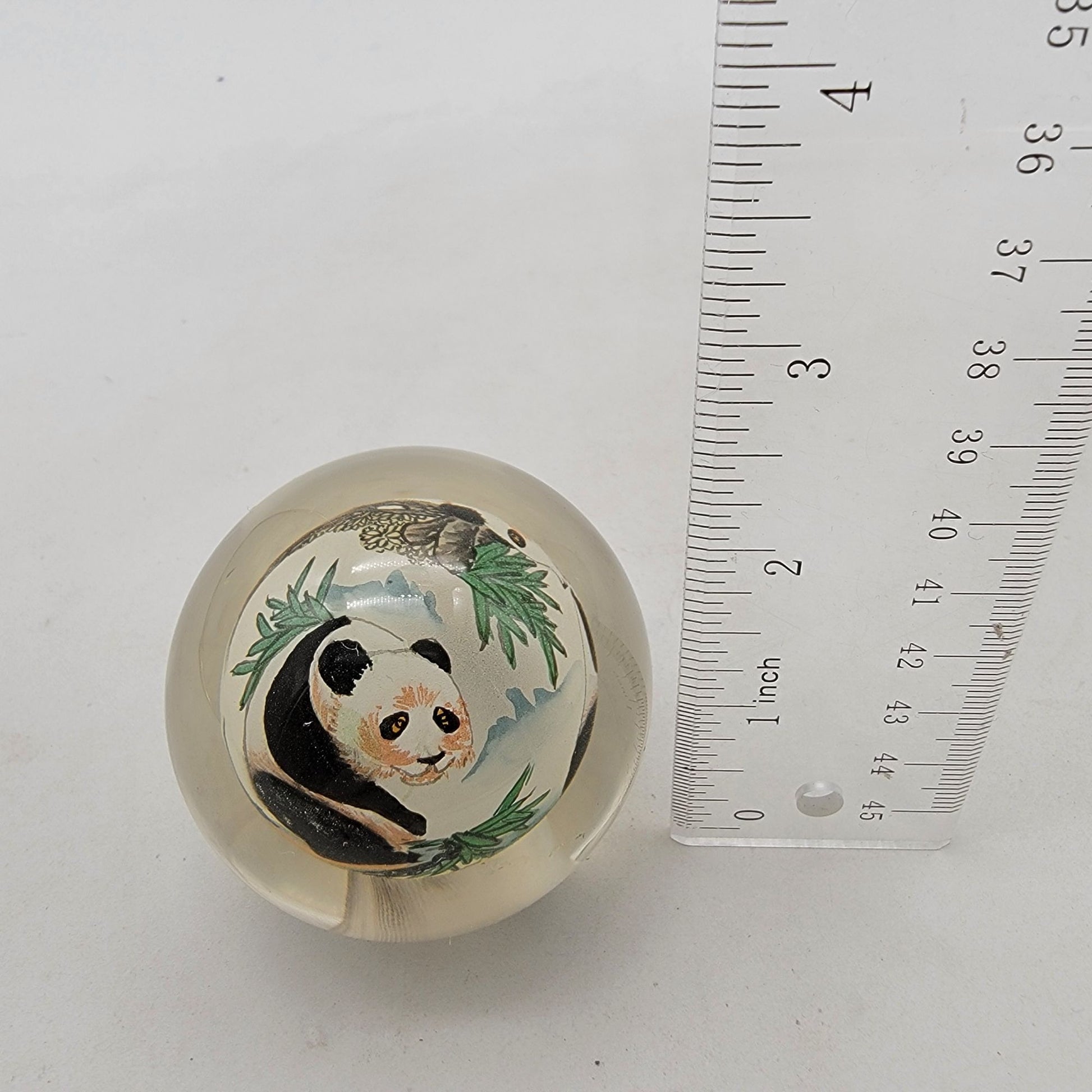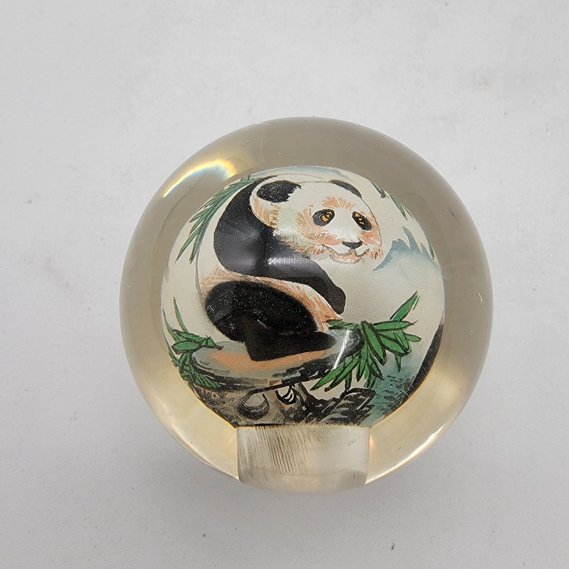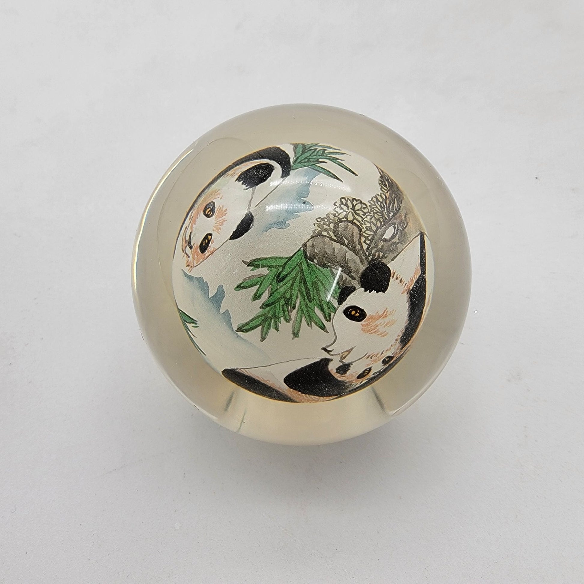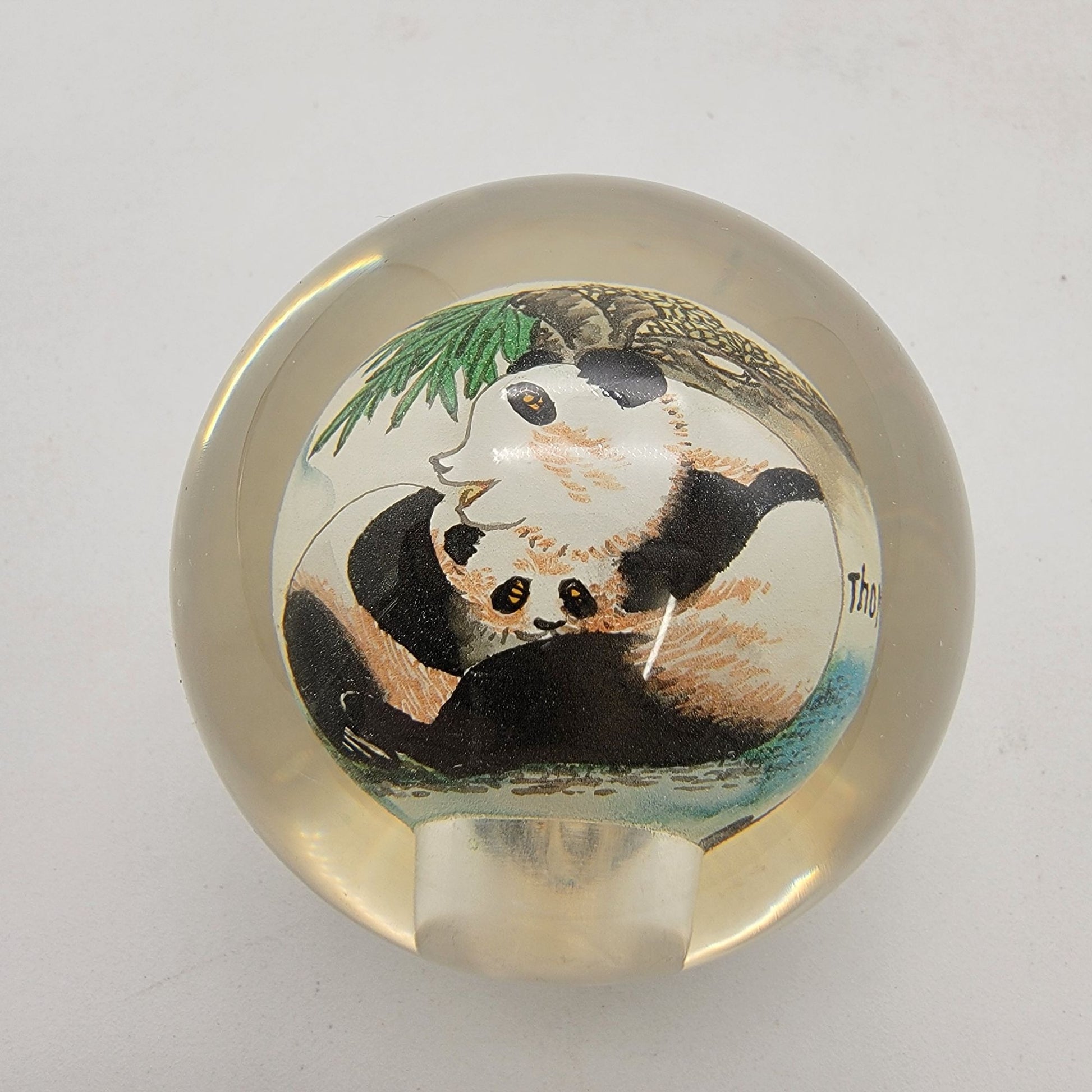 Reverse Hand Painted Art Glass Panda Paperweight Signed Thomte