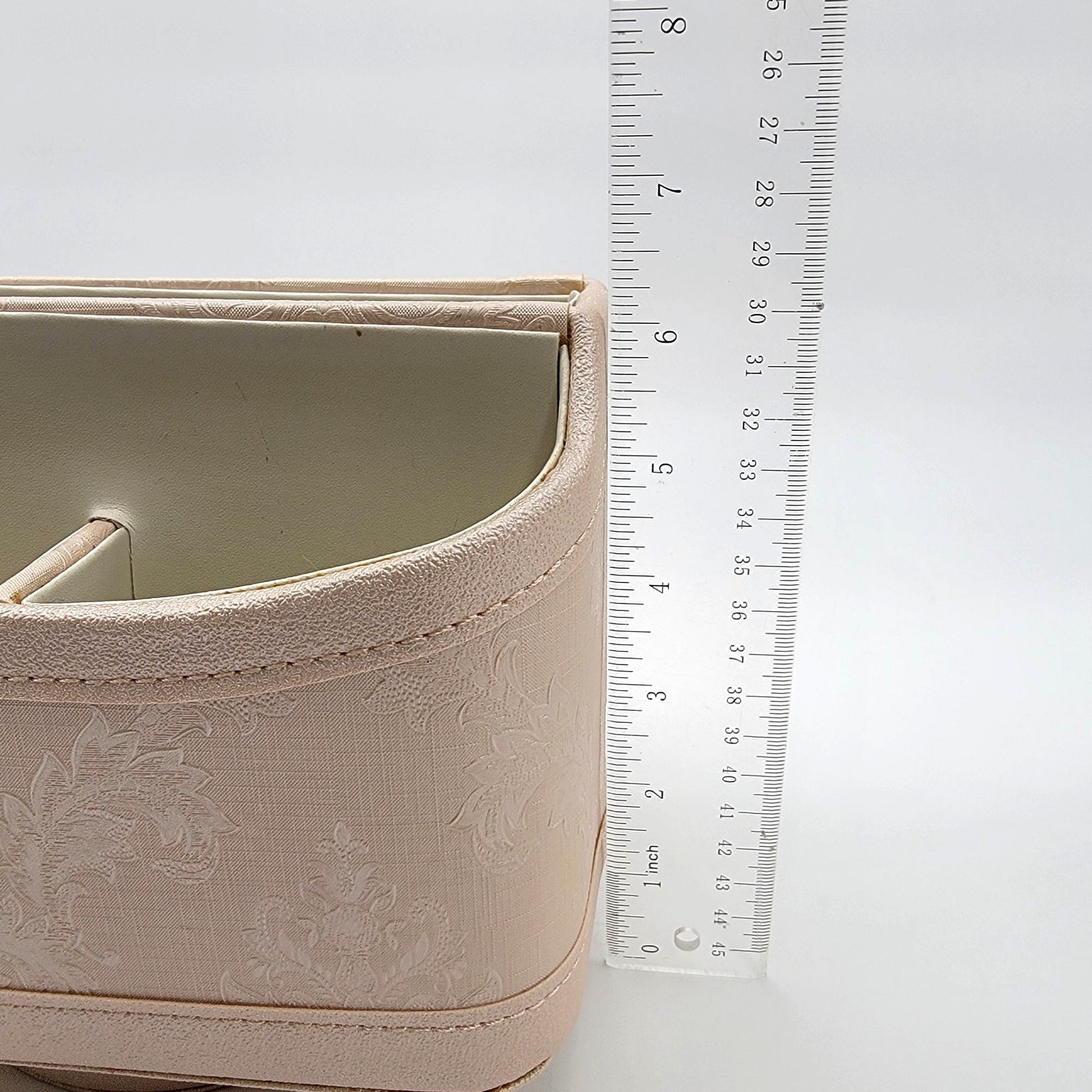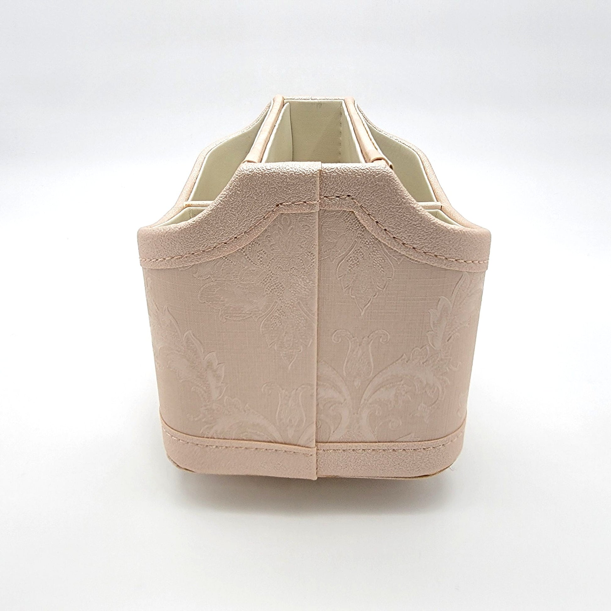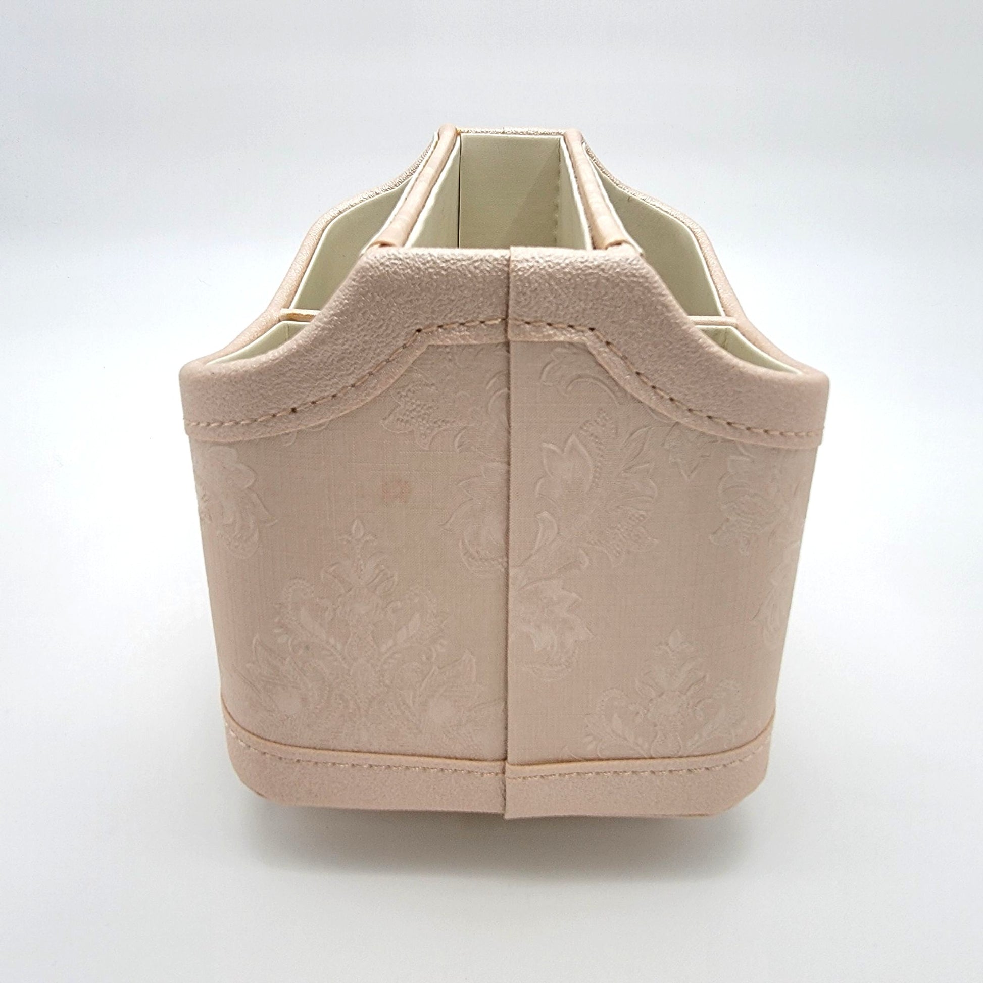 This organizer is crafted with a sophisticated vegan leather finish and a rotating base, making it a functional and stylish addition to any workspace or living area. Its compact size and divided compartments ensure easy access and organization.