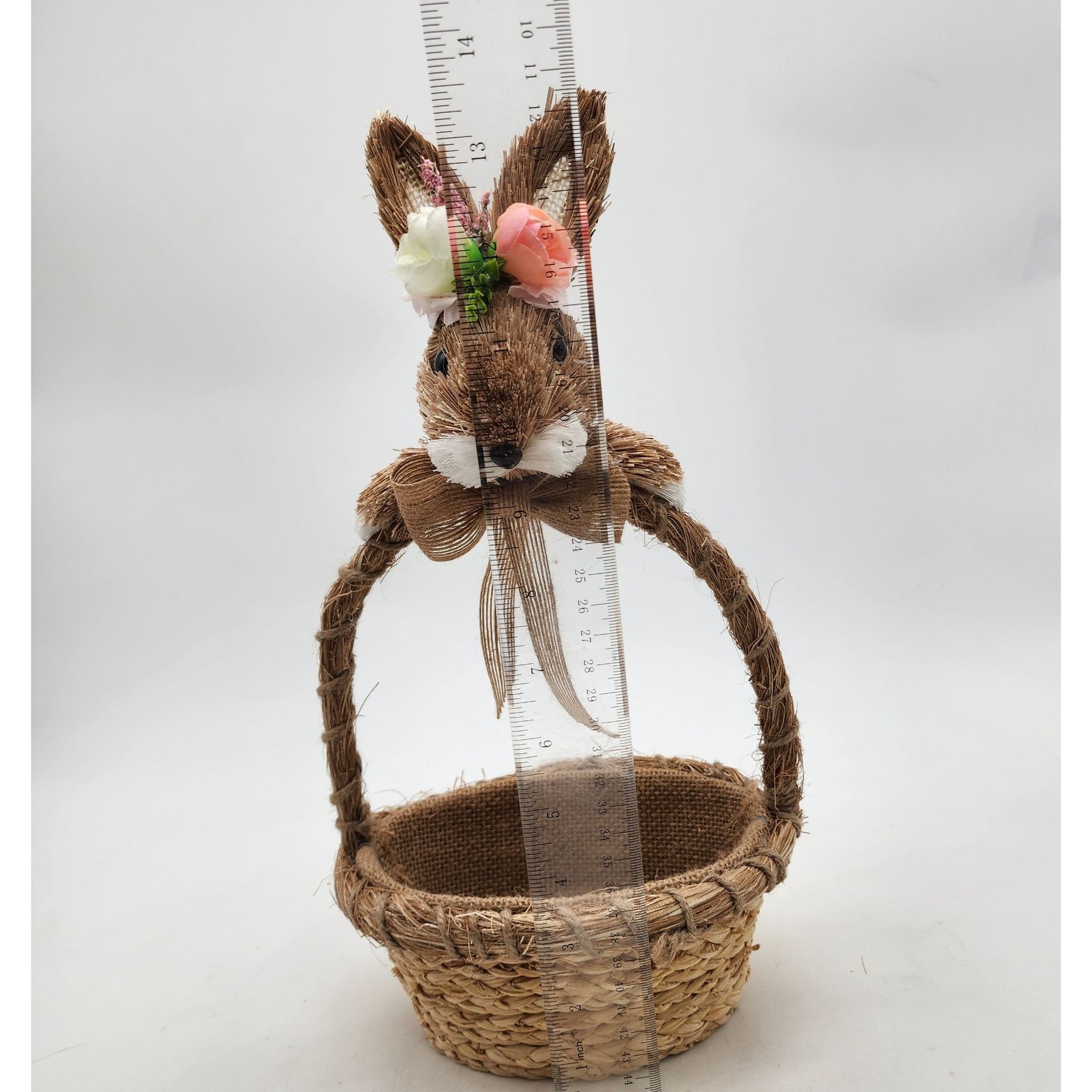 This charming sisal bunny head basket is ideal for adding a touch of rustic elegance to your spring or Easter decor. Featuring a beautifully detailed bunny head and floral accents, it serves as a delightful centerpiece or a unique gift basket. Its sturdy construction ensures durability, making it a versatile addition to your seasonal decorations.