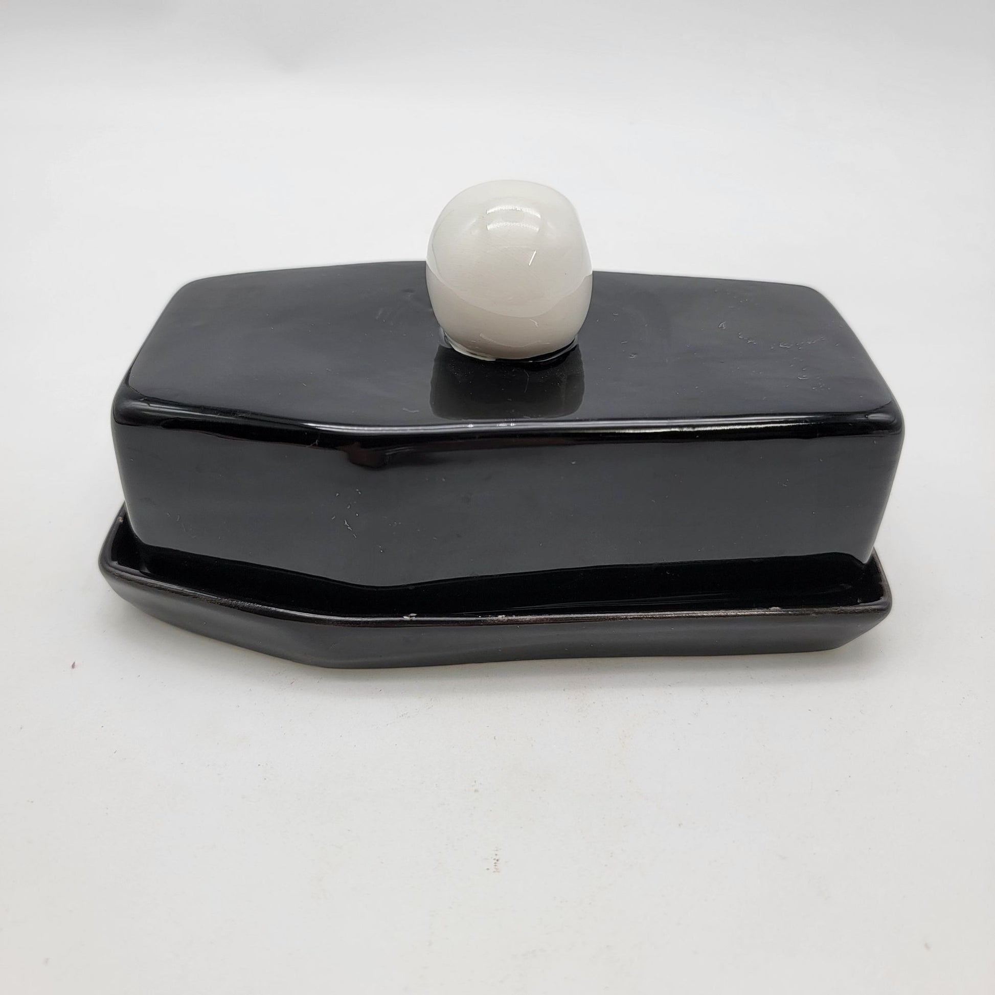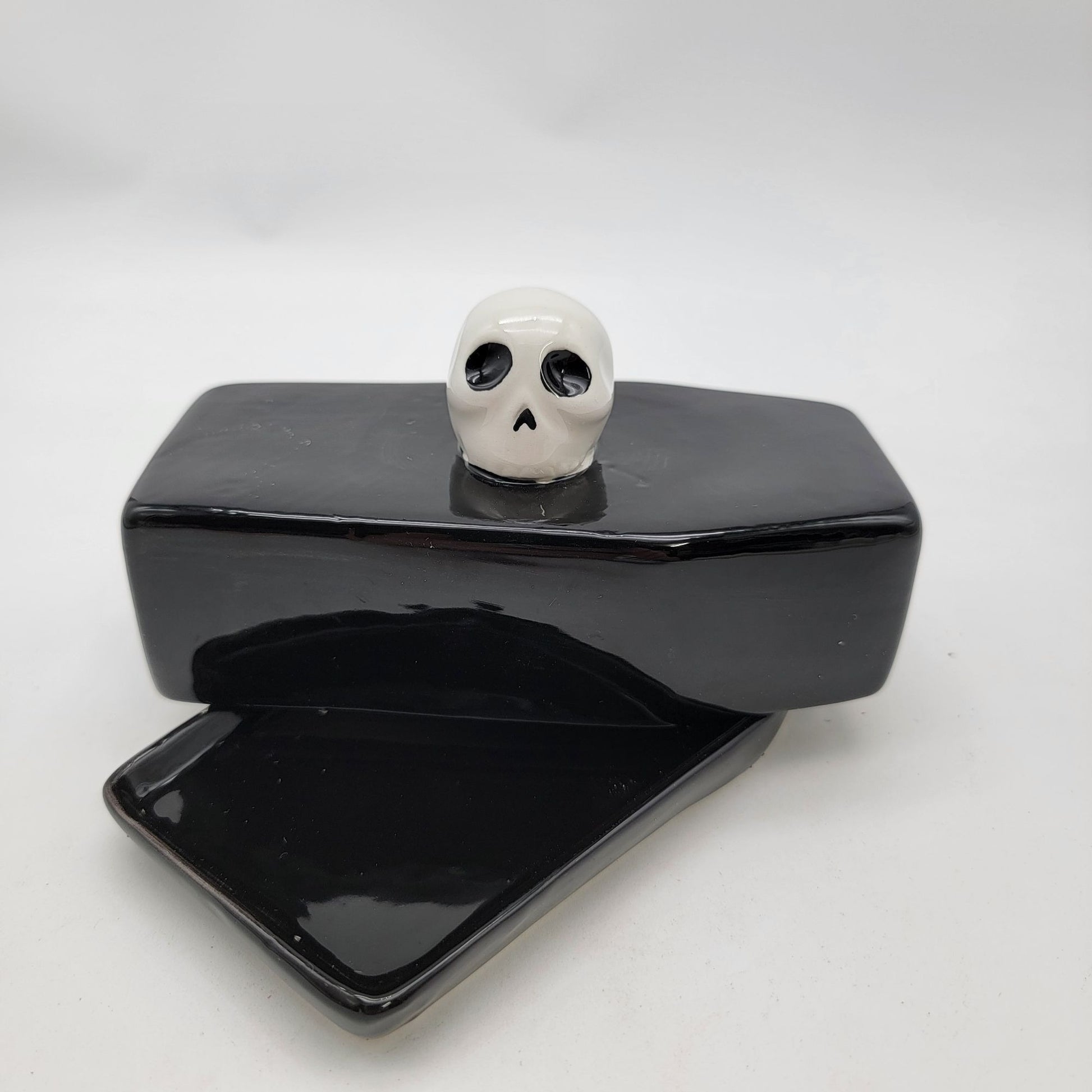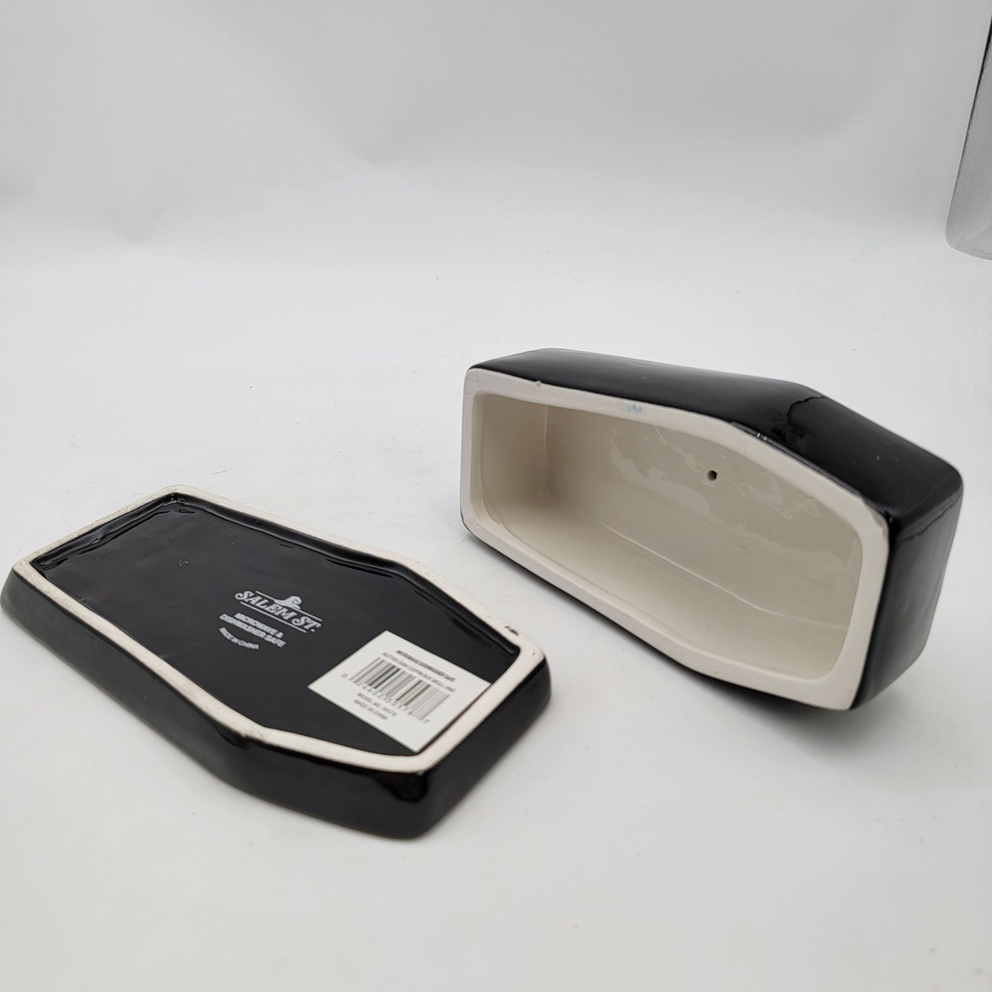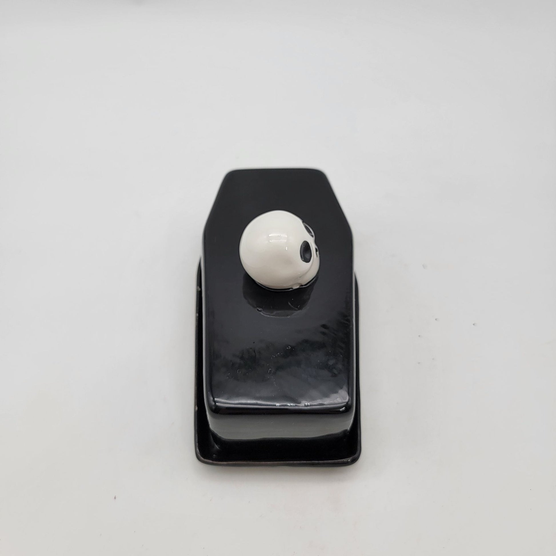 Salem St. Black Coffin-Shaped Butter Dish With Skull Handle