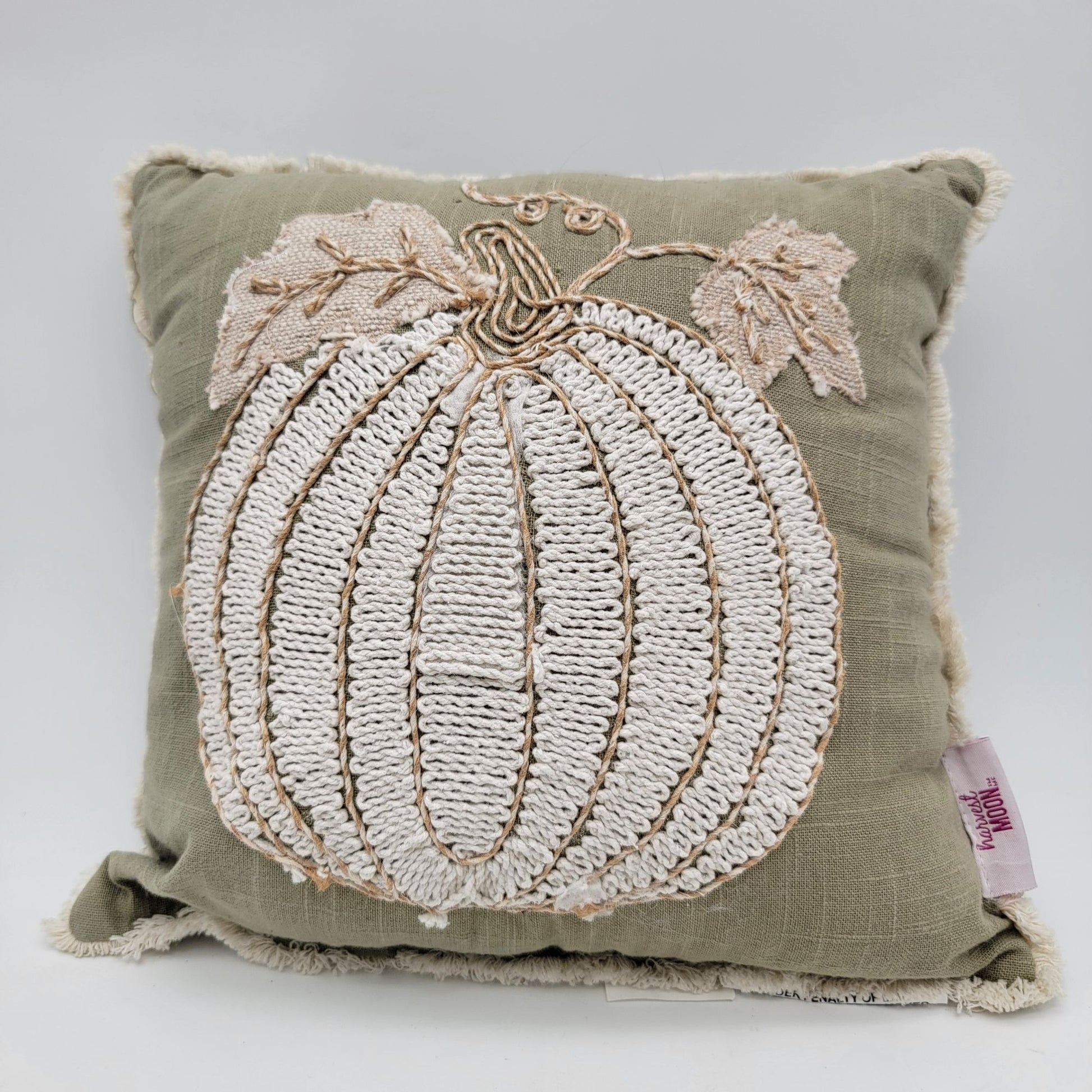 Set Of 2 Harvest Moon Embroidered Cream Pumpkin Decorative Throw Pillows