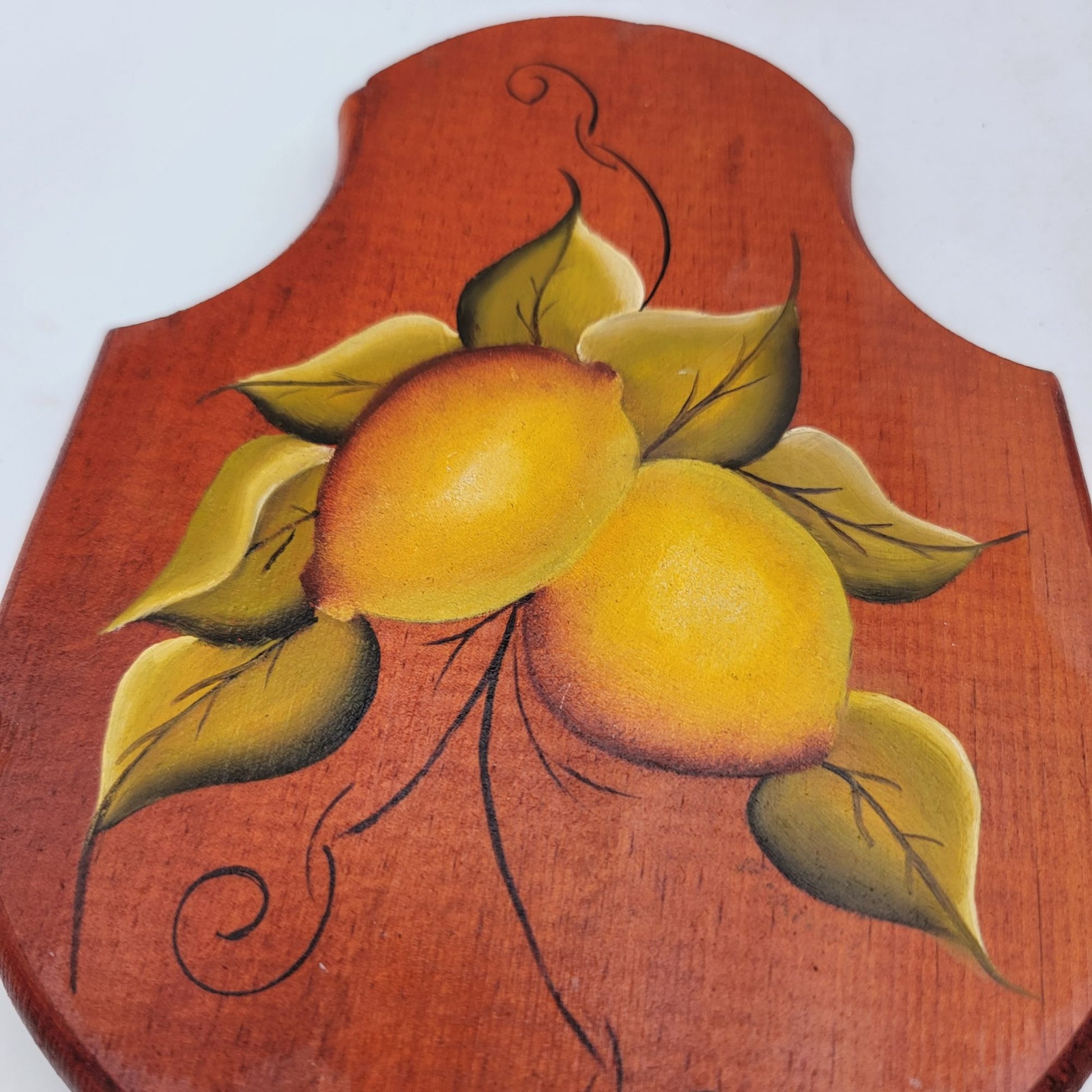 This collection of four hand-painted vintage wooden wall plaques features delightful fruit designs, making them unique decorative pieces for any room. With intricate details and warm earth tones, these plaques bring a touch of rustic charm and timeless elegance, ideal for adding character to a kitchen or dining area.