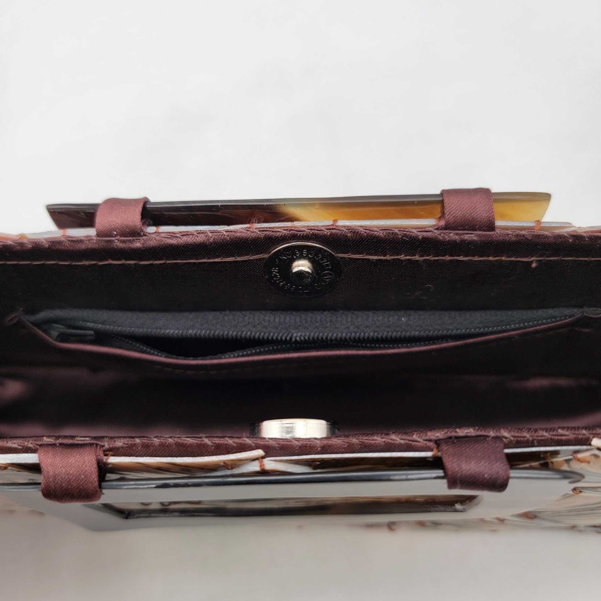 Shell Tiled Clutch Purse With Lucite Tortoise Shell Handles