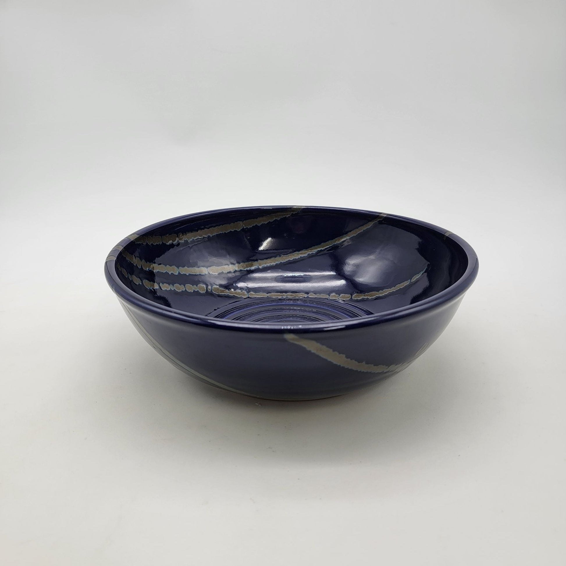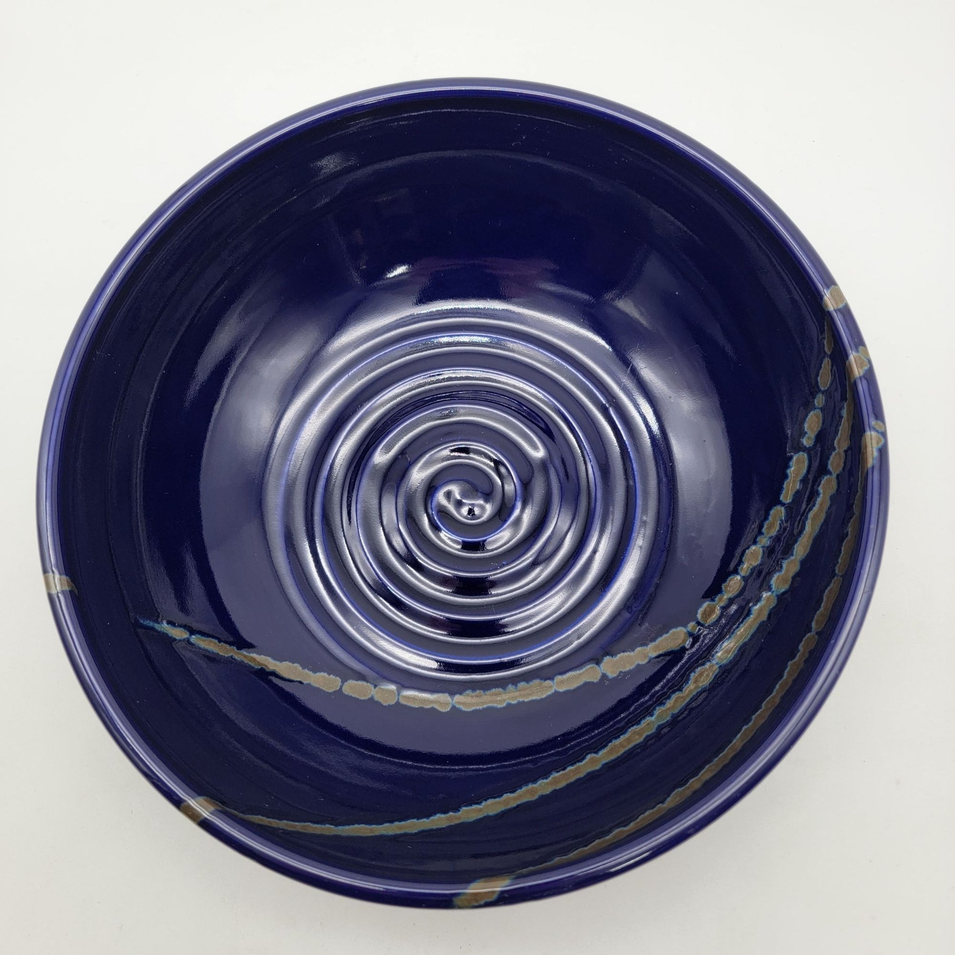 This bowl tells a story of craftsmanship, with its deep blue glaze, spiral center, and hand-signed base. A perfect blend of artistry and utility.