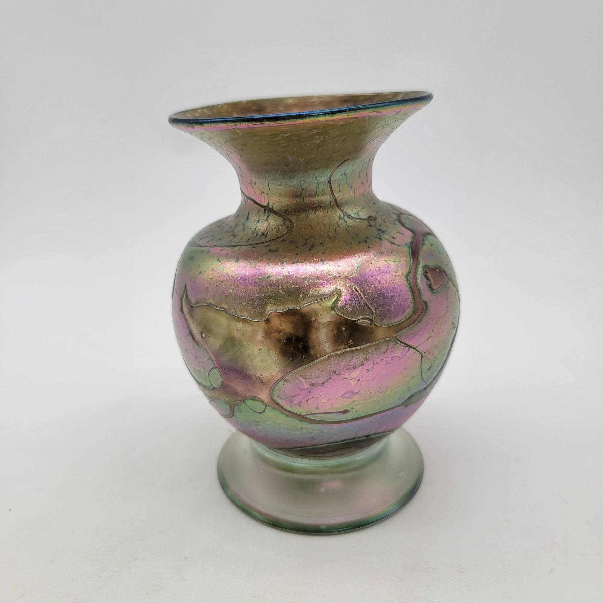 Signed Hand Blown Iridescent Art Glass Vase