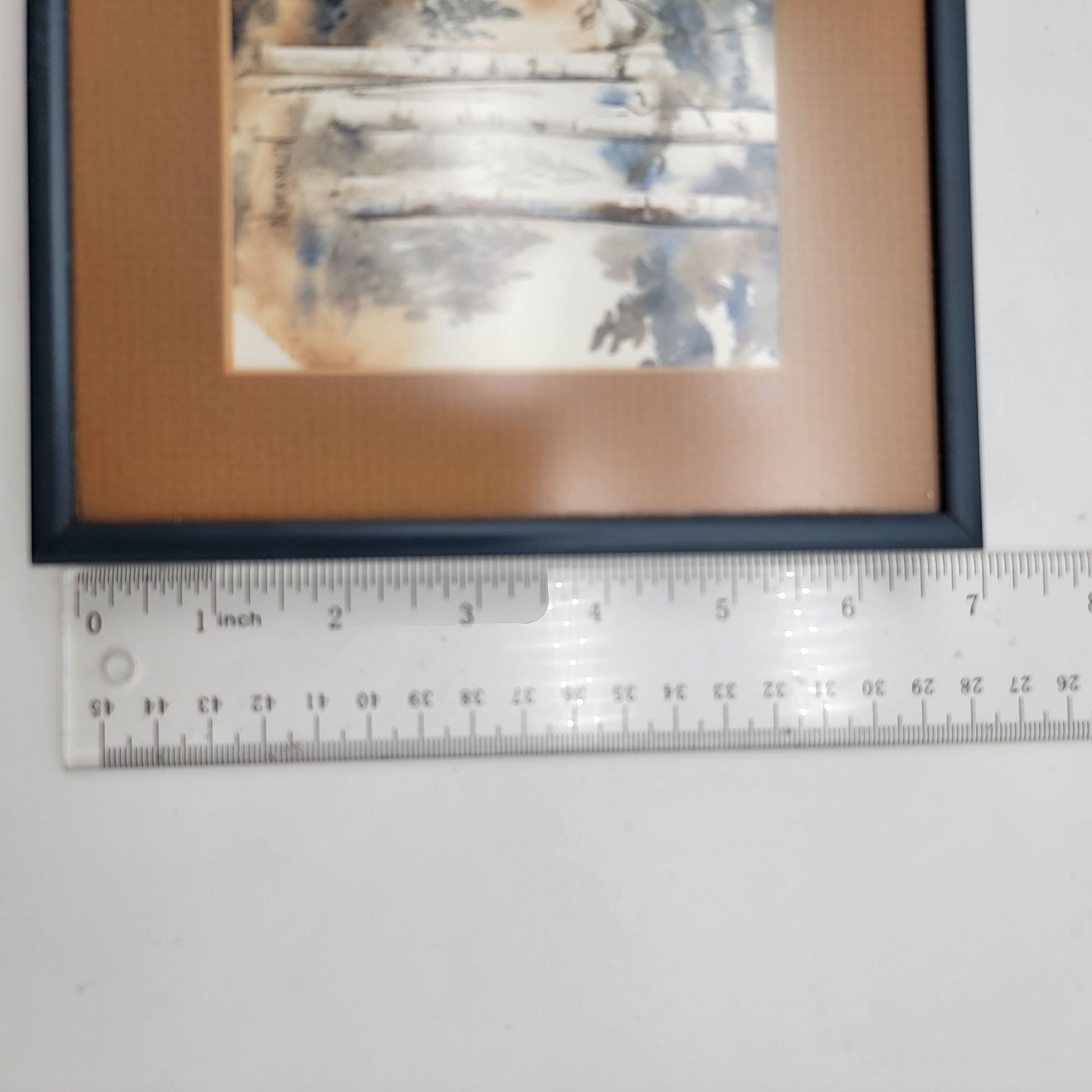 This signed watercolor painting by N. Brown features a serene depiction of birch trees, encapsulating the beauty of nature in a soft, tranquil palette. Framed and matted, the artwork measures 13 inches by 7 1/4 inches, and is a delightful addition for art enthusiasts and collectors seeking timeless elegance.