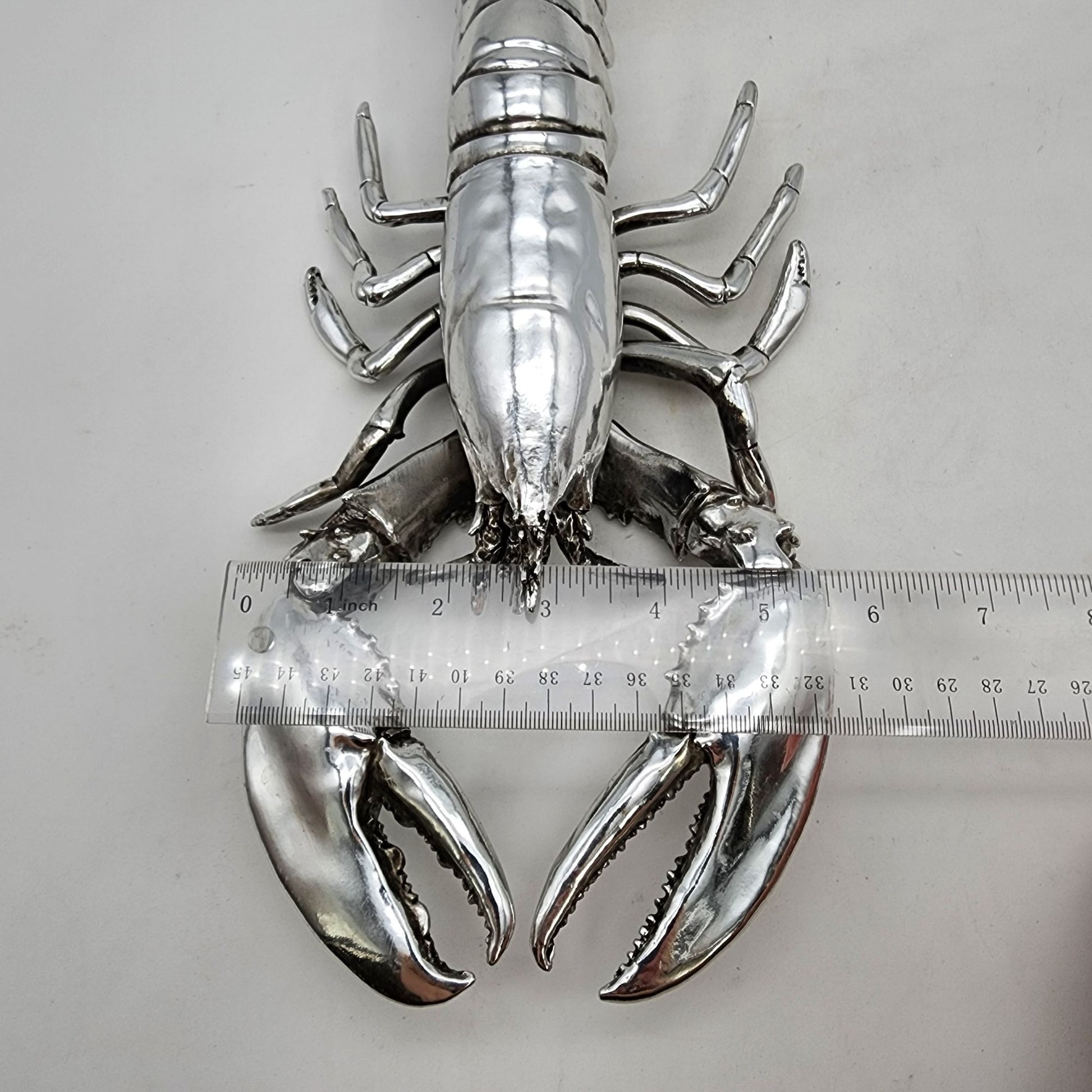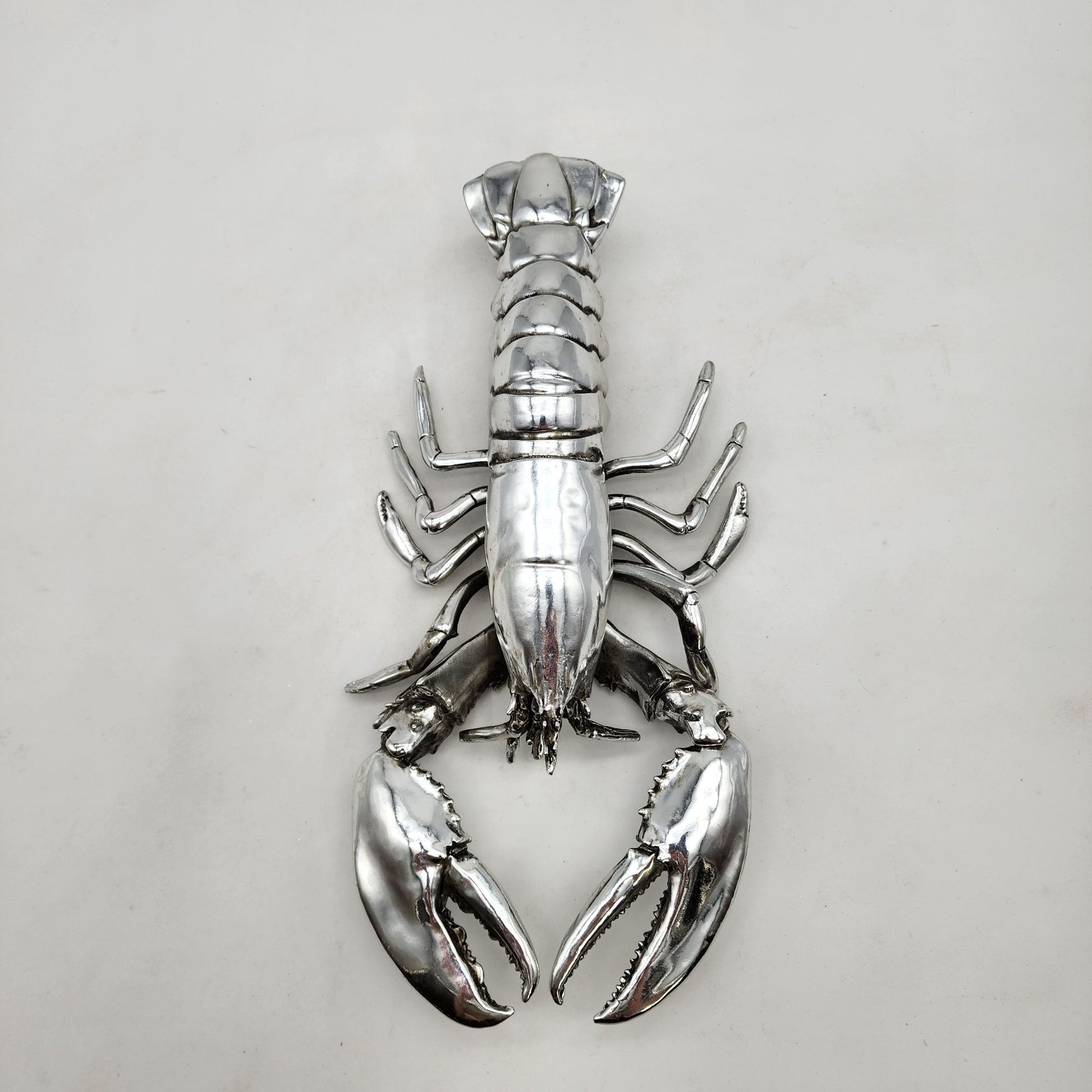Silver-Tone Lobster Sculpture Coastal Decor Piece