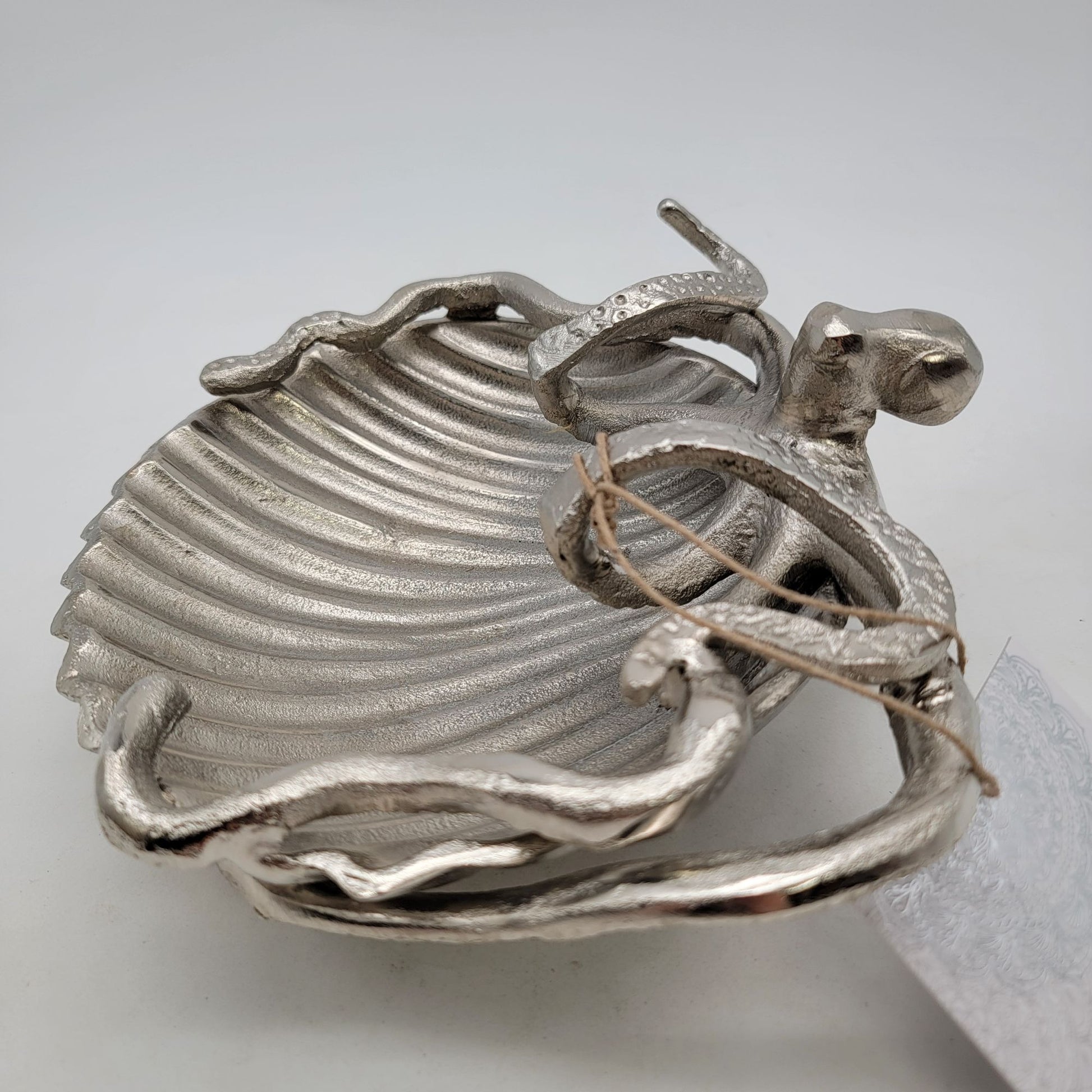 This exquisite trinket dish, crafted by Namaste, presents a unique design featuring an elegant octopus motif. Its silver-toned metal finish adds sophistication, making it an ideal piece for organizing small items or serving decorative purposes. The dish's intricate detailing and robust design ensure both aesthetic appeal and functional utility.