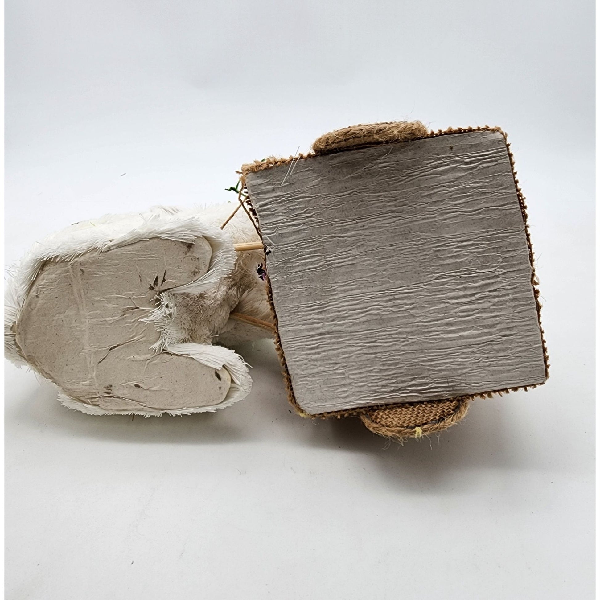 Sisal Bunny With Burlap Wagon & Flowers Spring Decor
