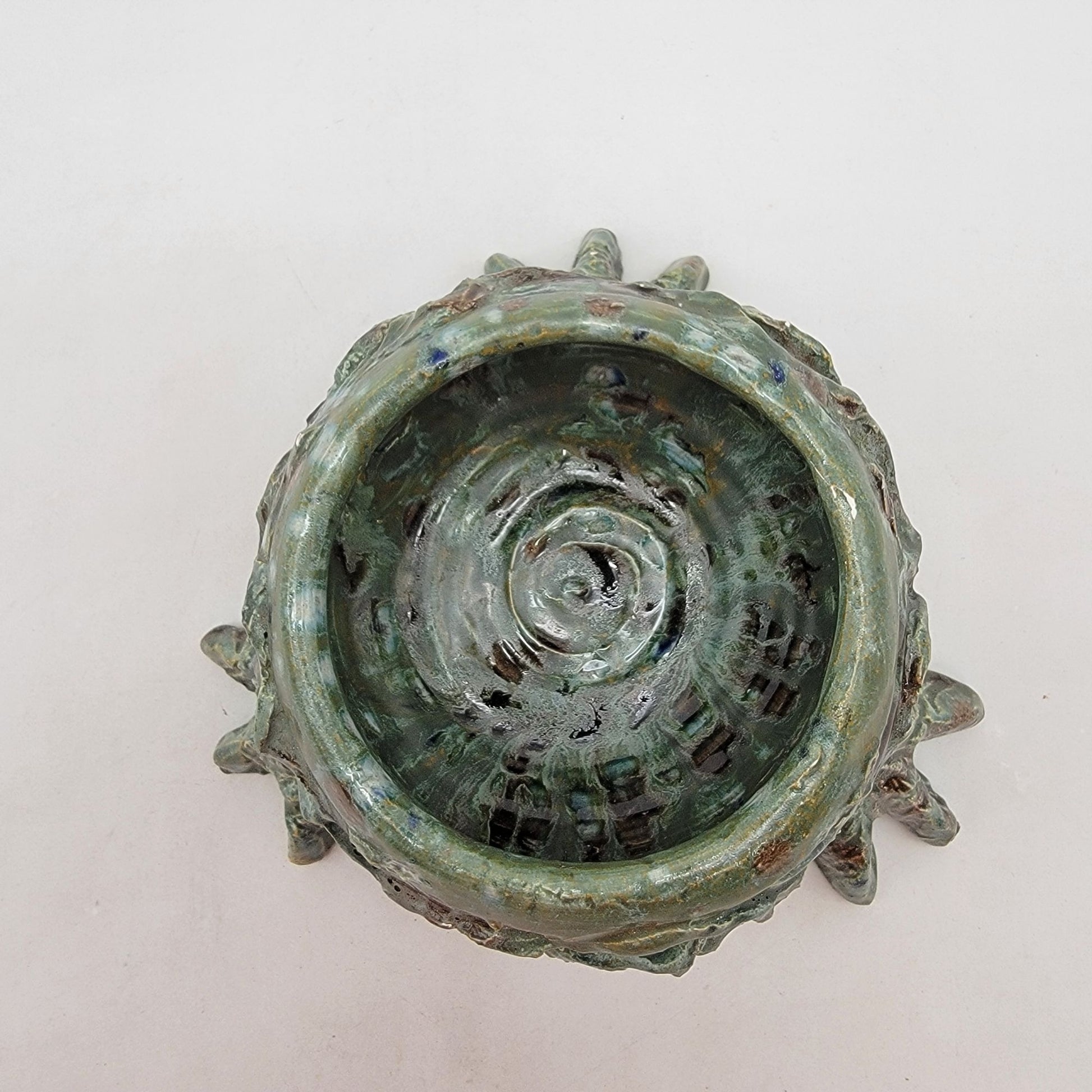 Unique Green Art Pottery Footed Planter Bowl