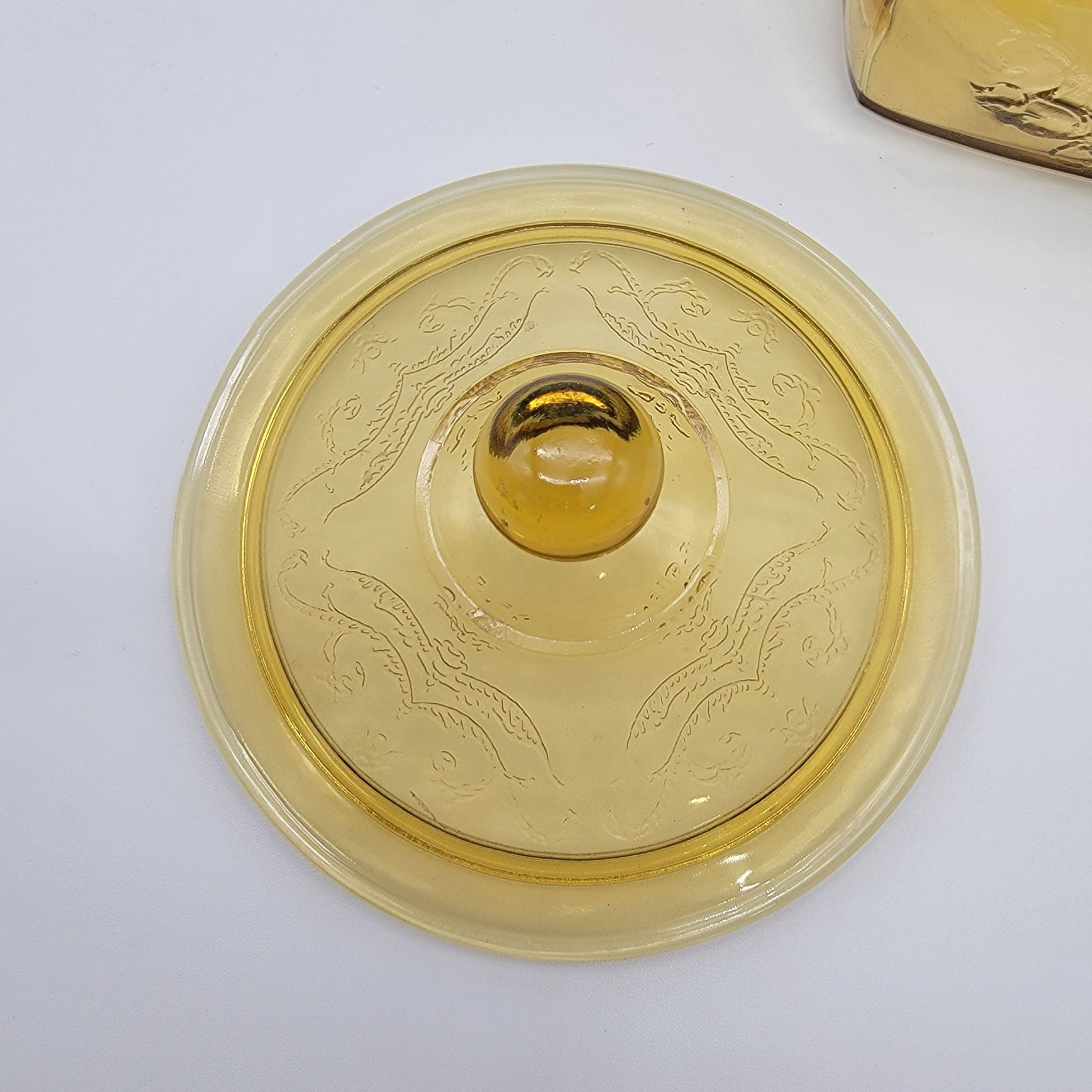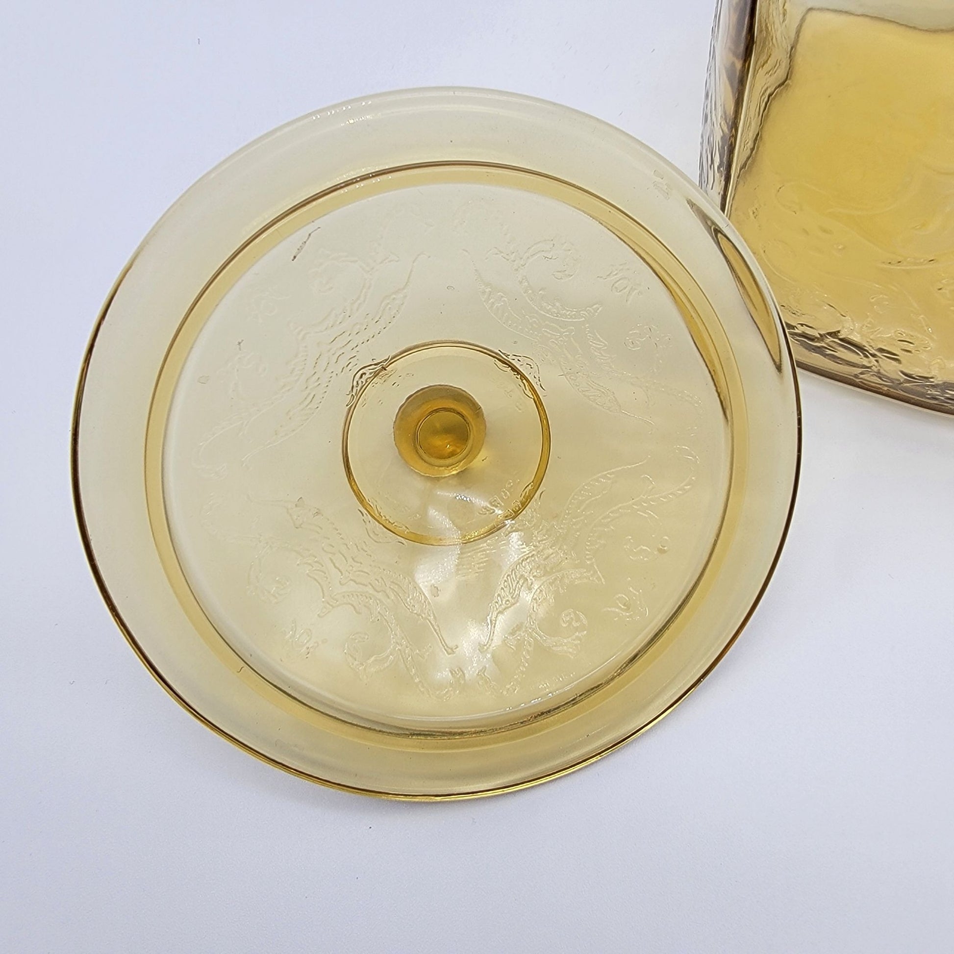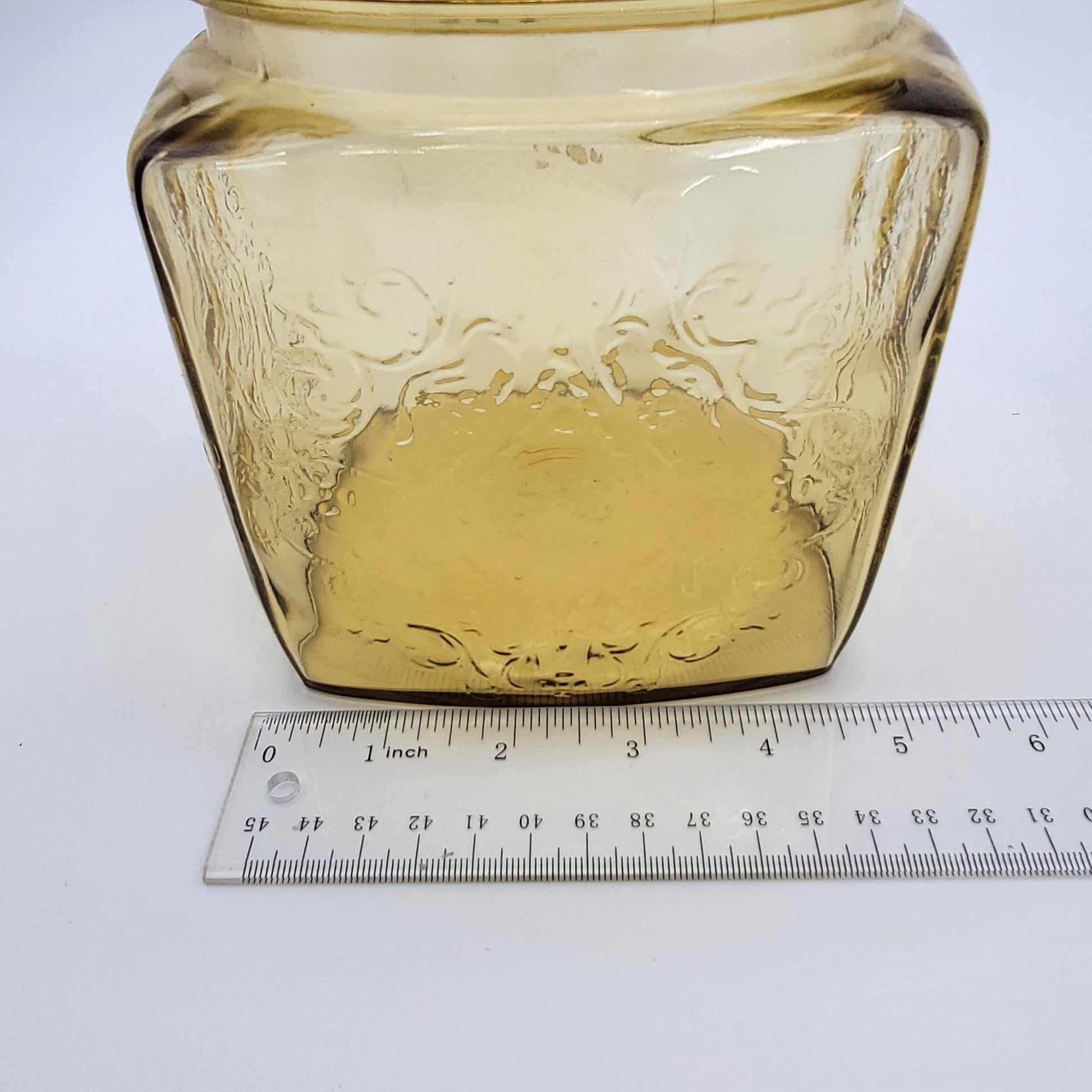 Vintage 1930s Depression Federal Glass Madrid Pattern Amber Glass Cookie / Biscuit Jar With Lid