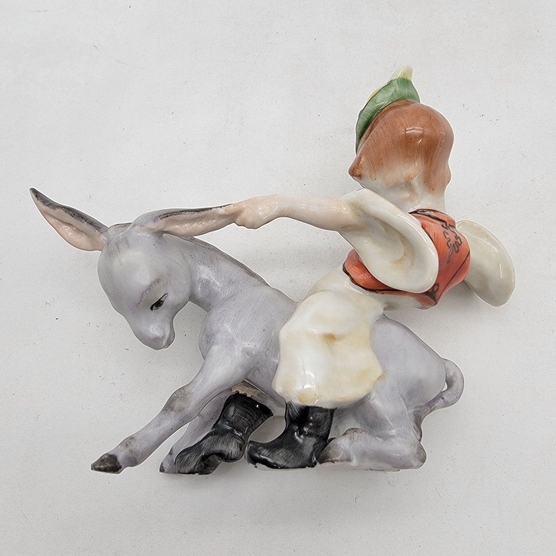 Vintage 1960-1970s Herend Hungary Porcelain Boy Riding A Donkey Figurine