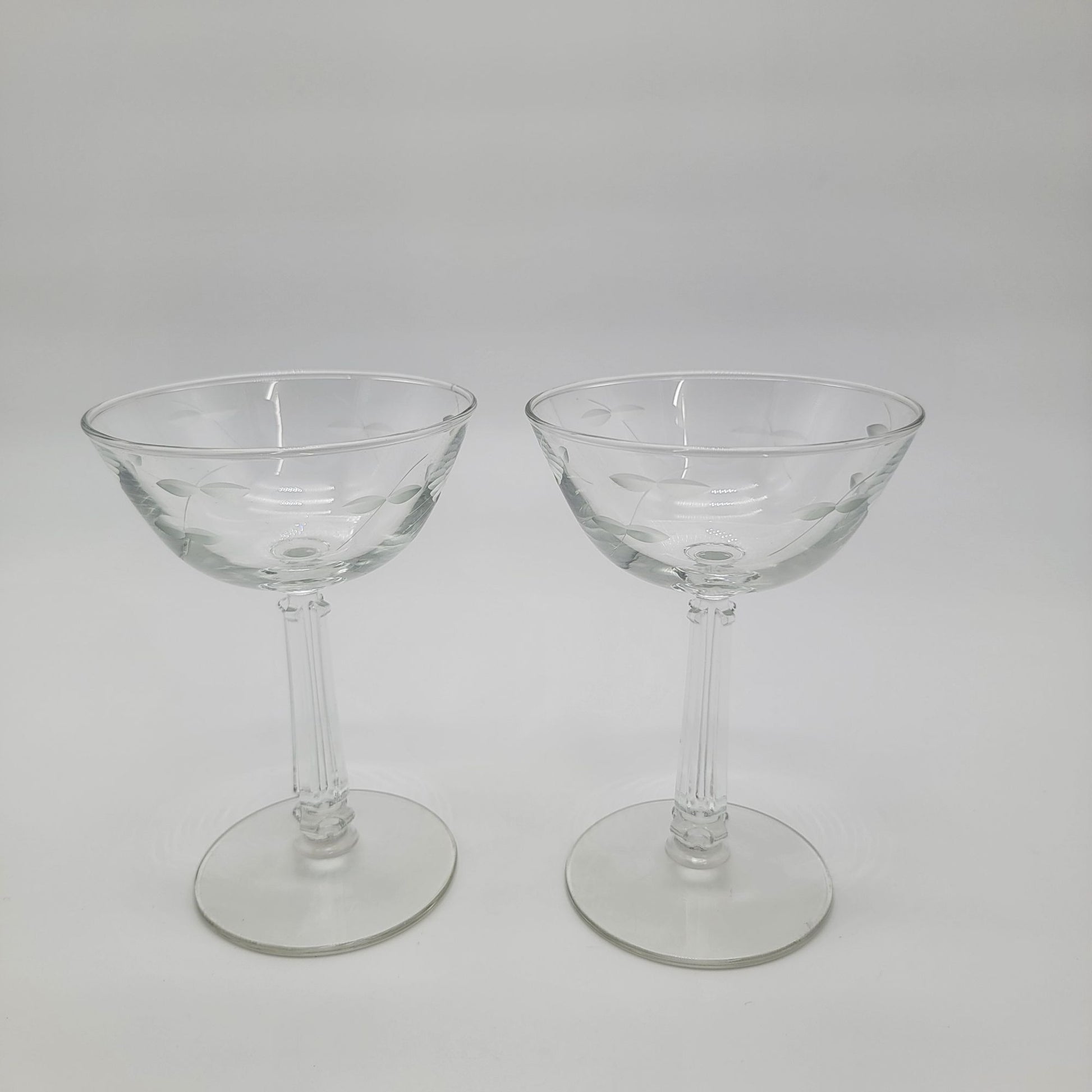 Vintage 1960s Etched Champagne Coupe Set Of 2