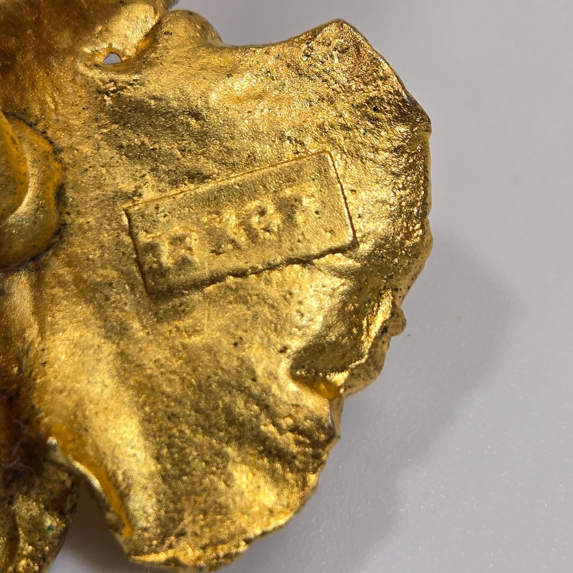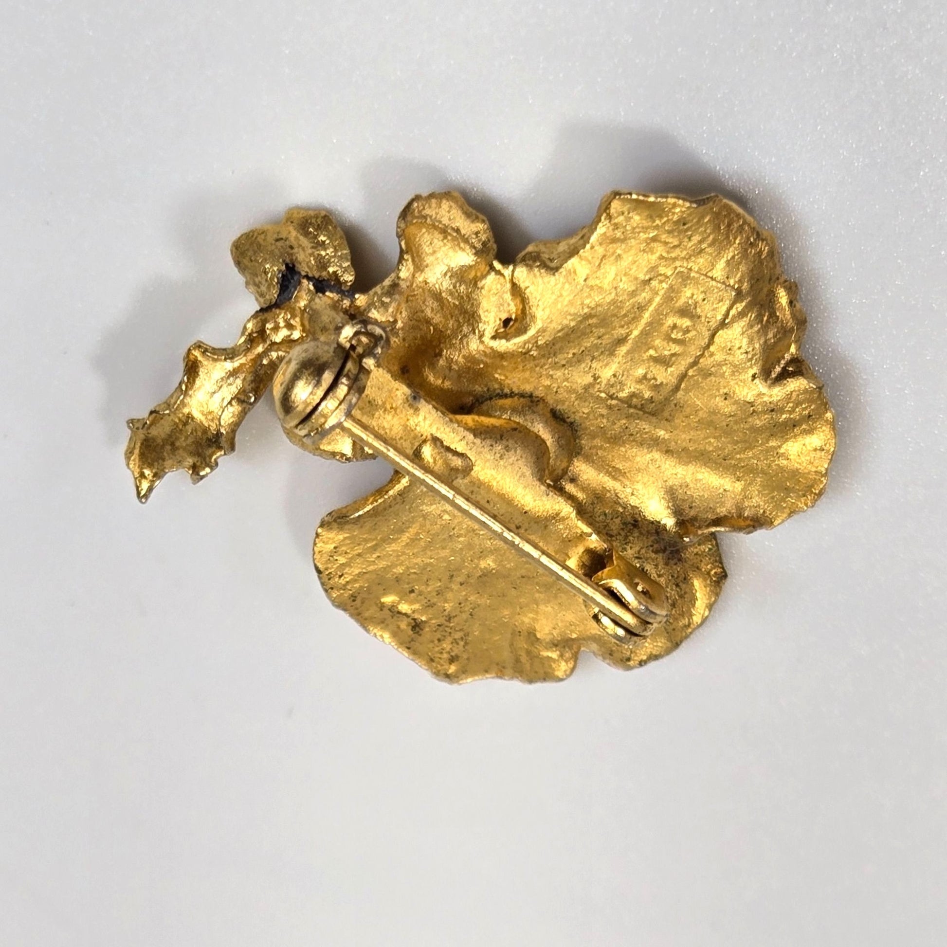 This stunning brooch captures the delicate beauty of an orchid, immortalized in 22K gold plating. A true vintage treasure from the 1980s, this piece combines nature's elegance with timeless craftsmanship. Perfect for adding a touch of botanical charm to any attire, its intricate details and radiant finish make it a memorable keepsake.