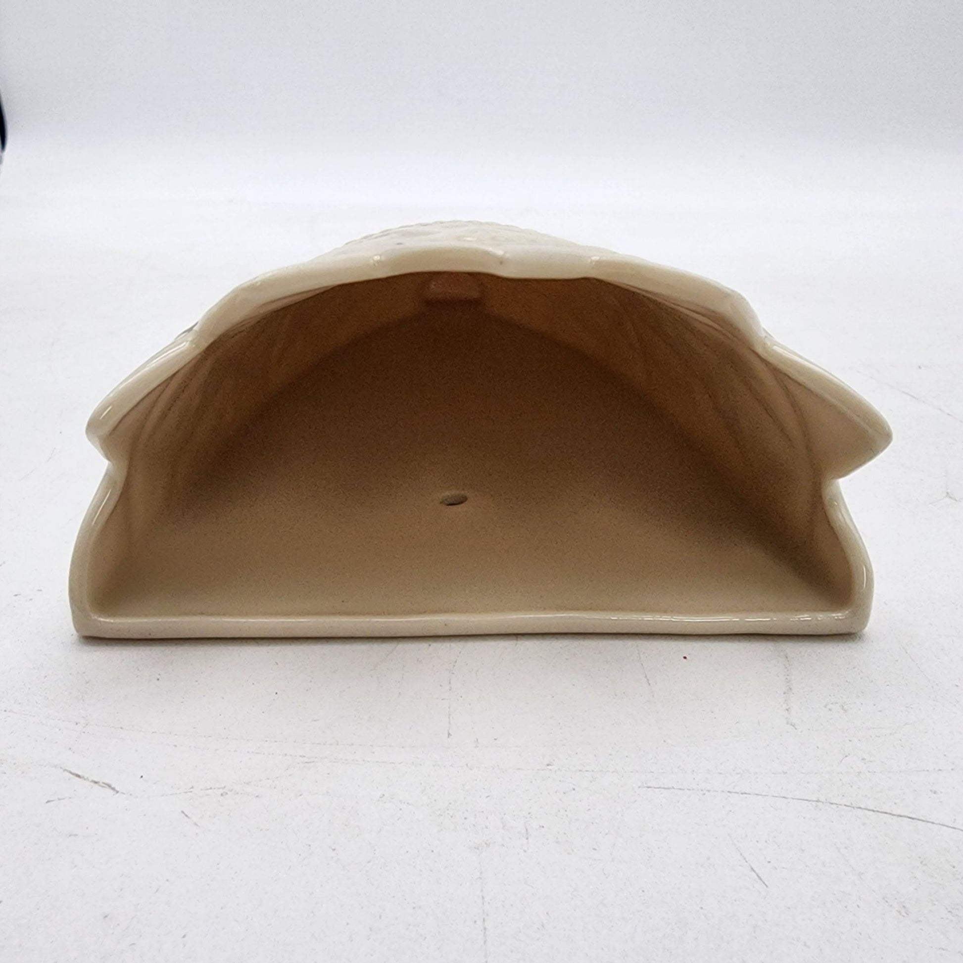 This exquisite vintage wall pocket vase from Belleek Collectors' Club, marked as No. 400, captures the essence of craftsmanship. Its intricate embossed pattern and elegant tan glaze evoke a sense of timeless beauty. A cherished piece for display, adding charm to any home decor with its refined elegance.