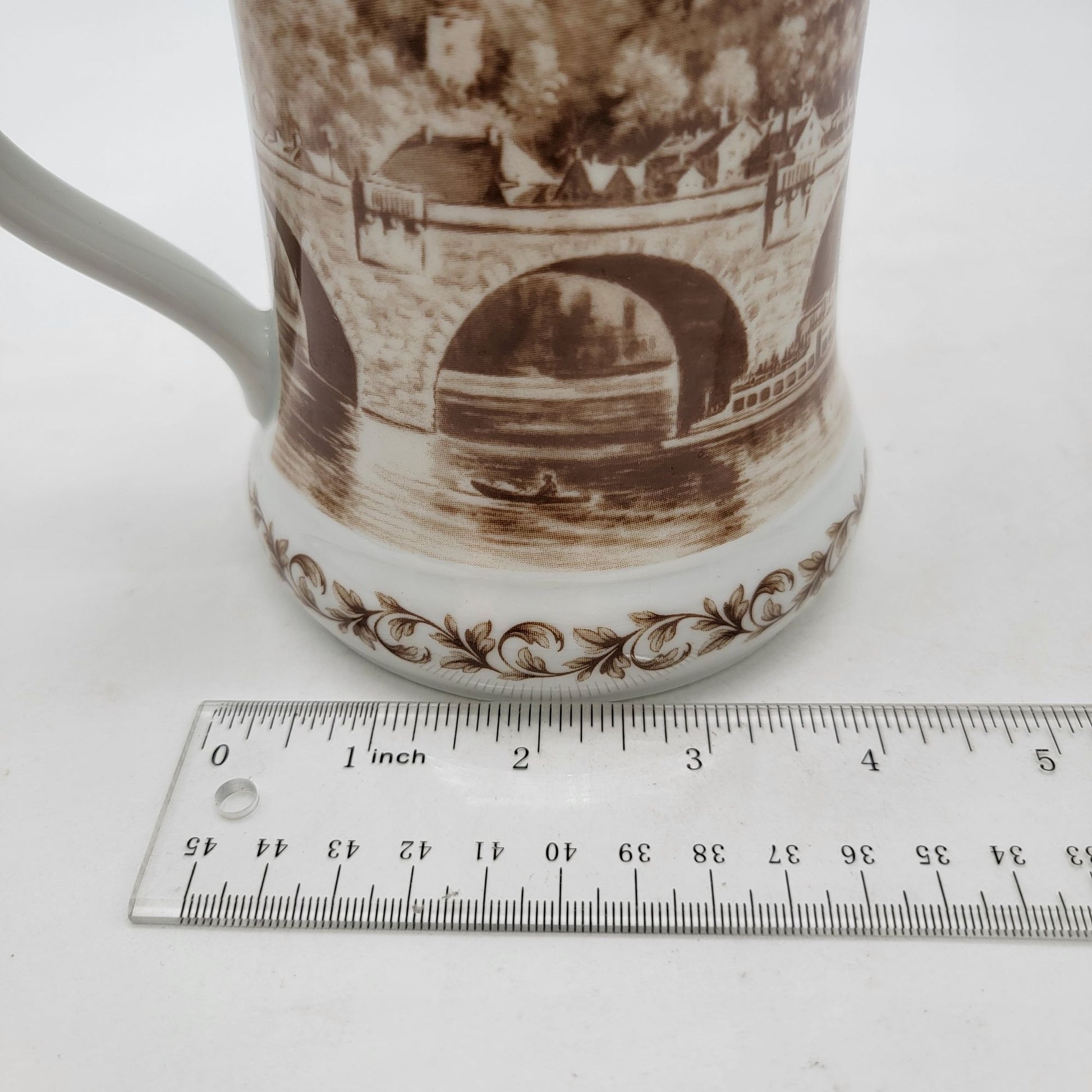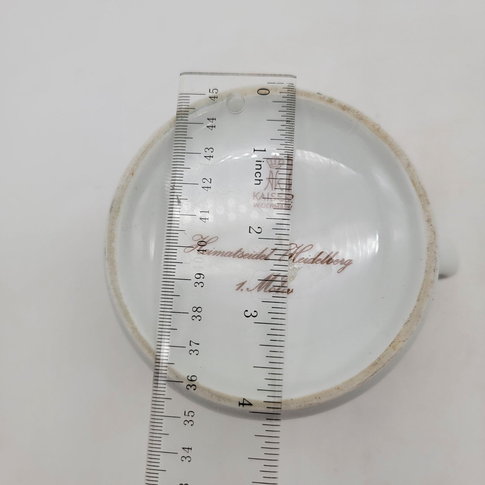 This vintage AK Kaiser stein features a detailed Heidelberg landscape, capturing the essence of the historic German city. The scenic depiction, complete with bridges and architecture, offers a nostalgic glimpse into Heidelberg's past. A conversation piece, it enhances collections and decor with its timeless charm and historical significance.