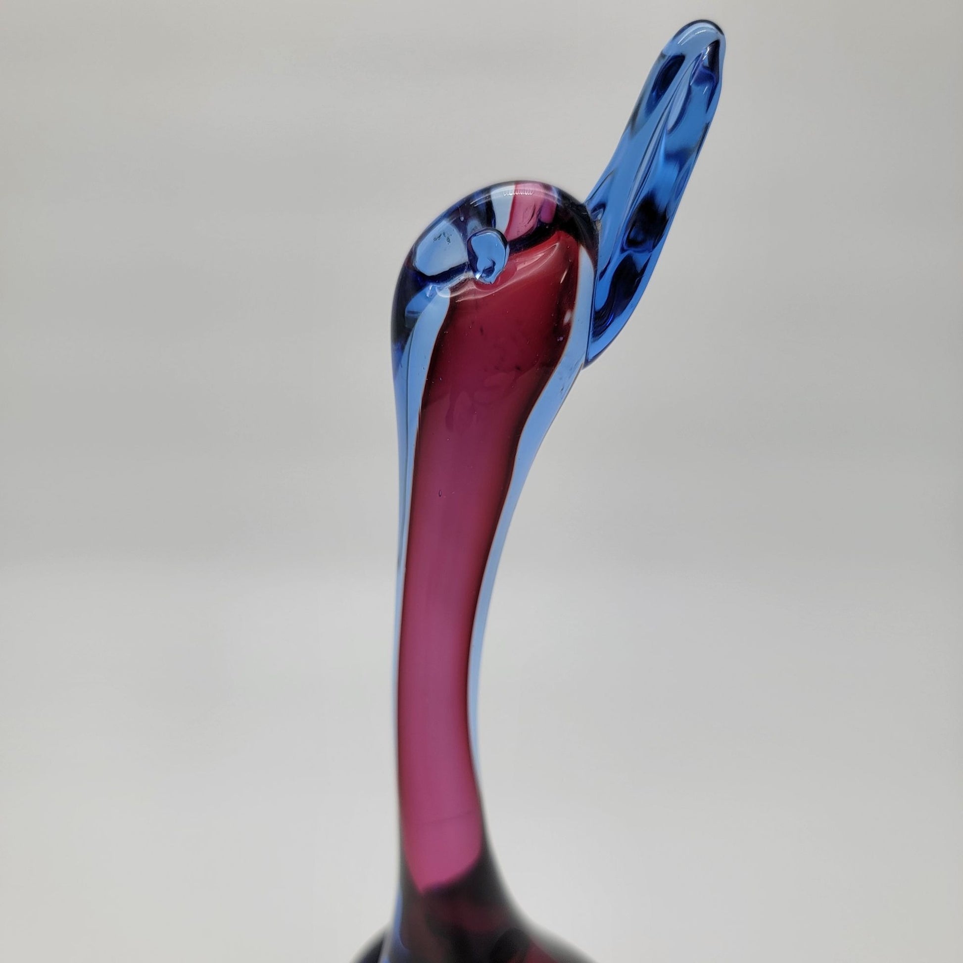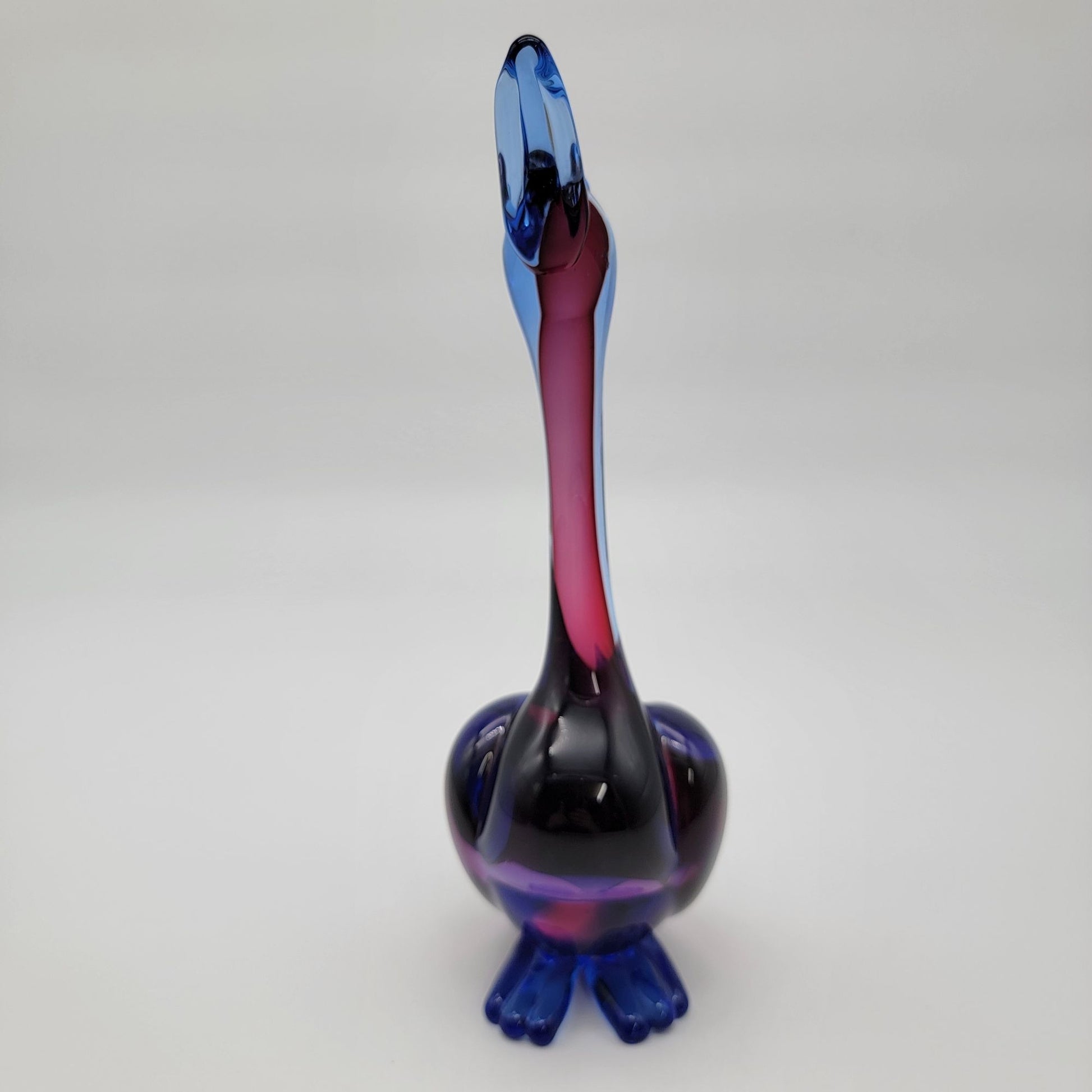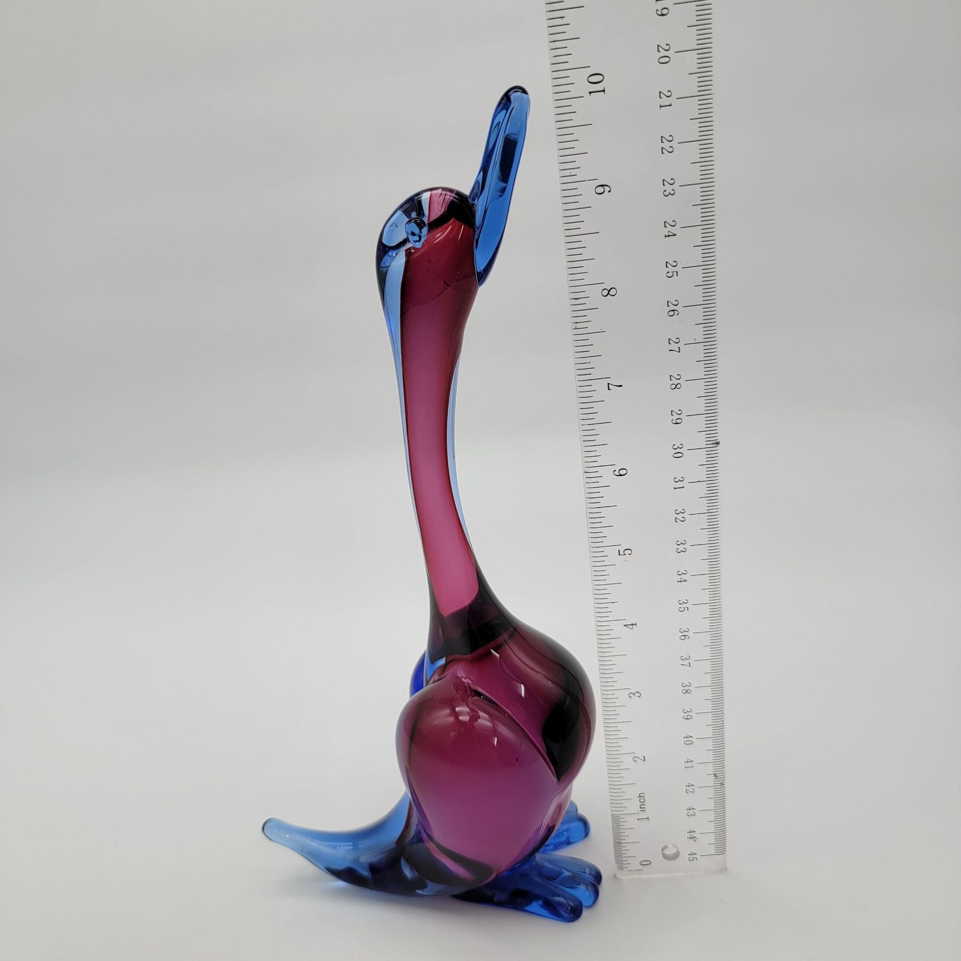 This captivating Murano glass duck by Archimede Seguso embodies the artistry of Italian craftsmanship. Its flowing blue and purple hues evoke a serene yet vibrant charm, while the elegant sommerso technique highlights its multidimensional beauty. A stunning decor piece and a timeless collectible.