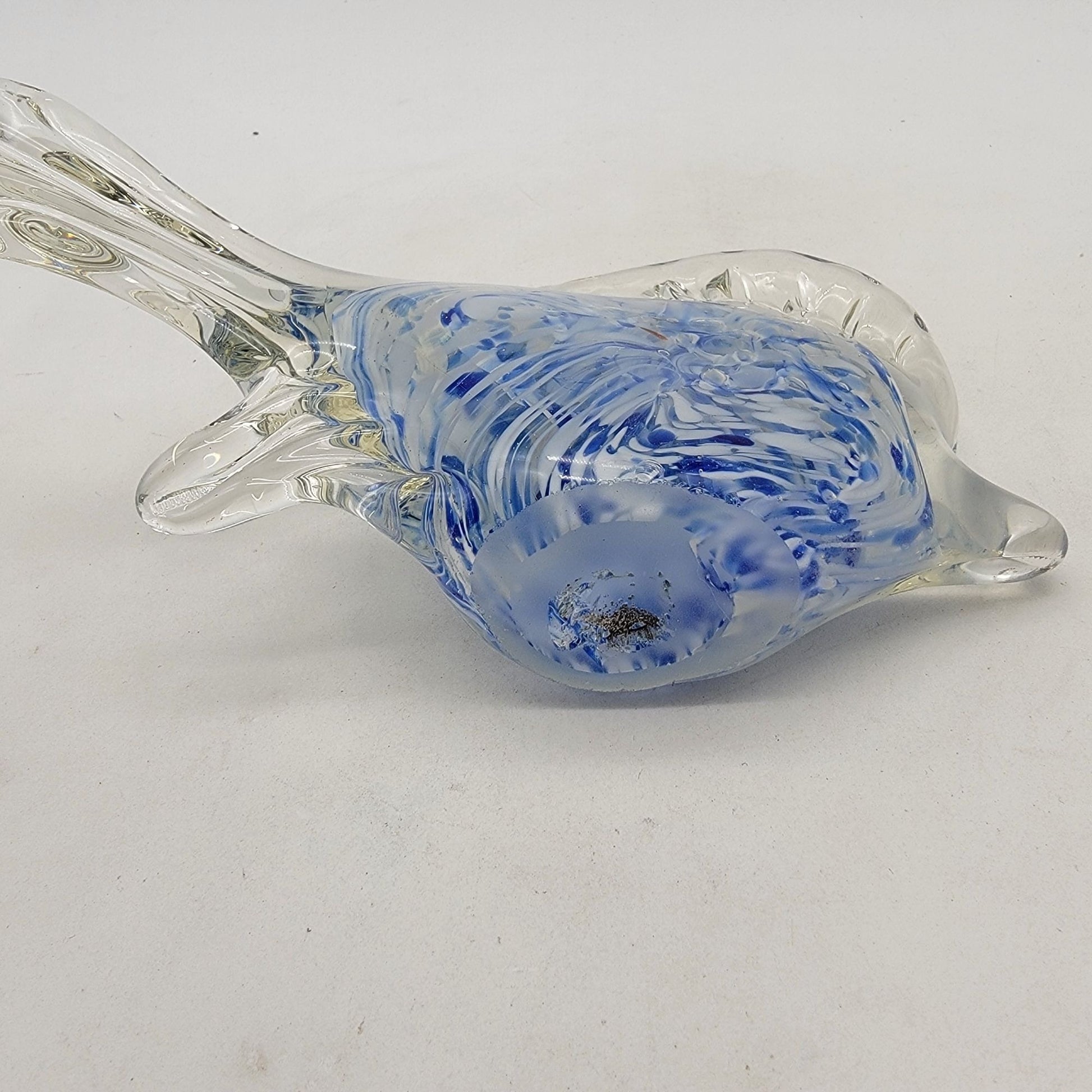 Vintage Art Glass Blue Cased Fish Sculpture Paperweight