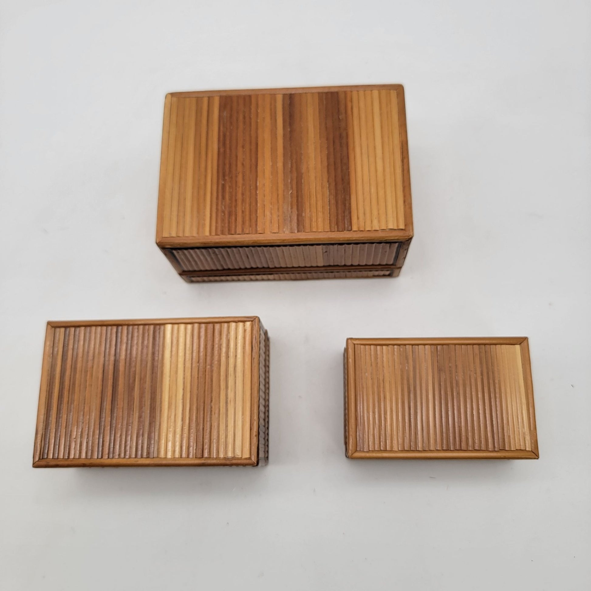 Vintage Bamboo Marquetry Rose Trinket Nesting Boxes Set of 3