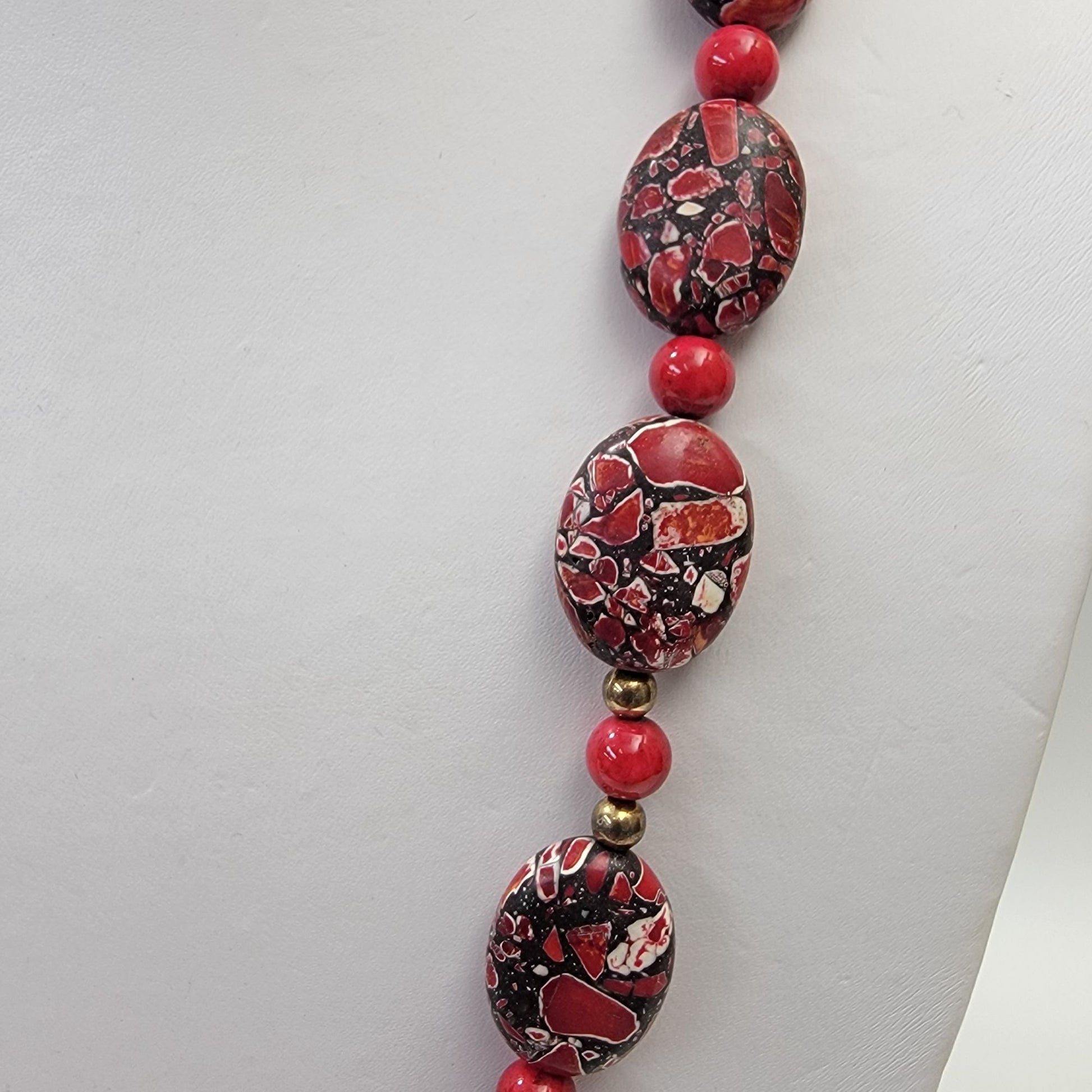 Vintage Brecciated Jasper & Cinnabar Beaded Necklace