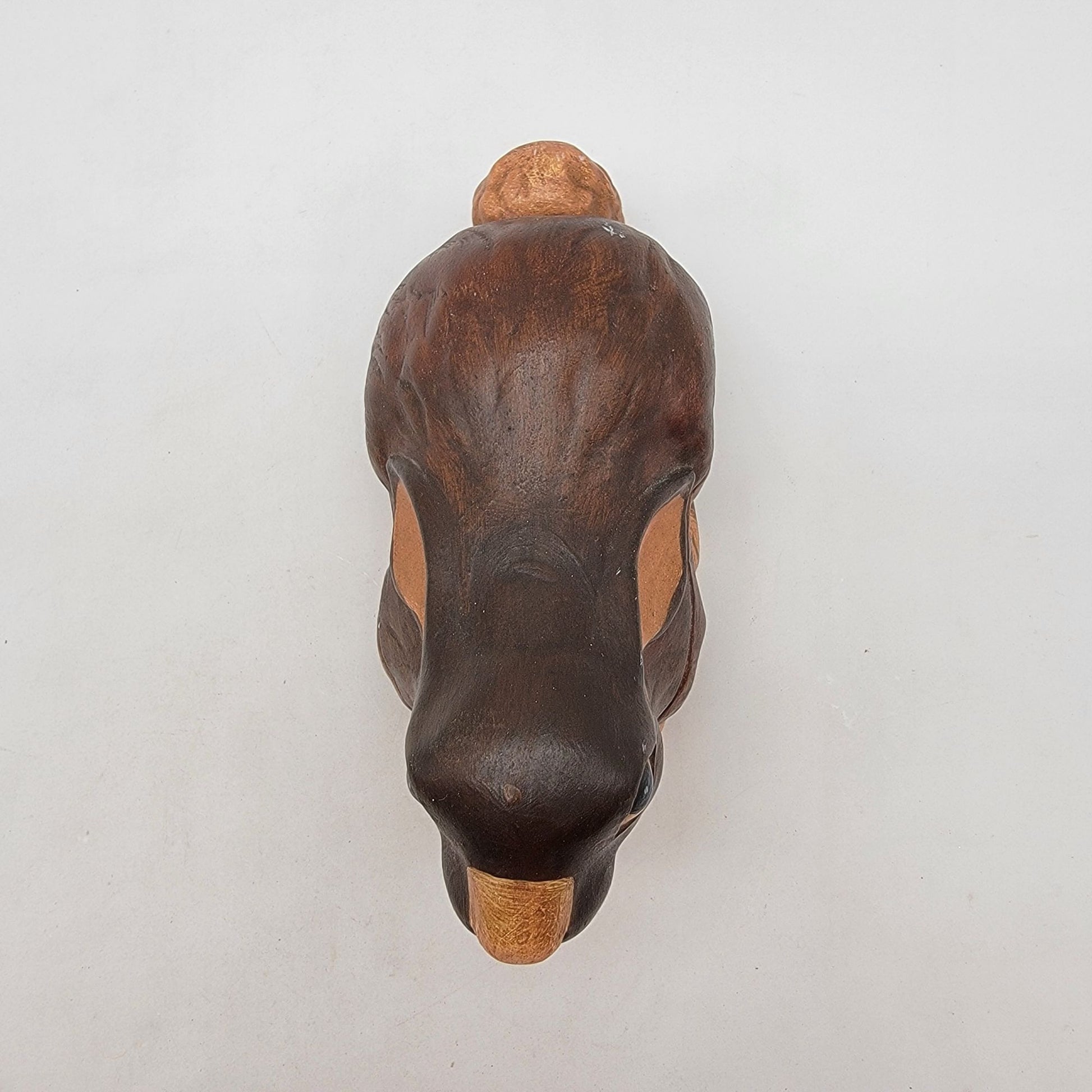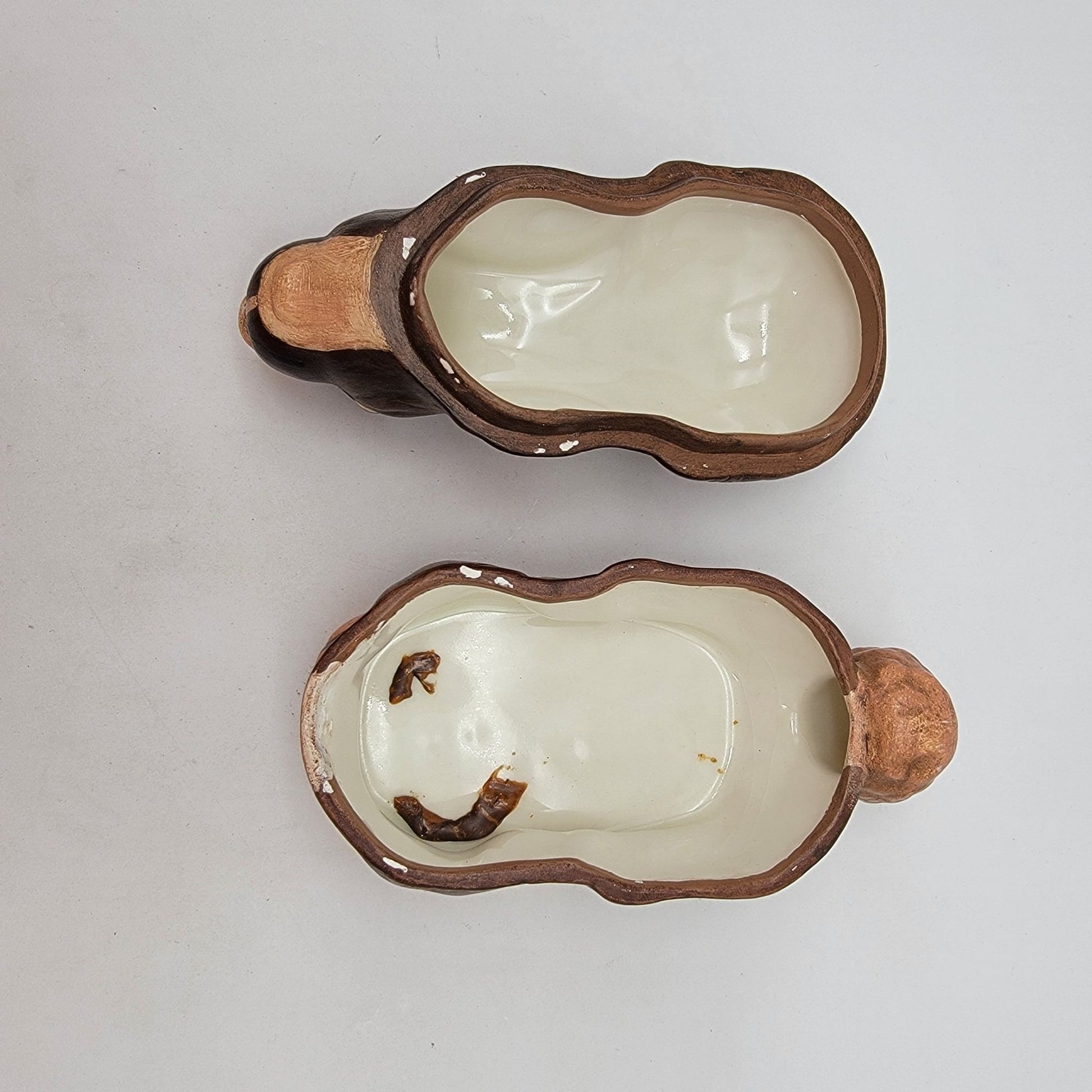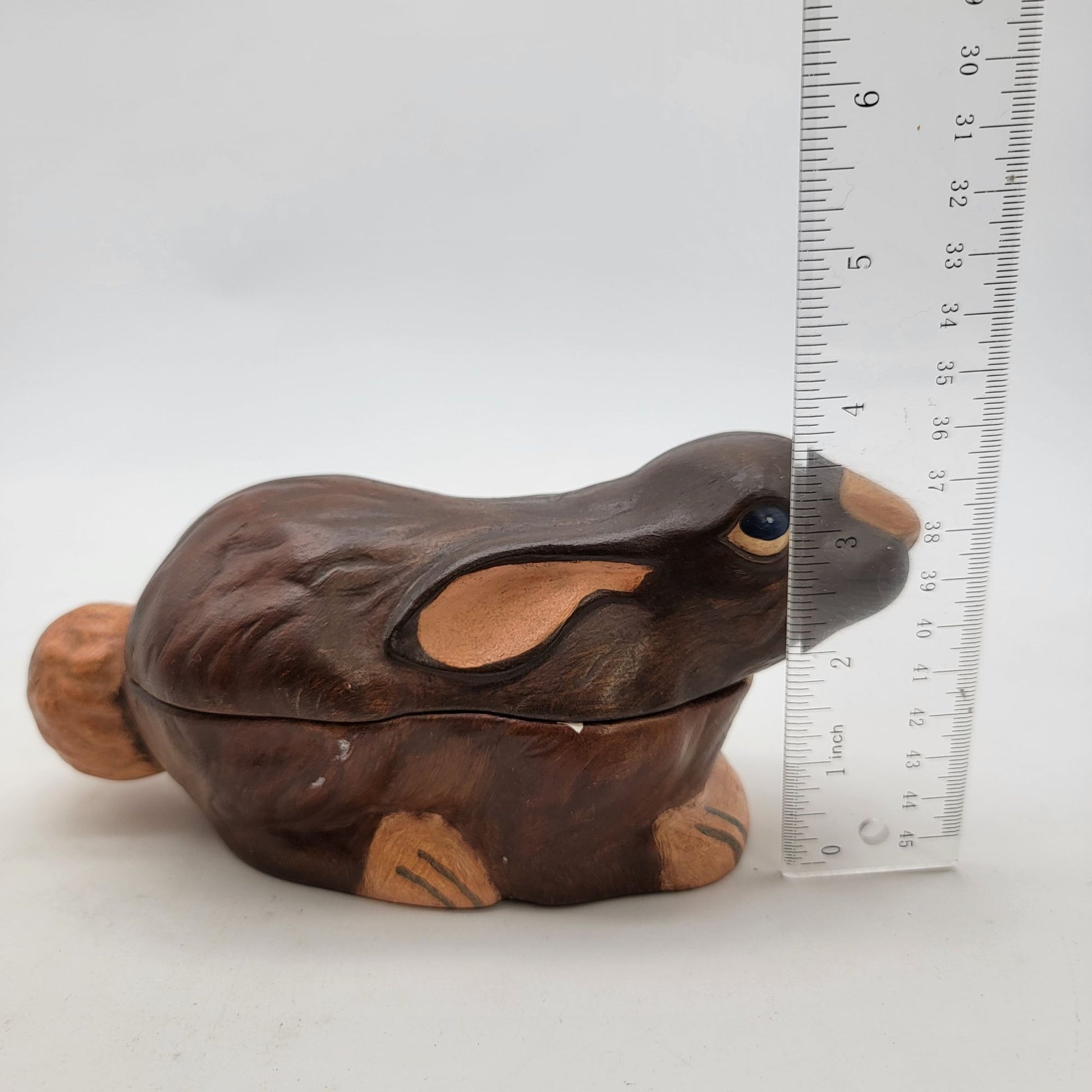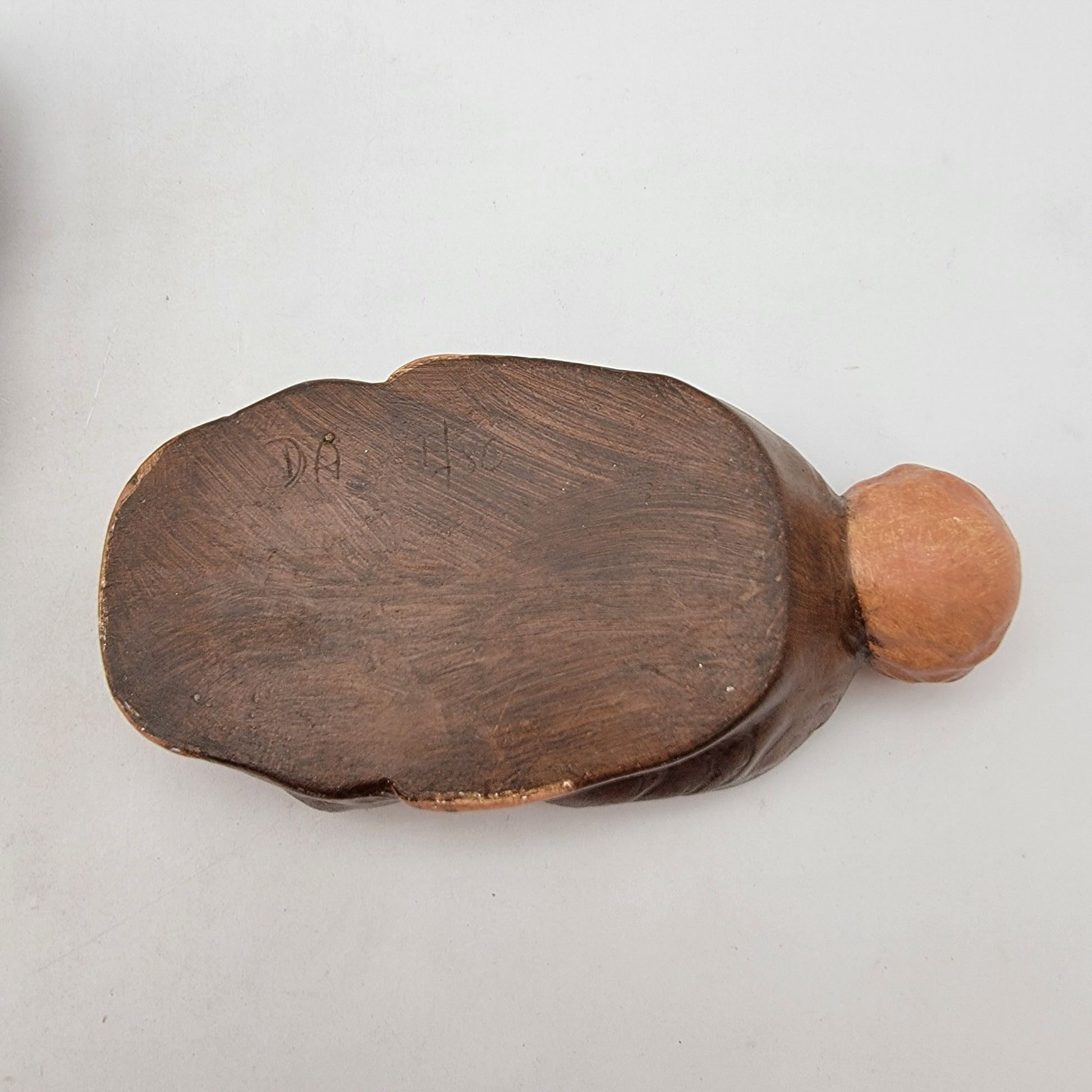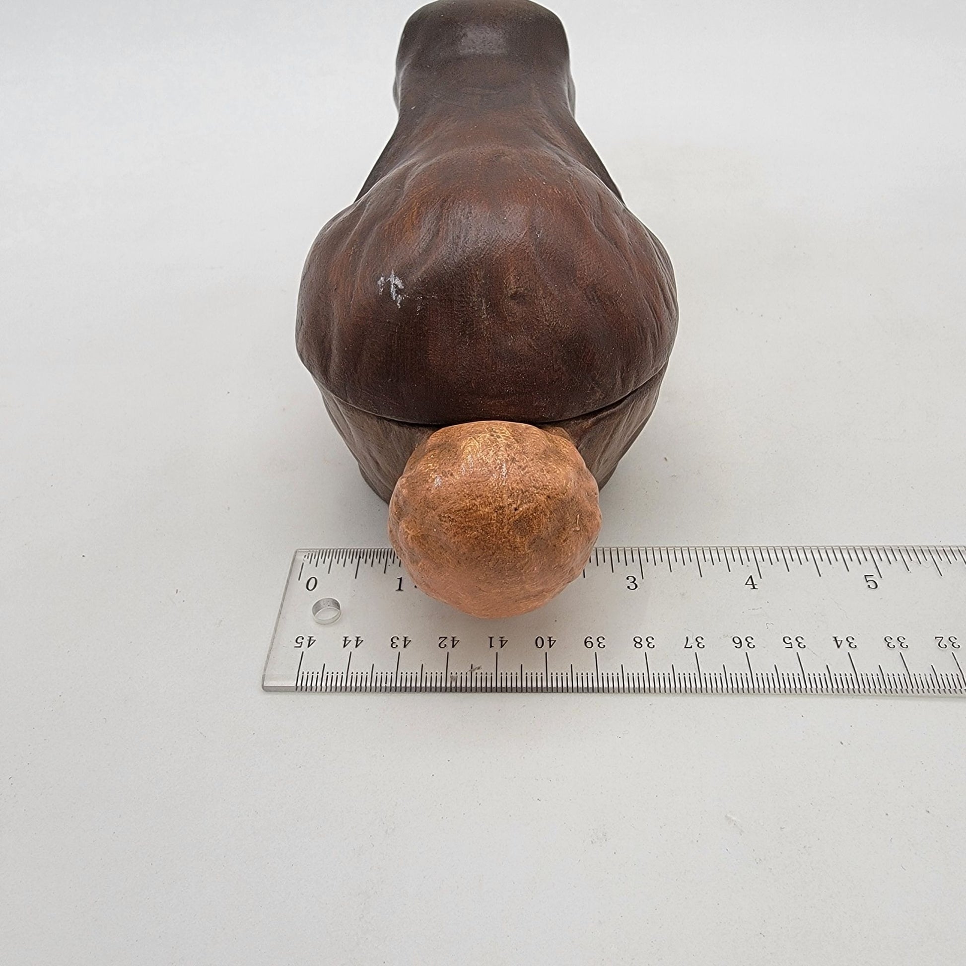 This handpainted ceramic bunny dish exudes vintage charm. Its rustic craftsmanship and signed detailing make it a delightful collectible or functional decor piece.
