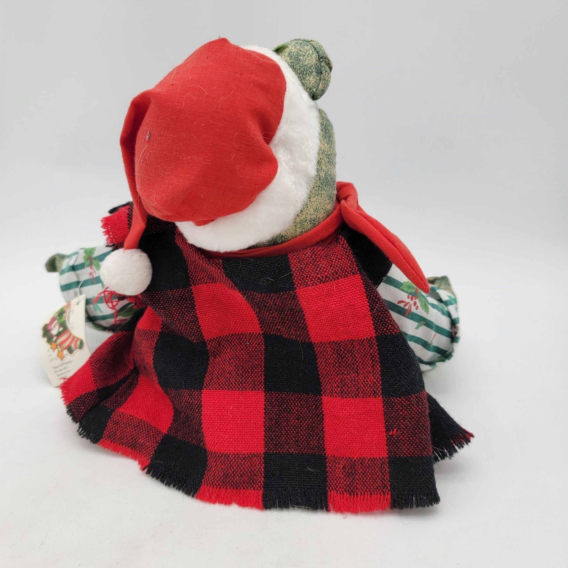 Vintage Christmas Frog Doll With Red Plaid Cape & Santa Hat