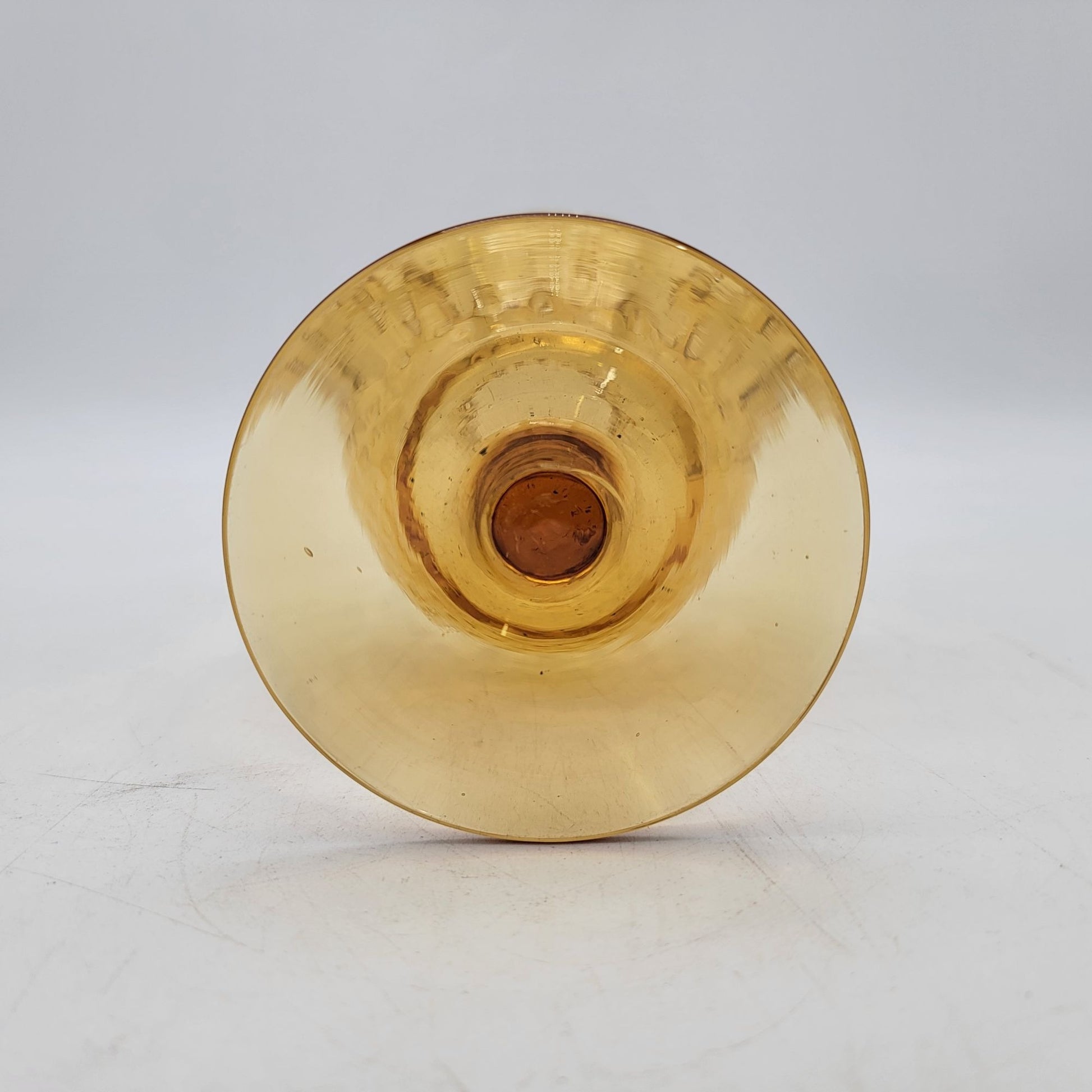 This vintage amber Empoli glass vase exudes timeless elegance with its scalloped rim and textured design. A beautiful piece for decor or collectors alike.