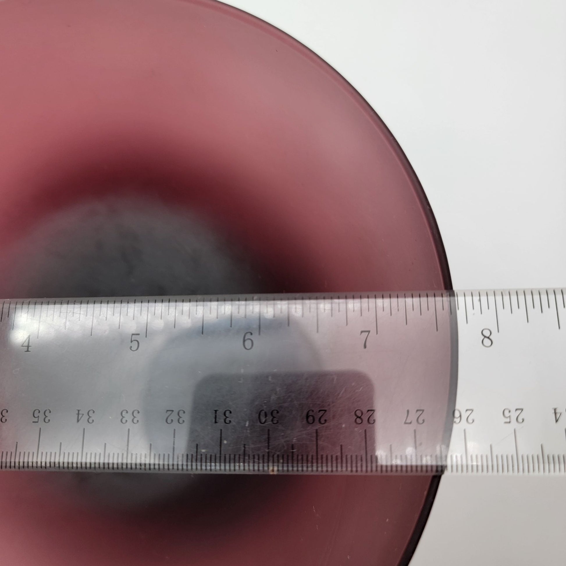 This vintage Empoli satin glass compote in amethyst purple features a sleek, mid-century modern design. With a wide bowl and stable pedestal base, it offers both sophistication and functionality for displaying fruit, flowers, or decorative items.