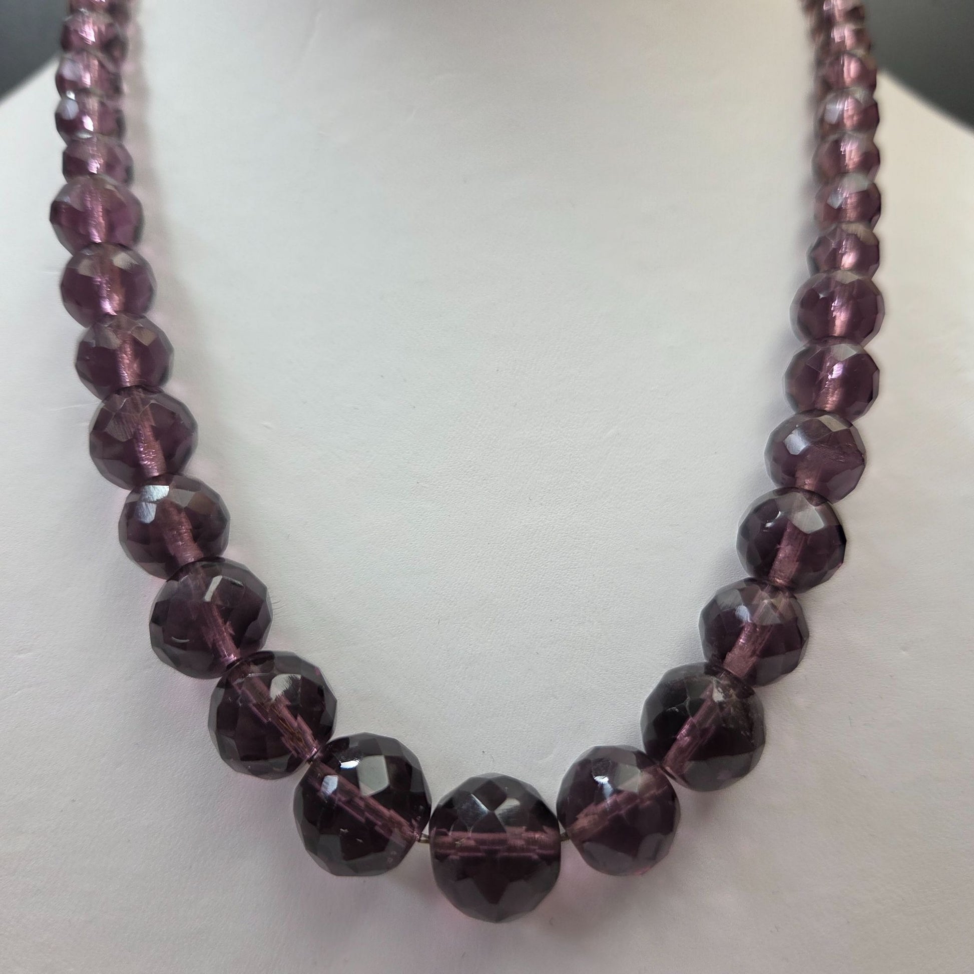Vintage Faceted Amethyst Czech Glass Beaded Necklace 18"