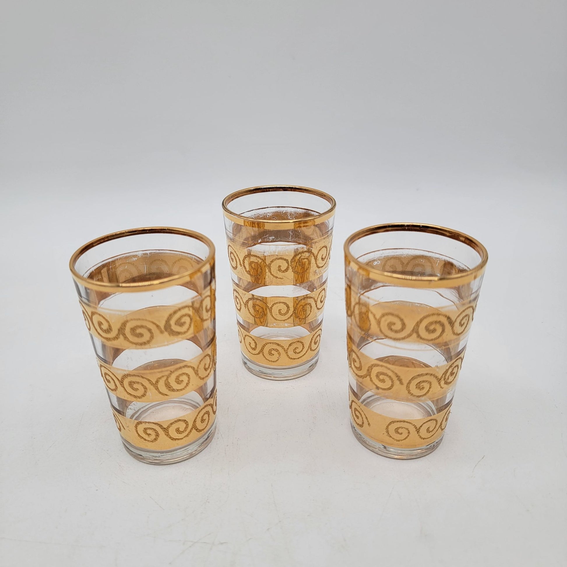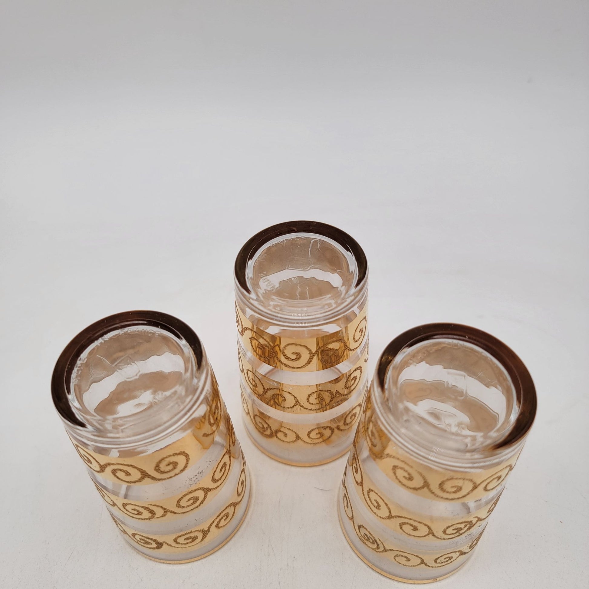 Vintage French Gold Swirl Pattern Shot Glasses Set Of 3