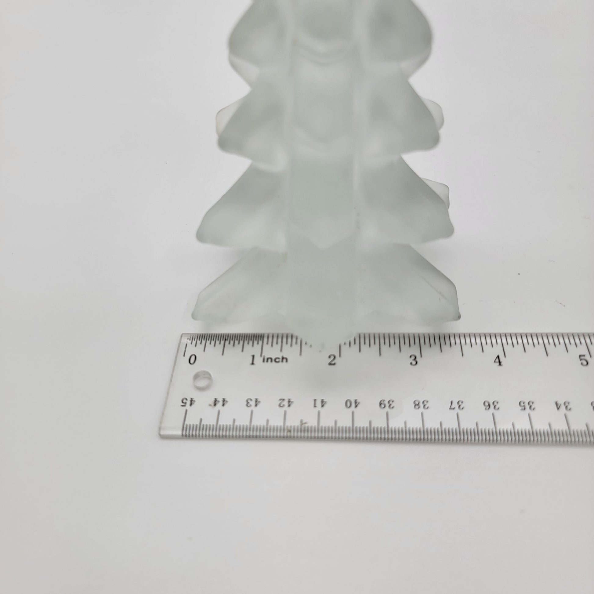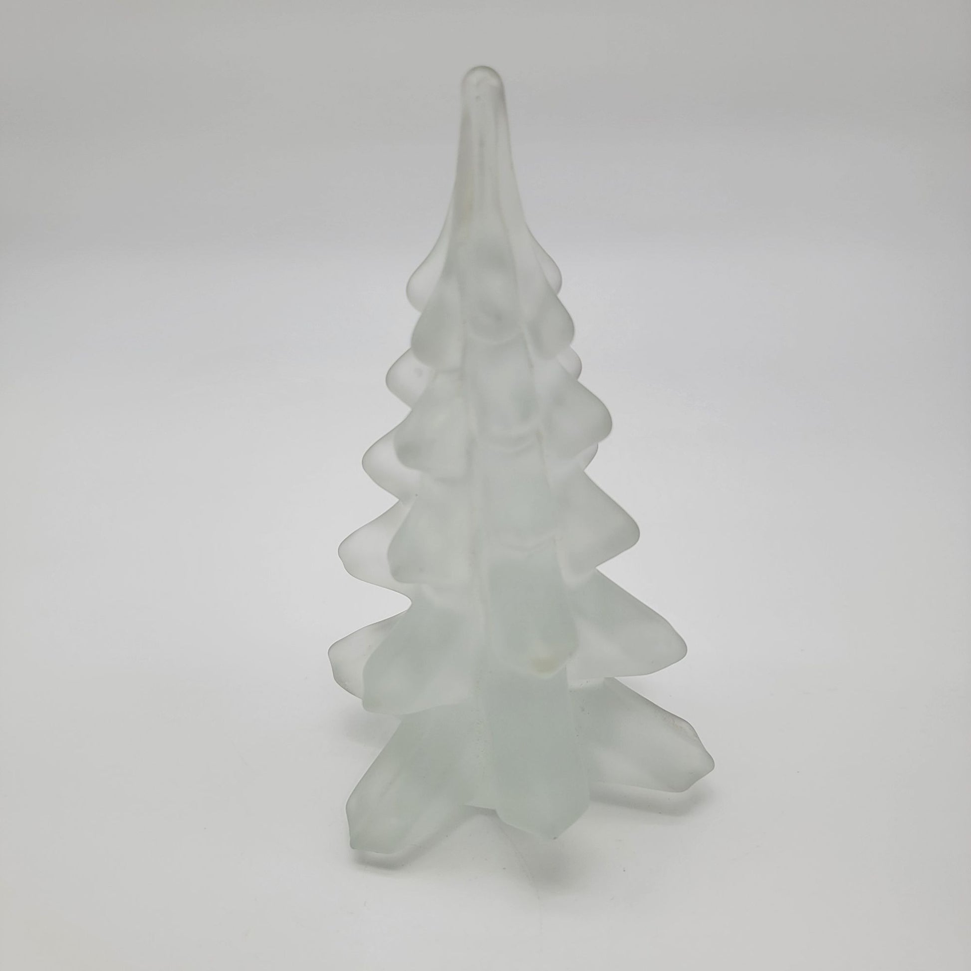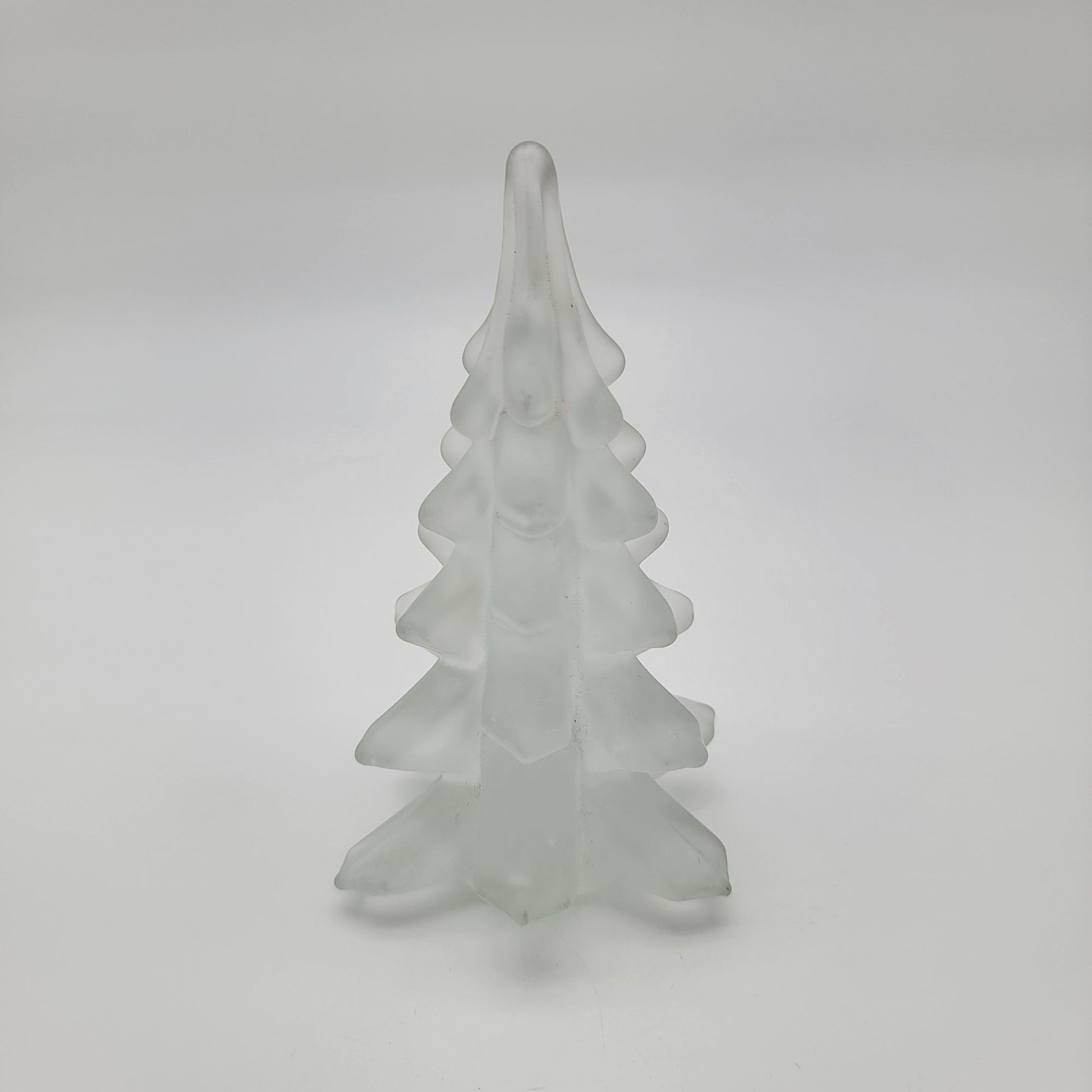This frosted art glass Christmas tree figurine adds a sophisticated touch to holiday décor. Its timeless design makes it an elegant seasonal accent.