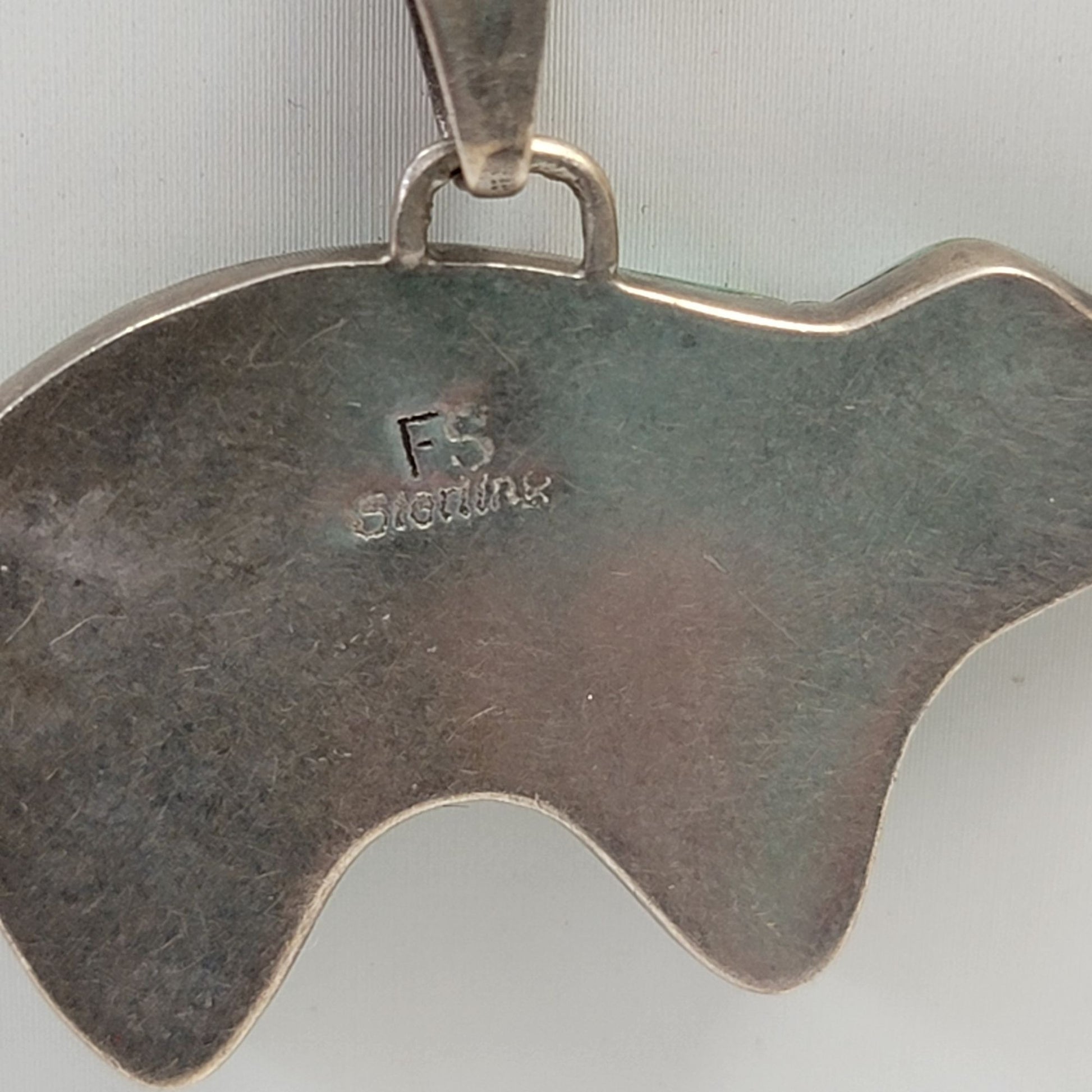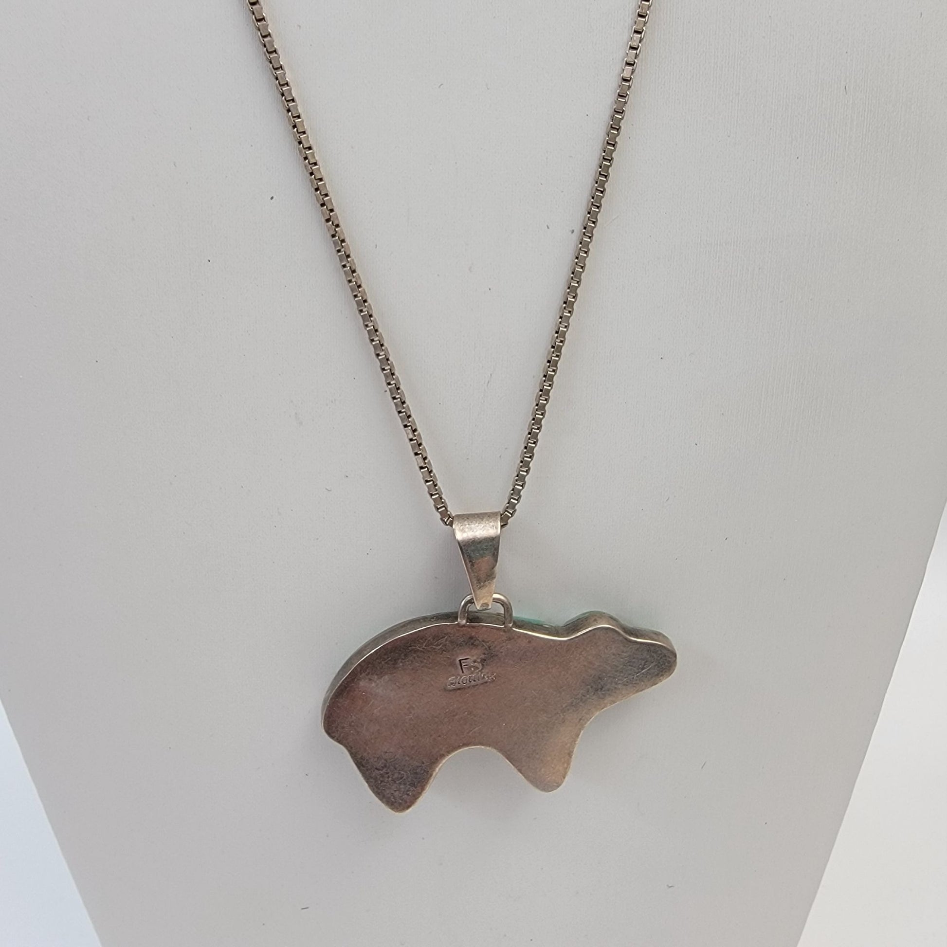 Vintage FS Navajo Mosaic Inlay Royston Turquoise Bear Sterling Pendant With 925 Italy Chain