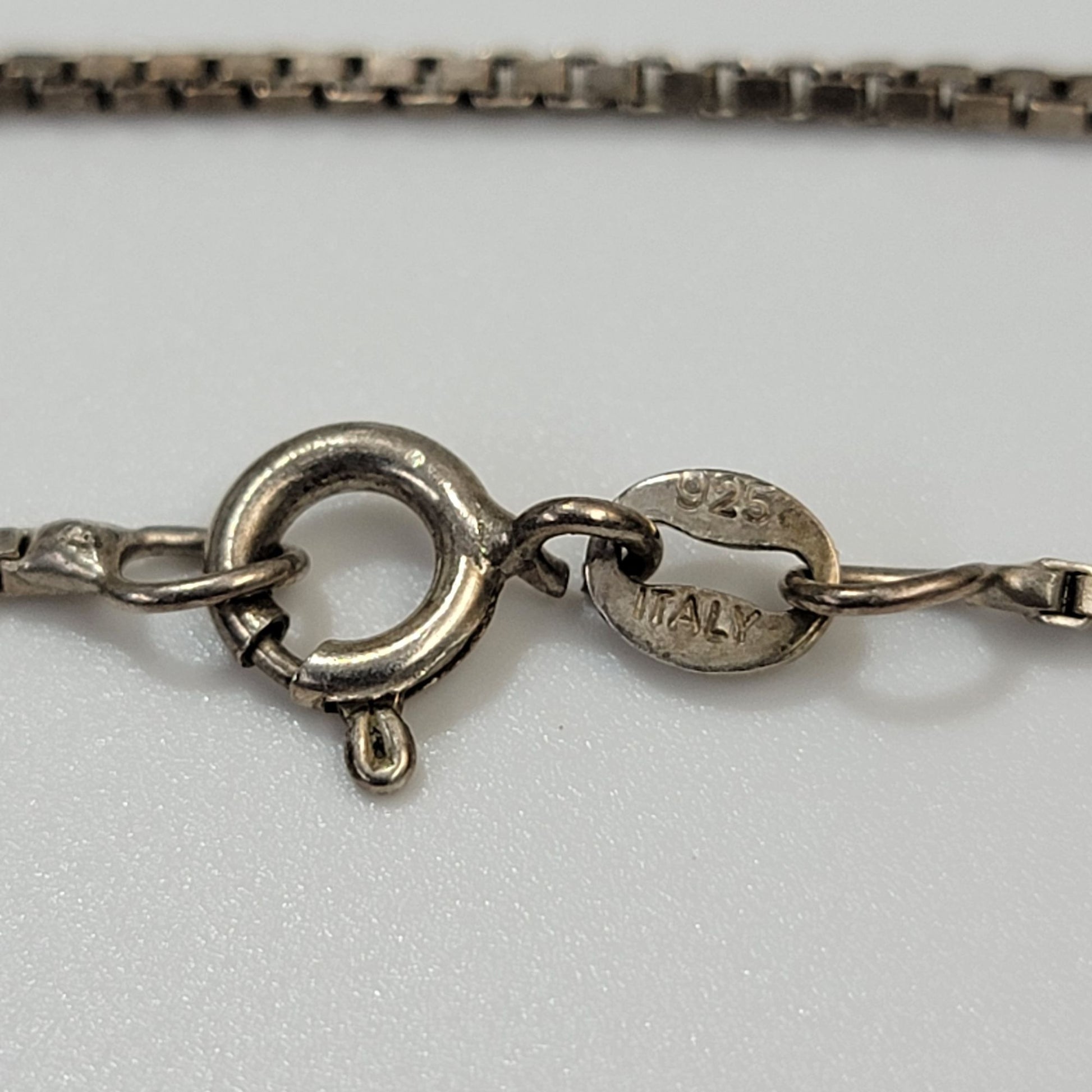 This pendant tells a tale of craftsmanship and heritage. The turquoise bear inlay reflects Navajo artistry, while the sterling box chain adds a timeless touch. A treasure from the past, it embodies traditions and enduring beauty, connecting its wearer to a rich history of skilled artisanship.