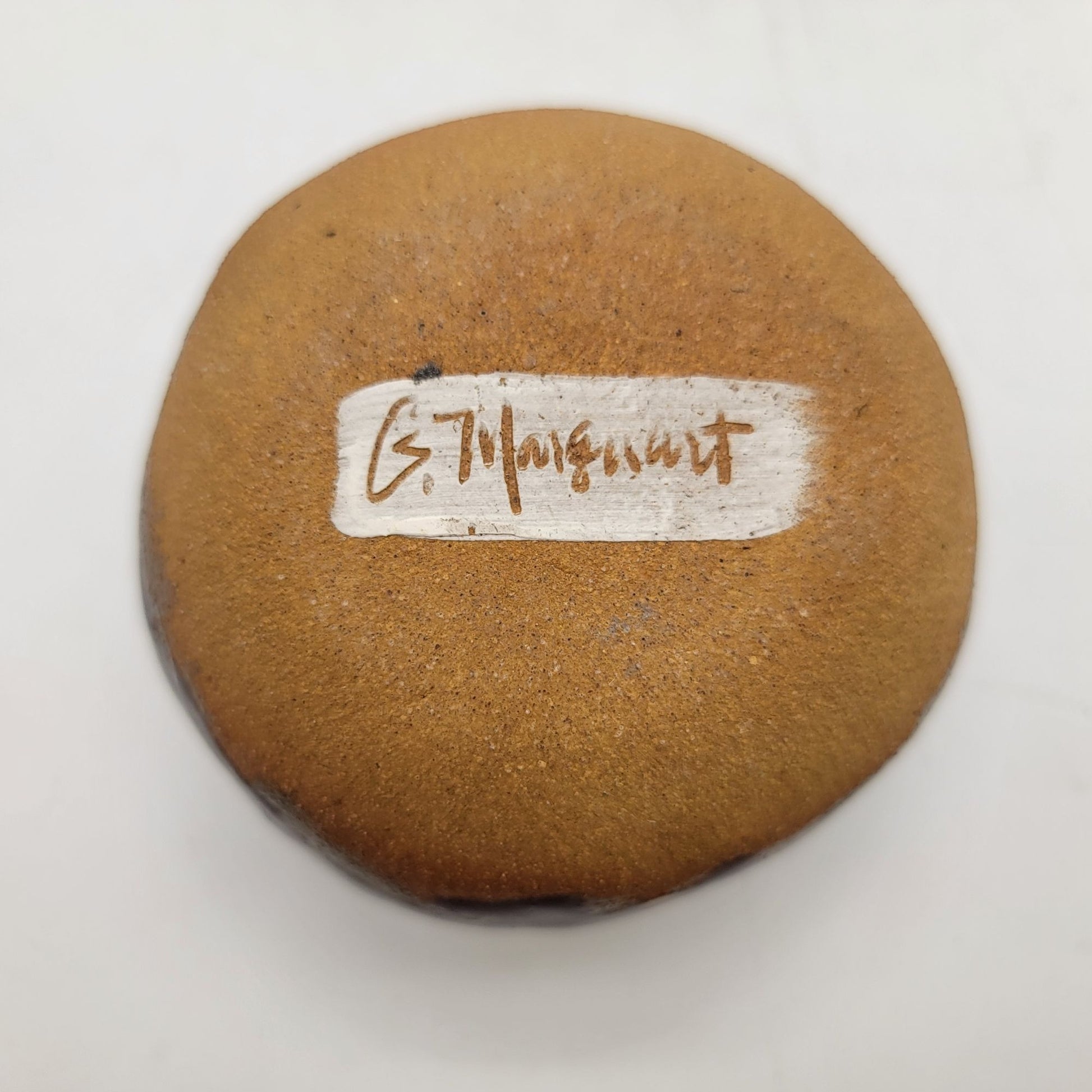Vintage G. Marquart Art Pottery Paperweight Blue Glaze Textured Finish Signed