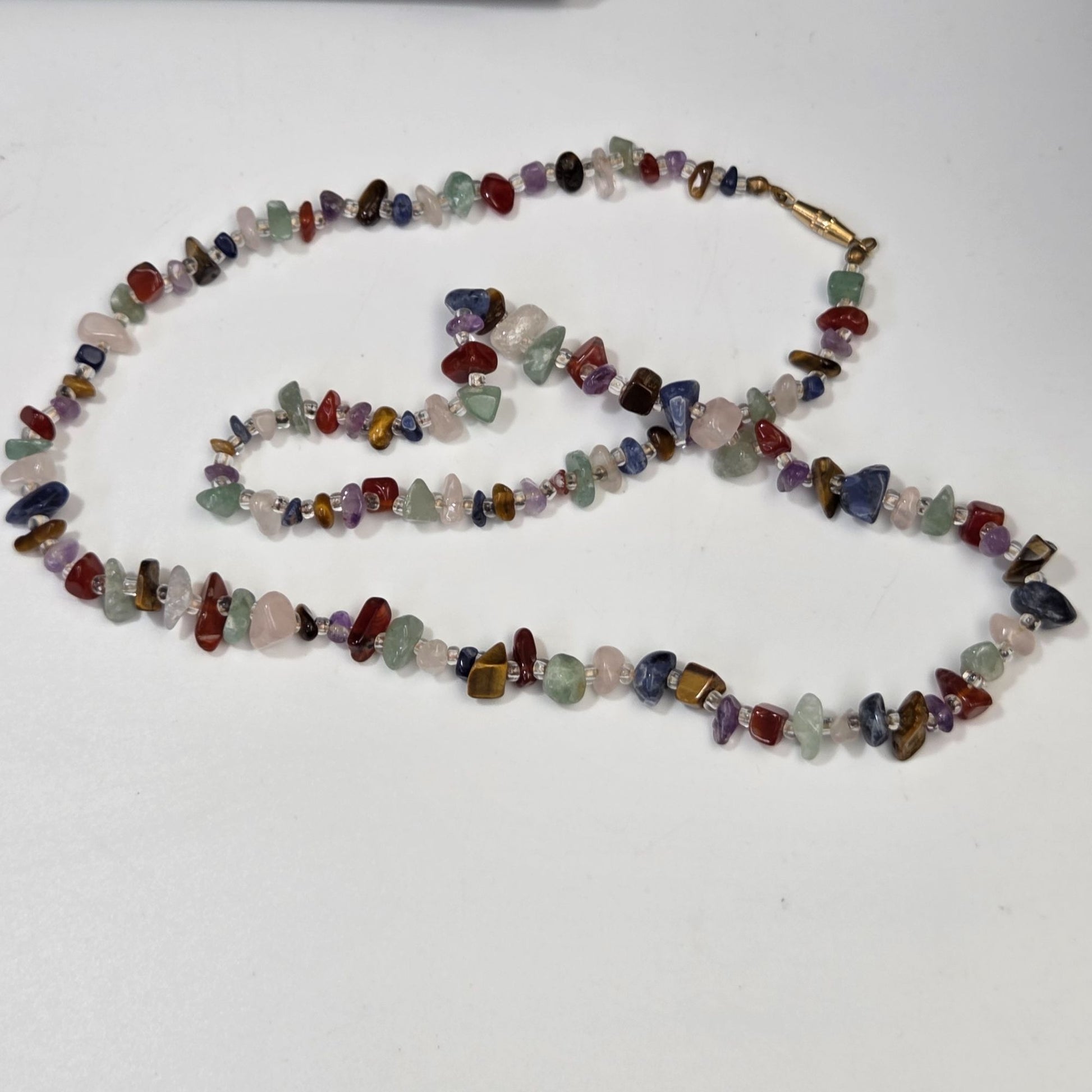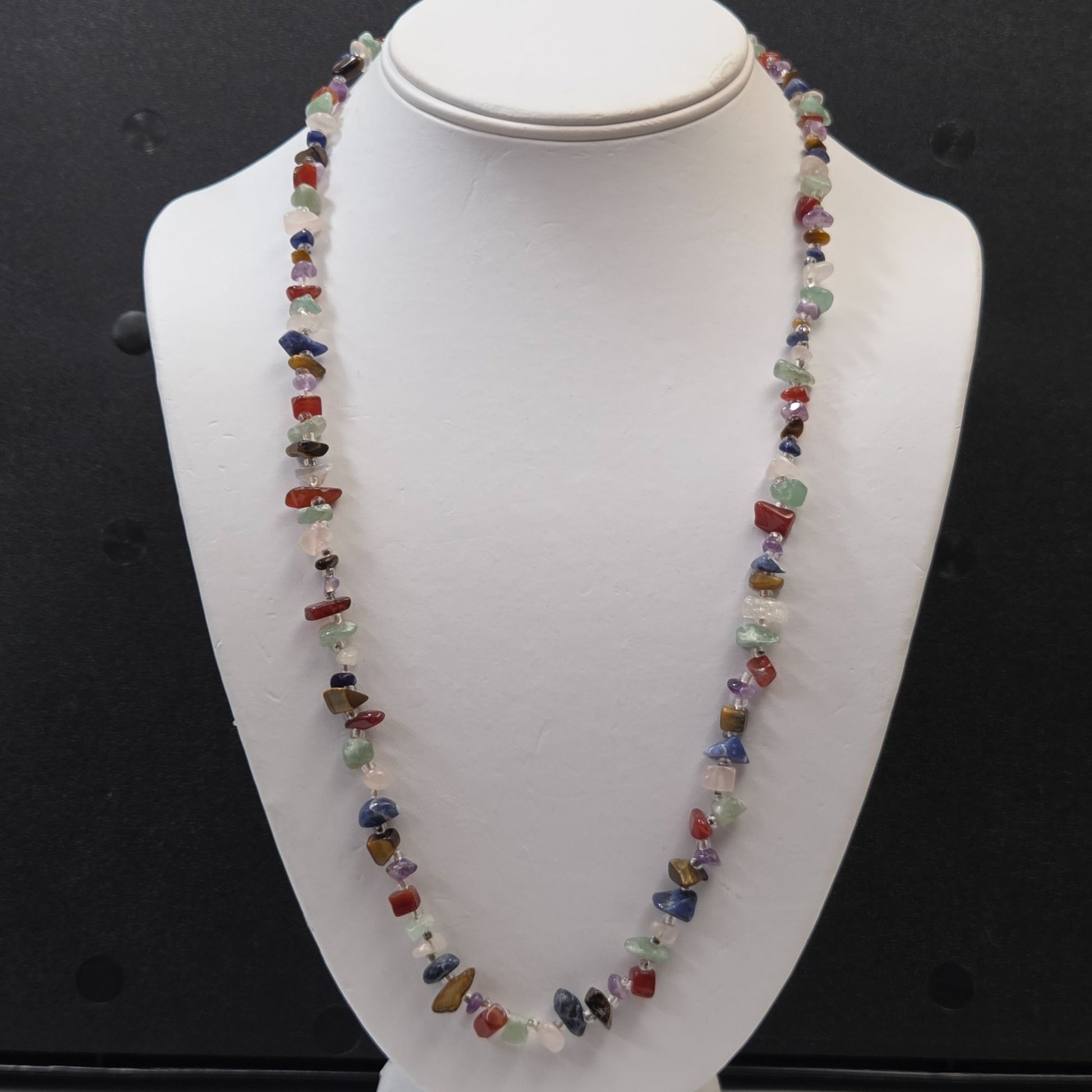 This necklace tells a story of timeless beauty, crafted with vibrant gemstone chips. Each bead adds its unique charm, creating a captivating piece perfect for enhancing any outfit.