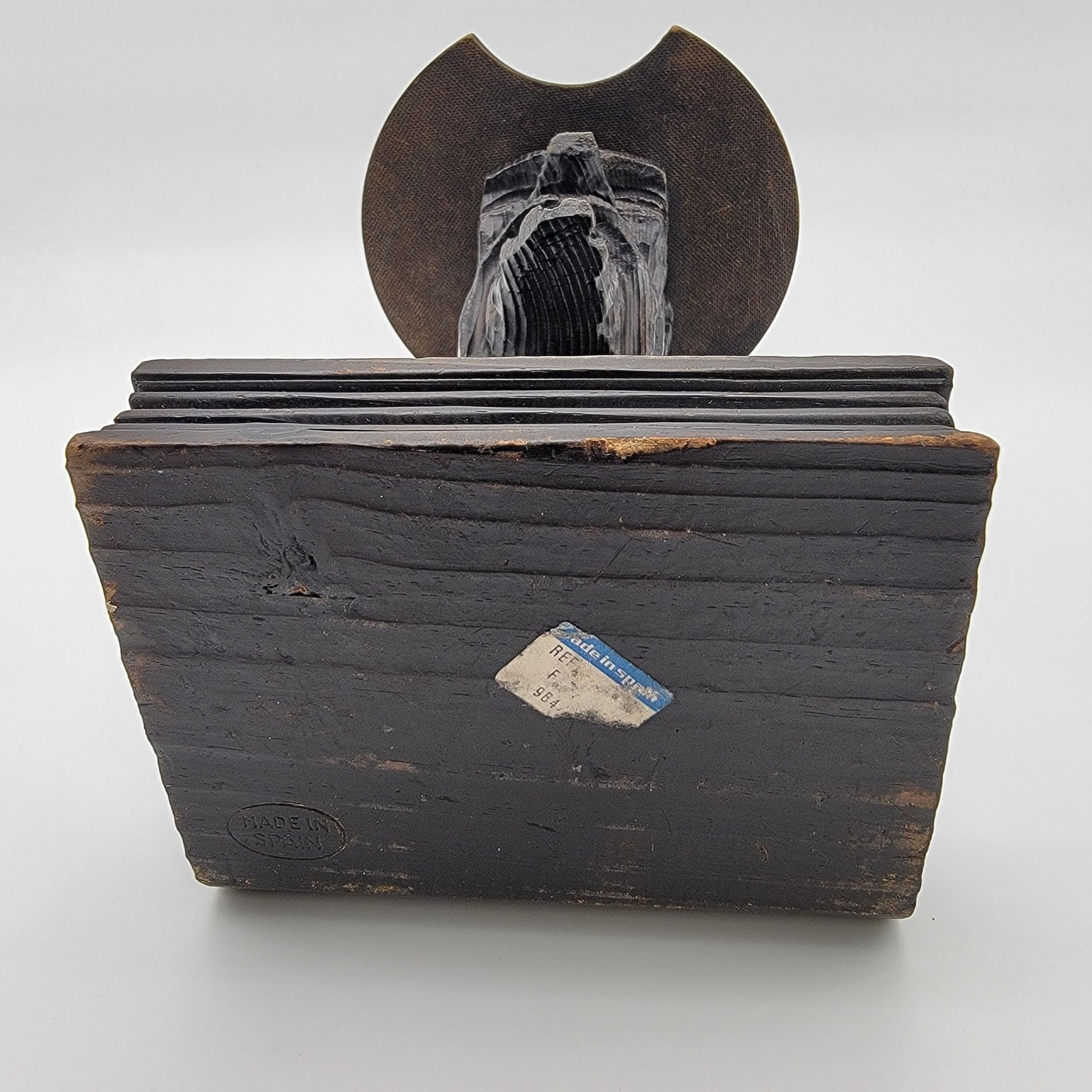 Crafted with precision, this vintage Spanish wood sculpture depicts Don Quixote with intricate details, showcasing timeless artistry and cultural heritage.