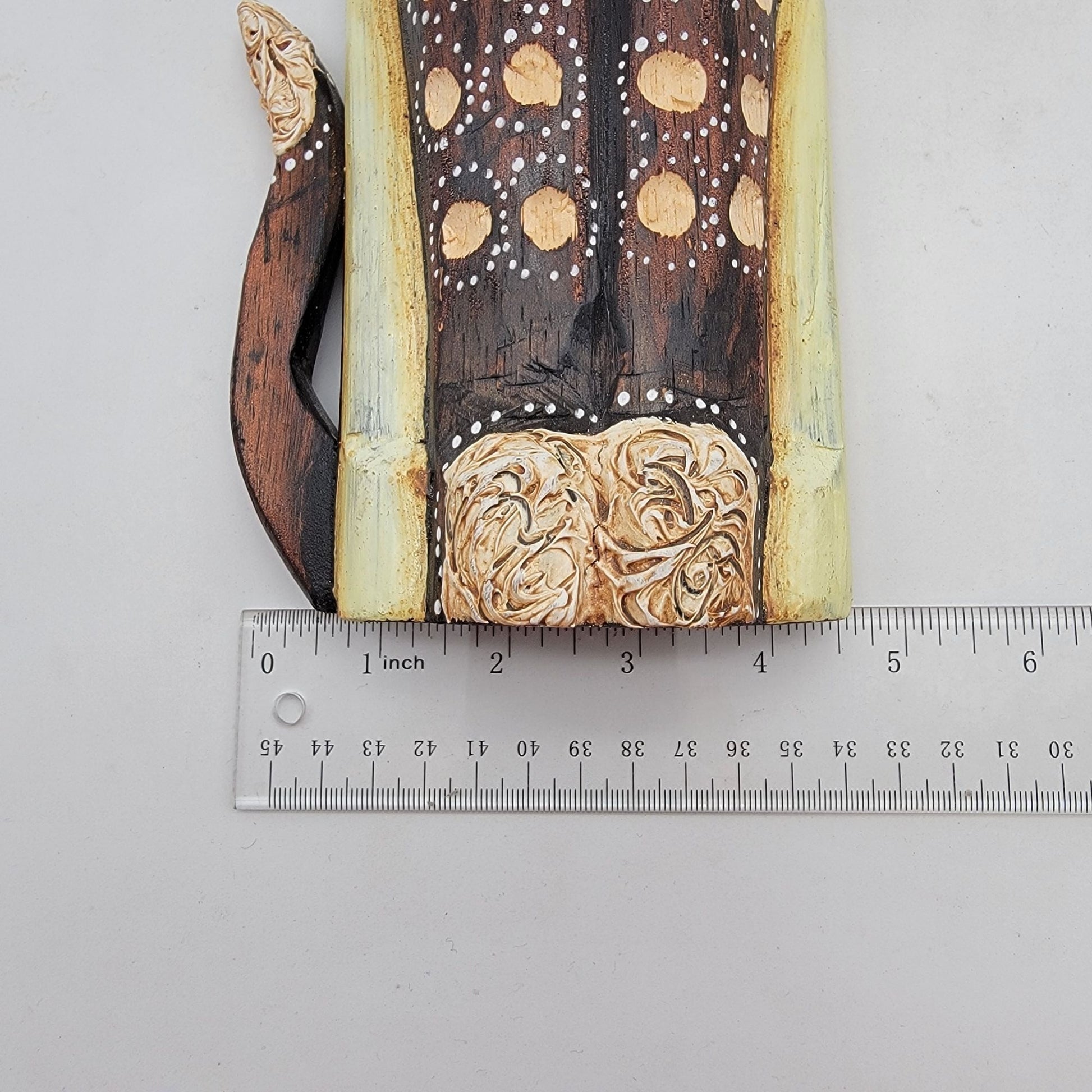 • Hand-carved wood with detailed patterns