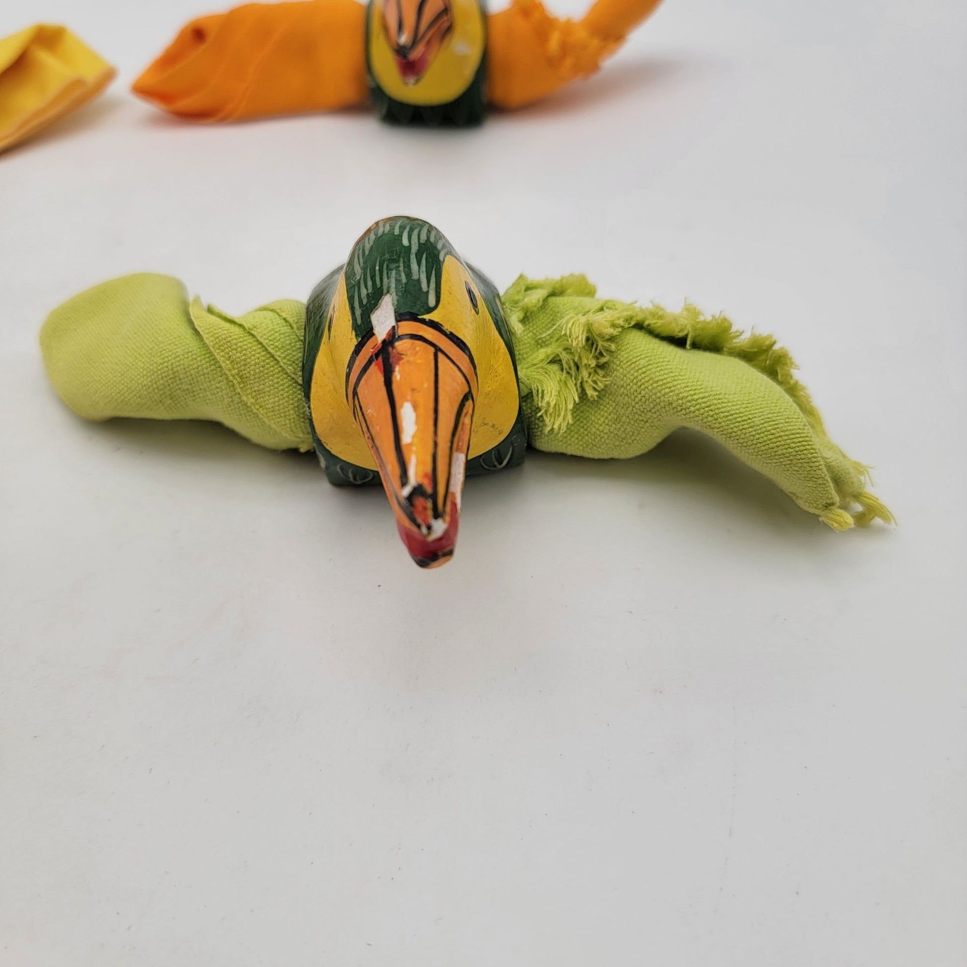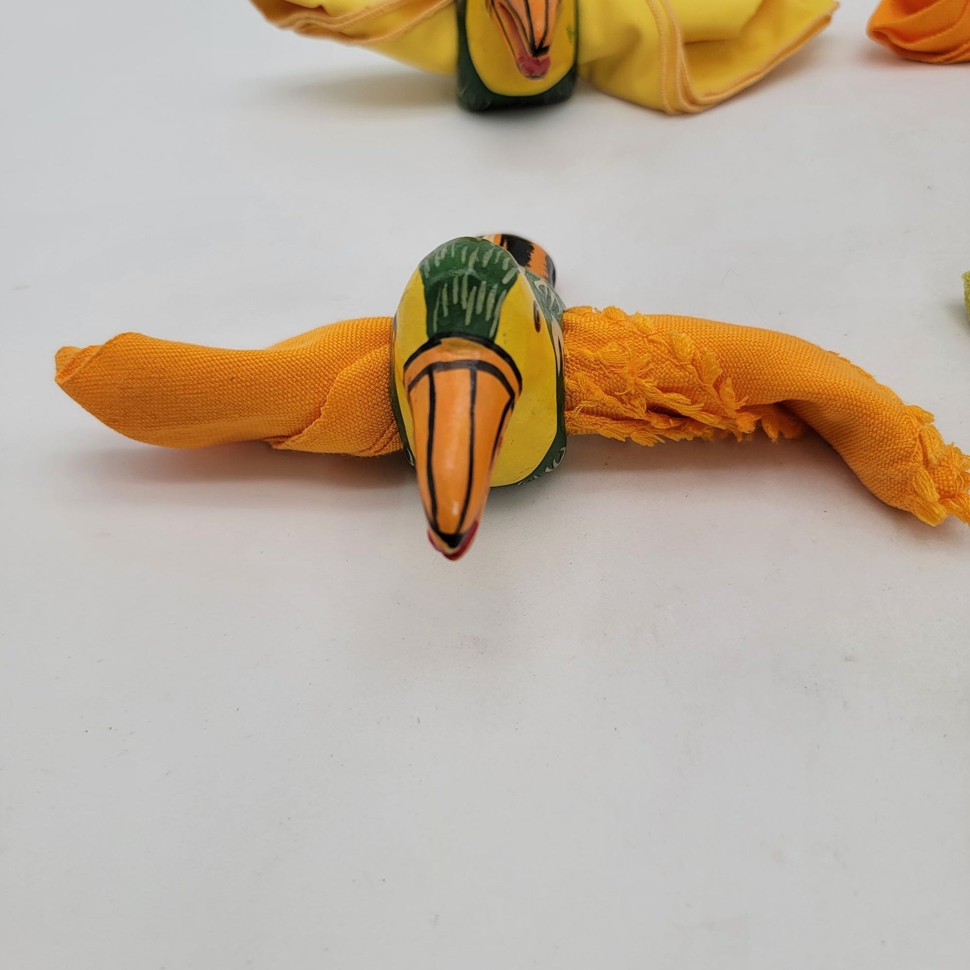 Vintage Hand Crafted & Painted Wood Toucan Napkin Rings Set Of 4 With Napkins