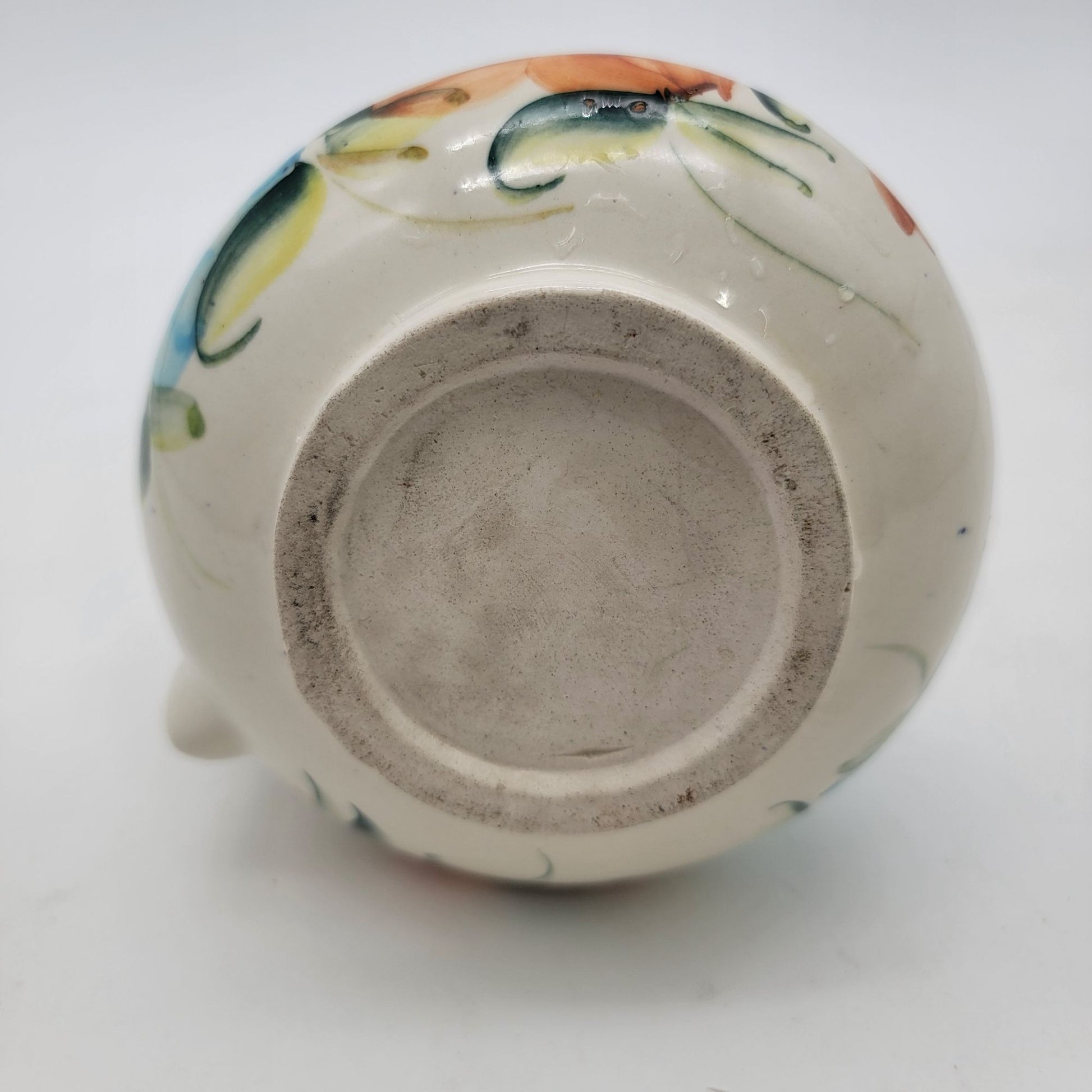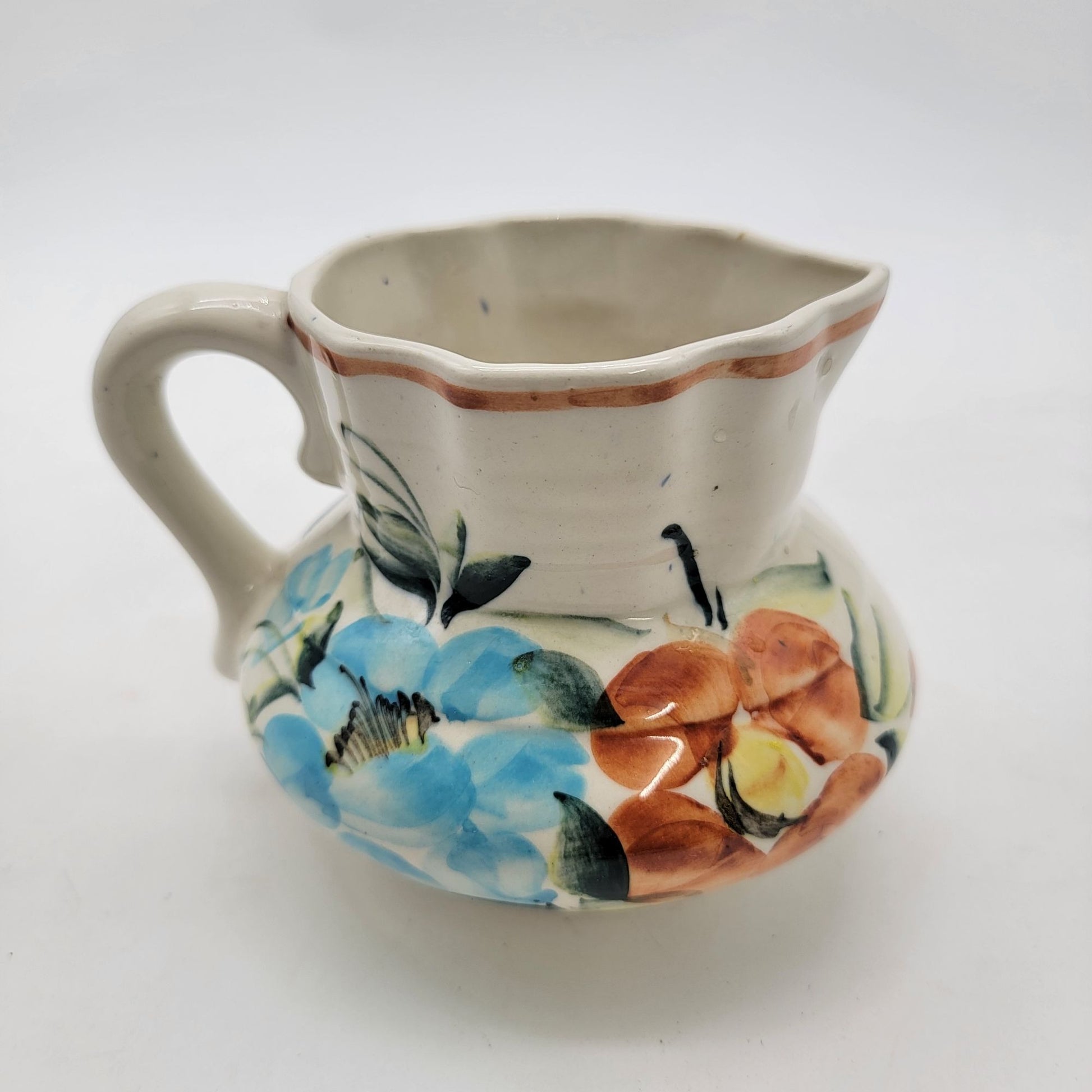Vintage Hand-Painted Art Pottery Floral Pitcher With Handle