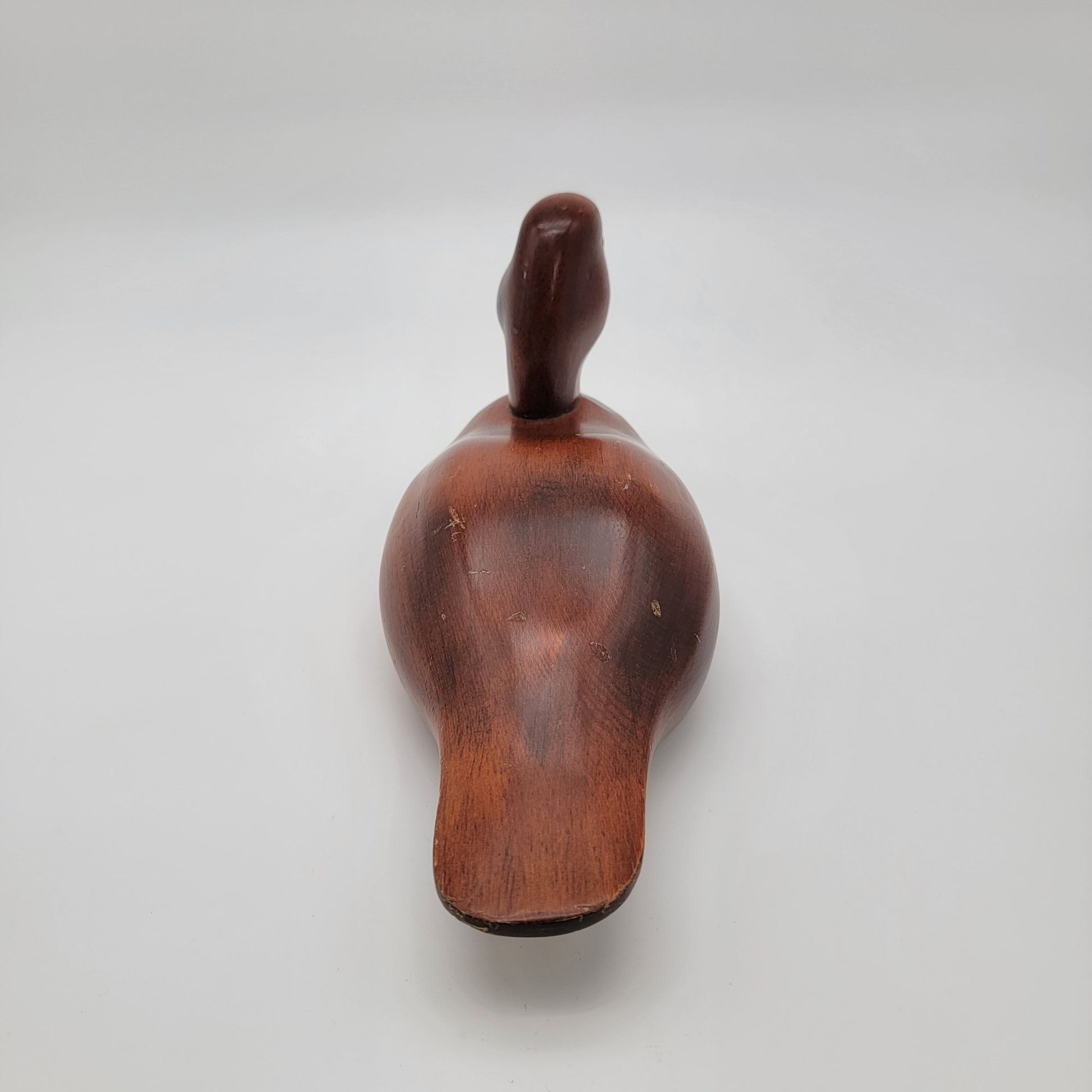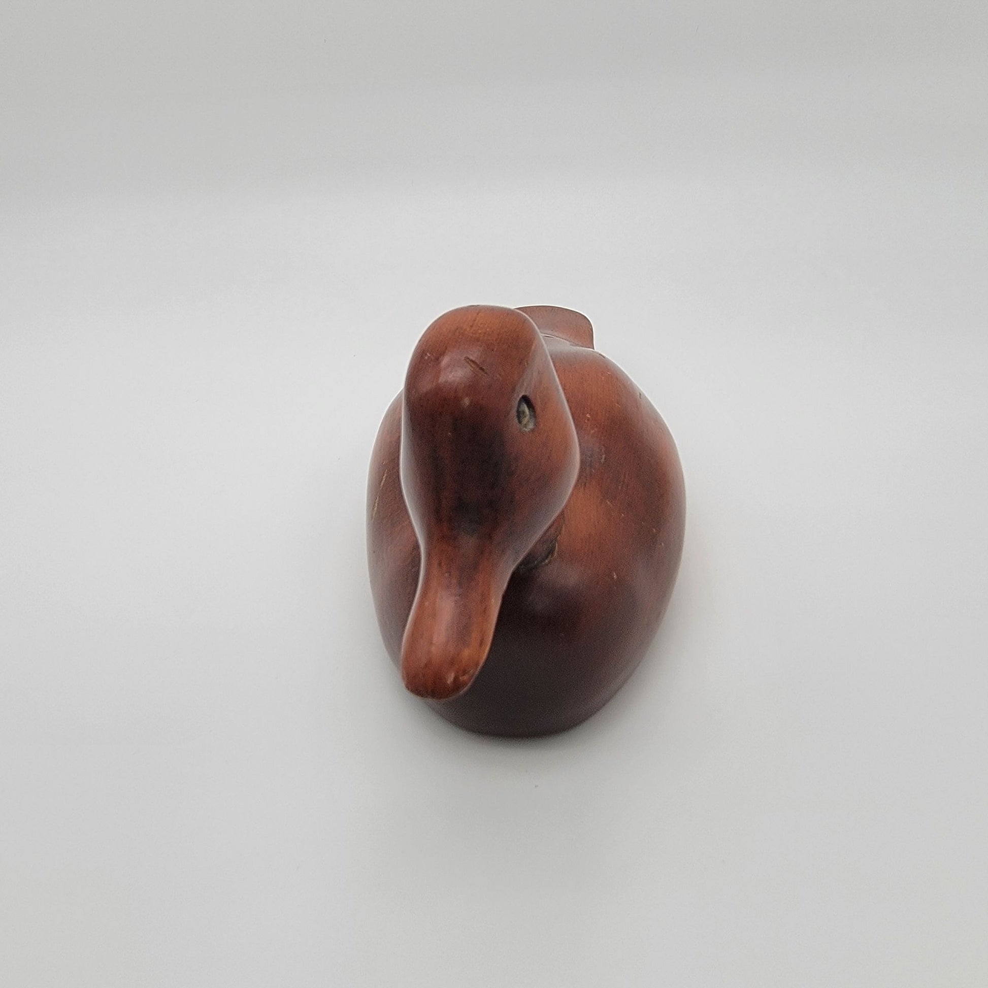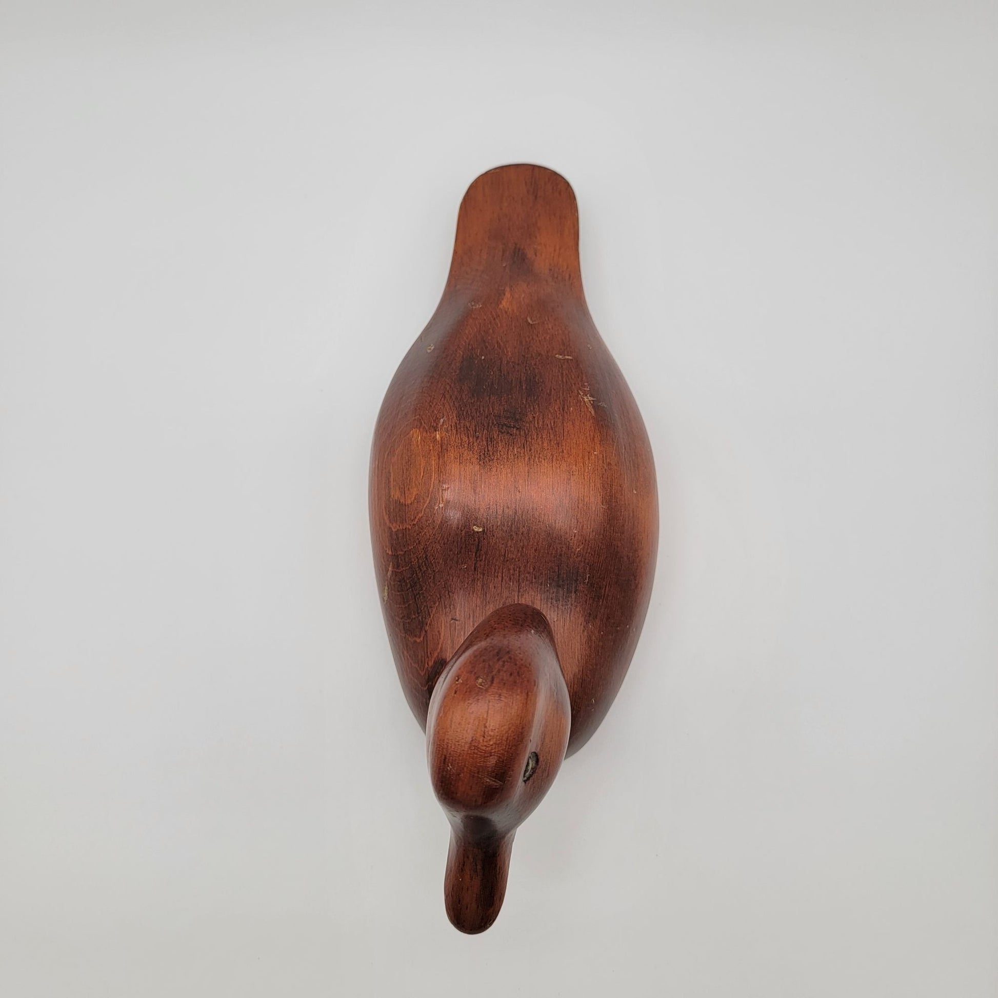 This vintage wooden Bufflehead duck decoy showcases masterful craftsmanship and timeless charm. Its rich wood tones and smooth finish add rustic elegance to decorative spaces.