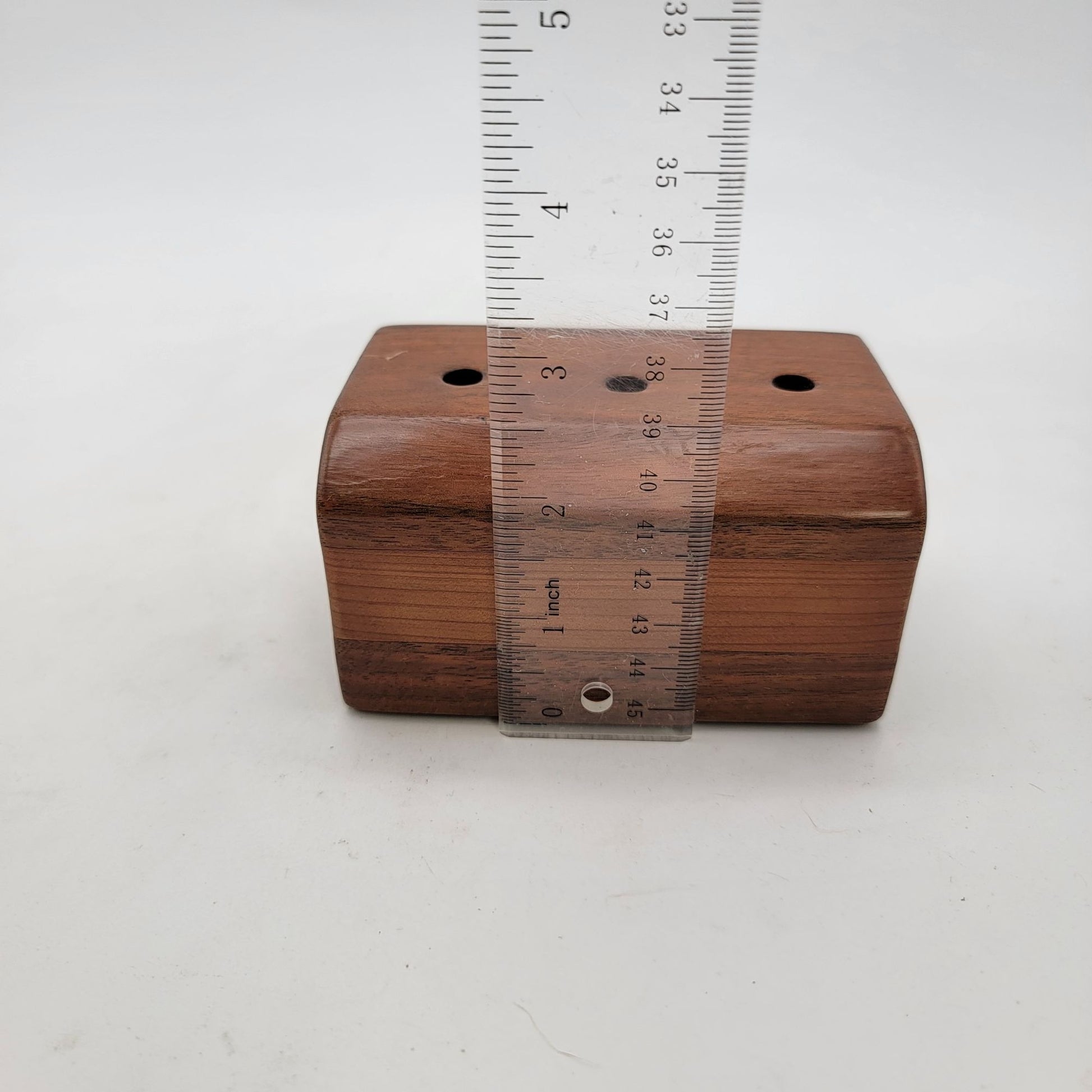 This vintage wooden pencil holder exudes a rustic charm, showcasing the timeless appeal of handcrafted artistry. Skillfully crafted with three holes for convenient storage, it offers both utility and aesthetic value. Its rich wood grain and smooth finish reflect the dedication and skill of its maker, making it a distinctive addition to any workspace.