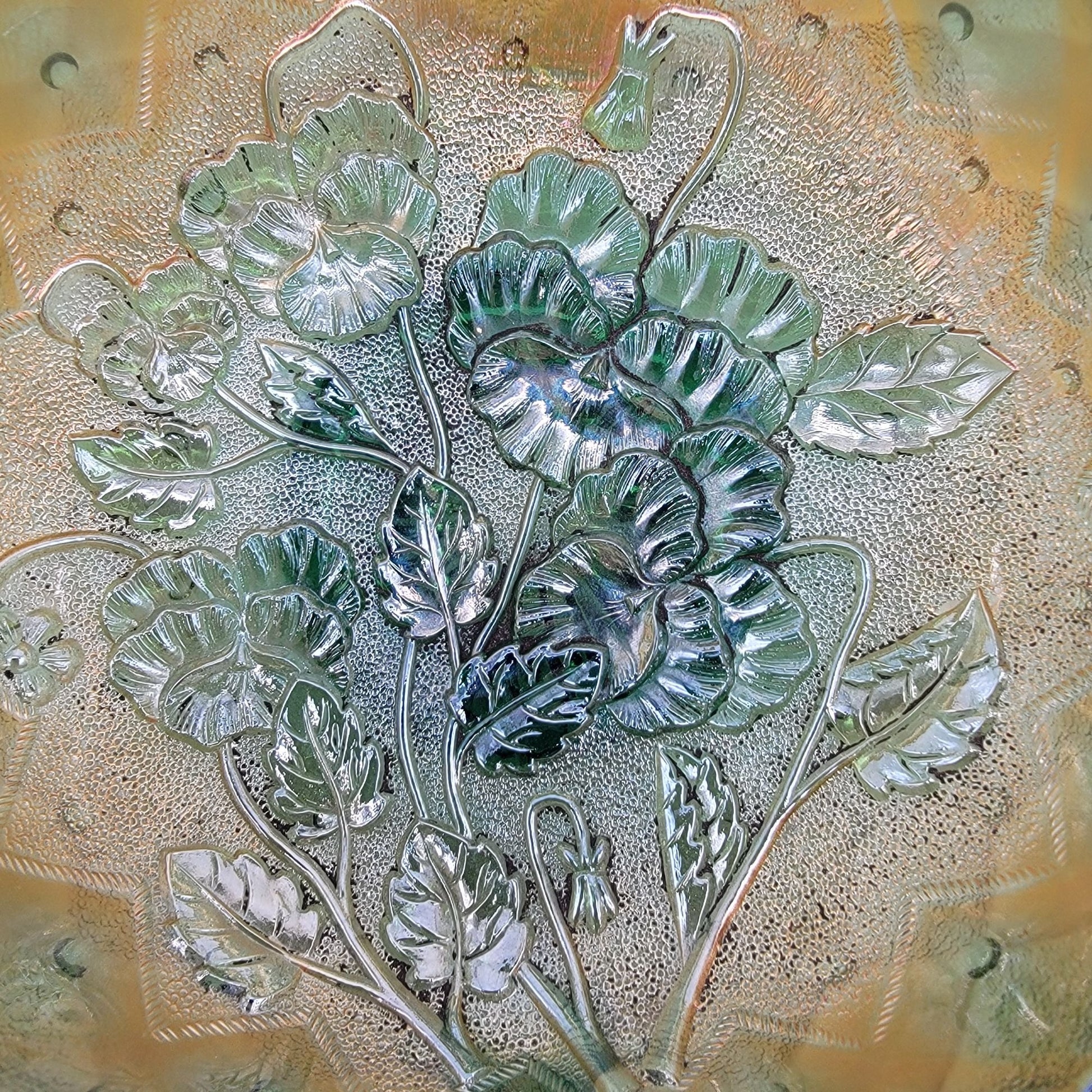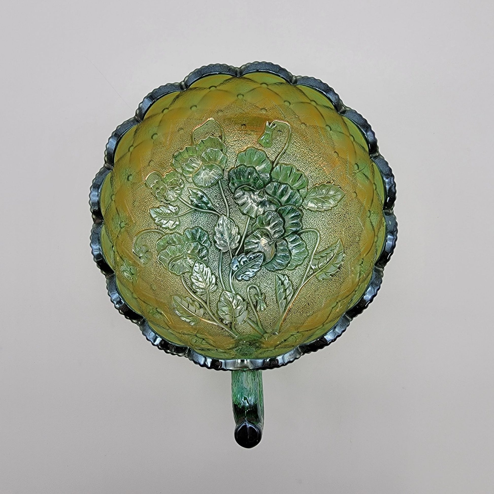 Vintage Imperial Carnival Glass Pansy Nappy Bowl Helios Green