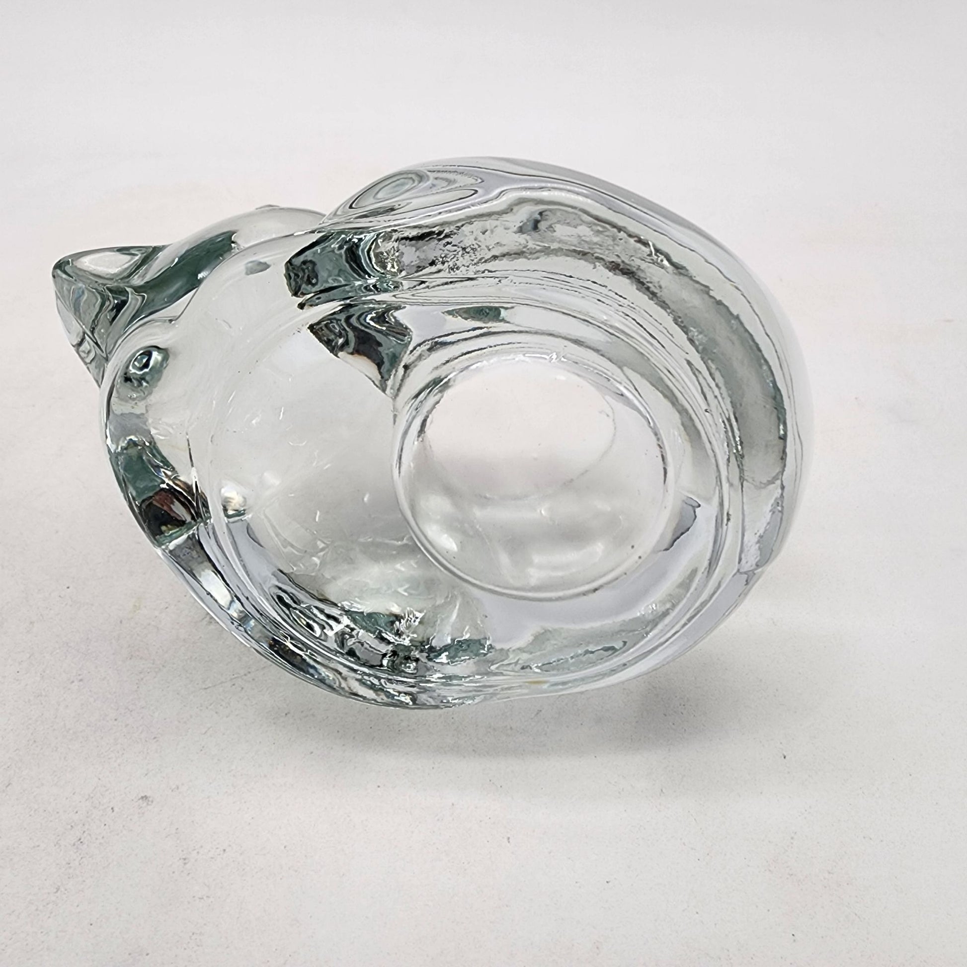 Vintage Indiana Clear Glass Sleeping Cat Votive Holder
